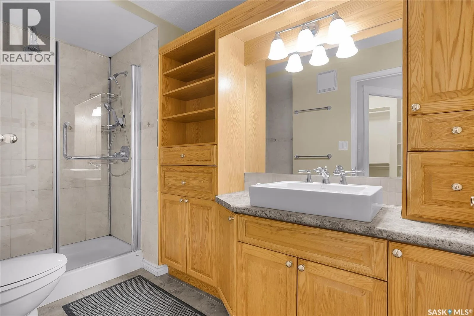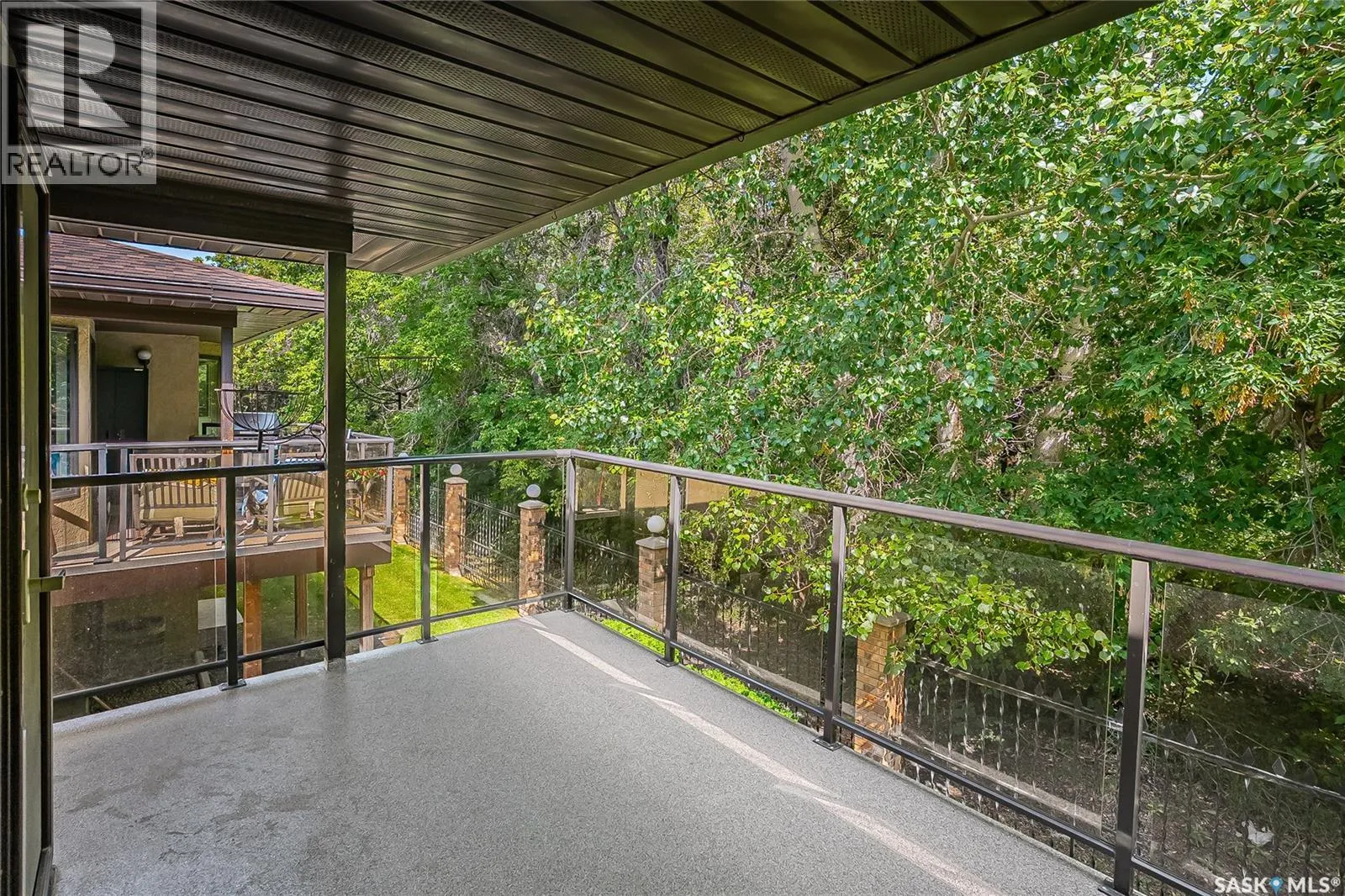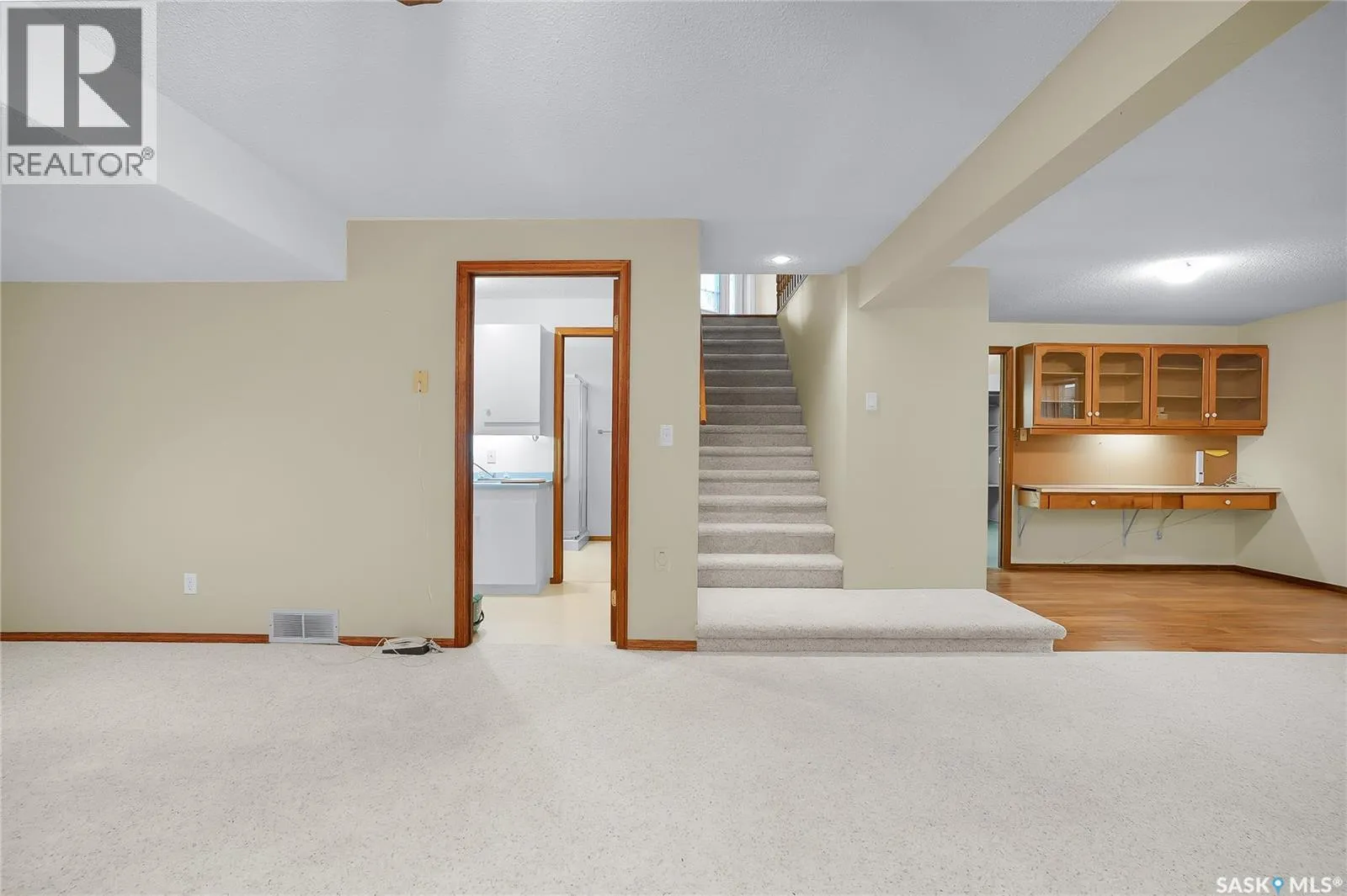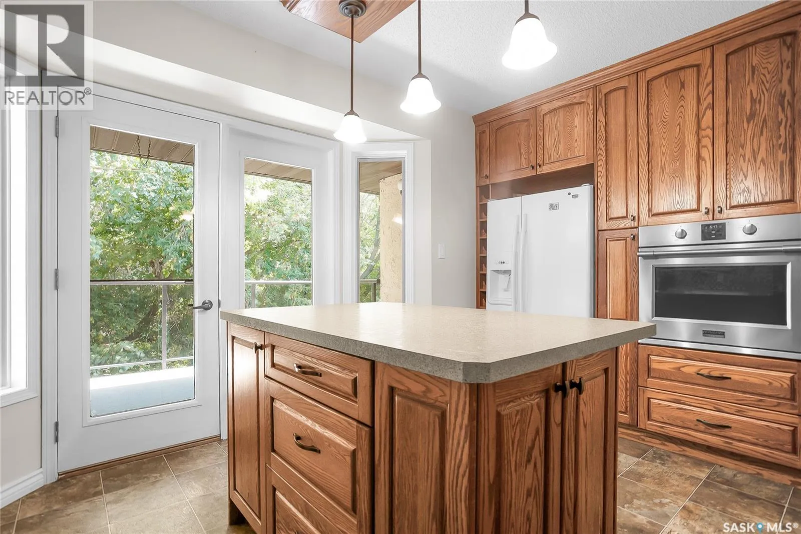 Woah! Stop the car! A walk out bungalow condo with a 2 car garage in a gated community? YES! This is a 1,488 sq. ft. stunner offering the kind of quiet, secure lifestyle that people wait years to find. Once inside the gates youâll discover a welcoming environment that feels more like a private retreat than just a development. A true highlight of this property is the full-sized 20x20 double garage, a rare and highly valued feature in condo living. Inside, the main floor is designed for ease and comfort, complete with main floor laundry, an updated, meticulously cared for oak kitchen, and thoughtful upgrades including a newer wall oven, exterior venting range hood, central vac, and water softener. The oversized deck off the kitchen has been recently resurfaced, offering an exceptional outdoor space with natural gas hookups for a BBQ or fire table which is perfect for entertaining or simply enjoying the serenity of your surroundings in bliss filled privacy. The spacious walkout basement opens directly to a lush green backdrop of mature trees and Meadowlark Park, creating a natural extension of your living space. A gas fireplace warms the basement family room on cooler evenings when company is over. The large lower-level workshop offers versatility of use for tinkering on projects or storage, plus the flexibility to take some of that space to easily divide it into an additional large bedroom with a quick wall. Living here means more than just a beautiful home, itâs about the lifestyle. A peaceful community where neighbours value privacy, security and a sense of belonging, all while enjoying convenient access to Circle Drive, shopping, dining, and essential services nearby. This is where comfort, convenience, and exclusivity decide to call home and it's ready for you. (id:27476)