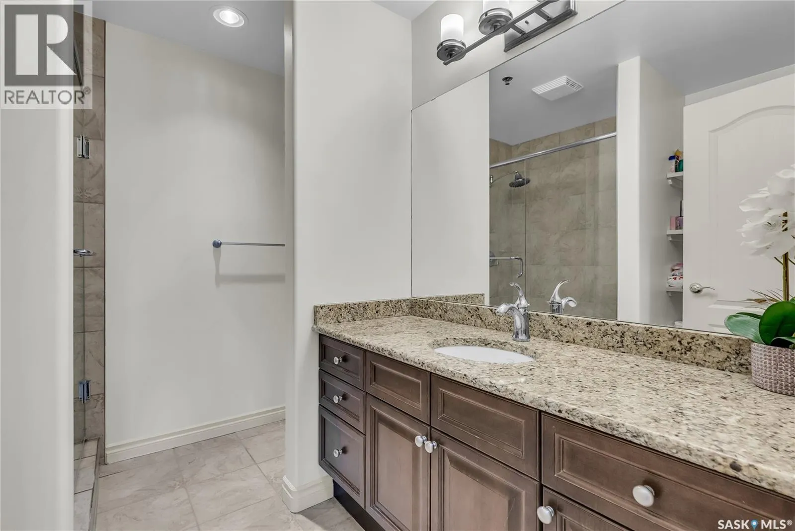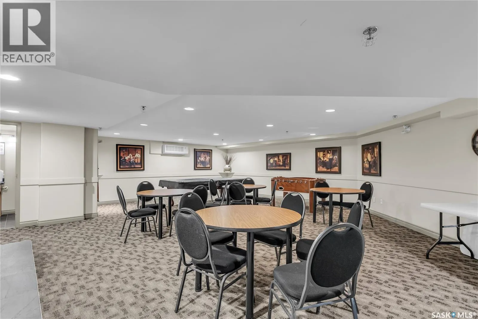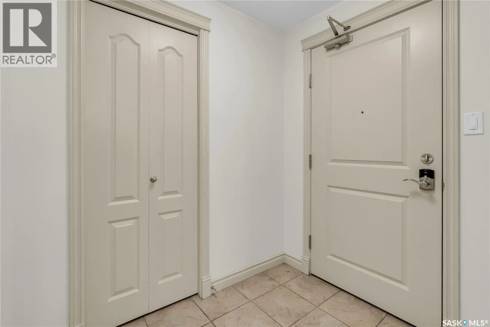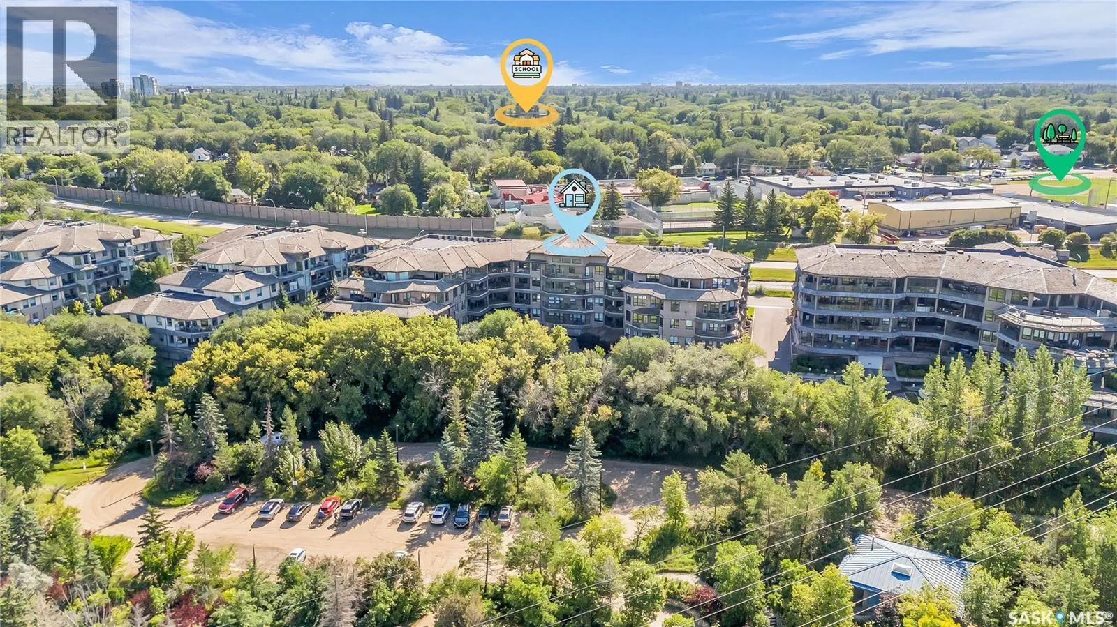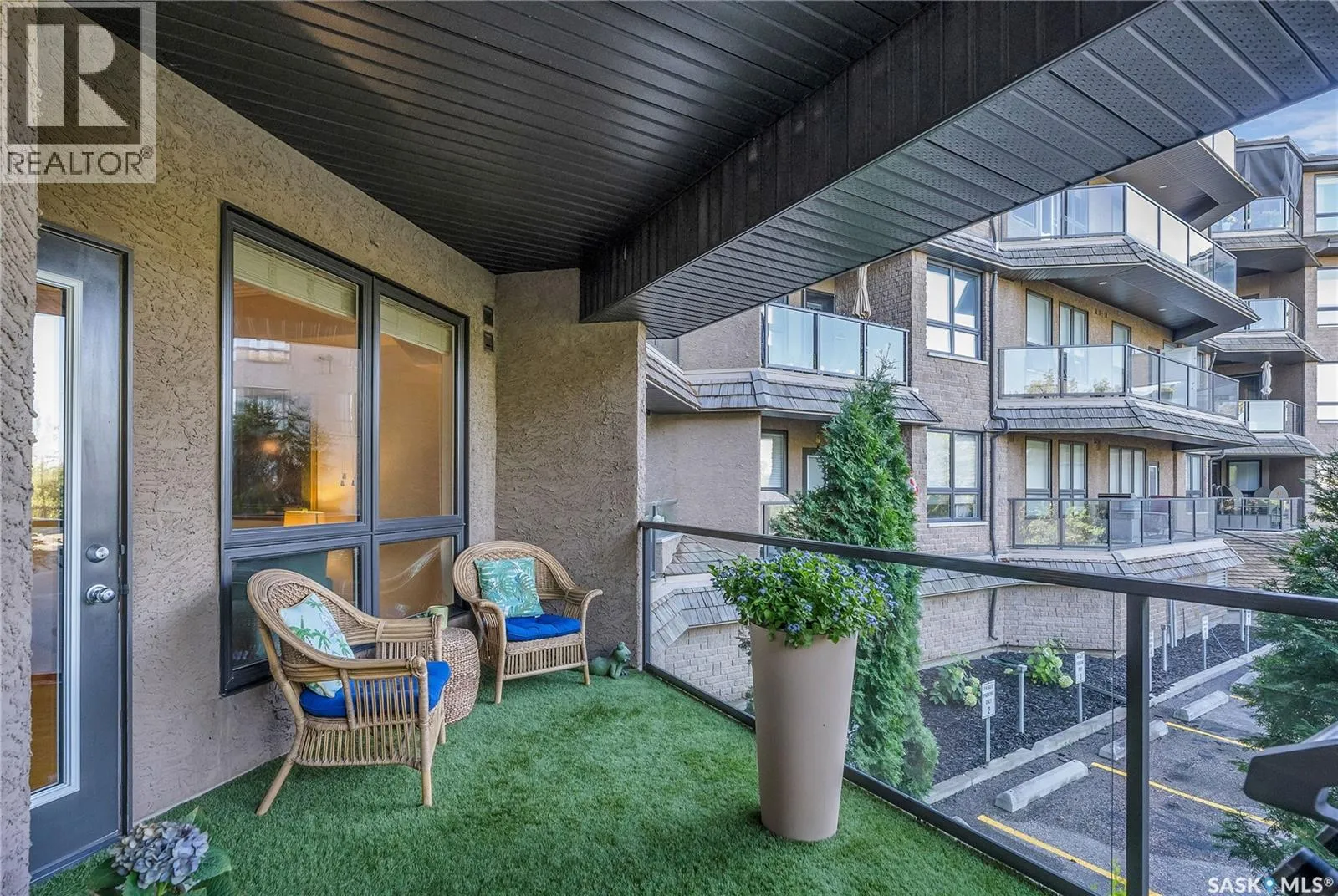 Experience the perfect blend of luxury, comfort, and convenience in this beautifully appointed condo at Waters Edge I, nestled along Saskatchewan Crescent West. Perfectly situated along the river, this home welcomes you with an open-concept design featuring a spacious kitchen with island, a dining area that flows seamlessly into the living room, and access to a southwest-facing balcony. Hardwood floors extend through the kitchen, dining, and living area, creating warmth and elegance throughout. The thoughtfully designed layout includes two bedrooms, a four-piece main bathroom, and a private three-piece ensuite off the primary bedroom with 2 large closets. Just off the kitchen, youâll find in-suite laundry with plenty of extra storage. There is an underground parking space with a storage unit directly in front of the stall. Residents enjoy the convenience of underground parking, elevator access, and a host of impressive building amenities including an exercise room, meeting room with kitchenette, pool table, foosball and guest suite. Steps from the Meewasin Valley Trail and within walking distance to Gabriel Dumont and Fred Mitchell Parks, this location offers the best of both worldsâeasy access to nature and the downtown core. Please note, pets are not permitted. (id:27476)