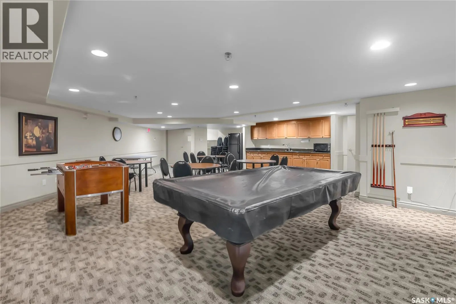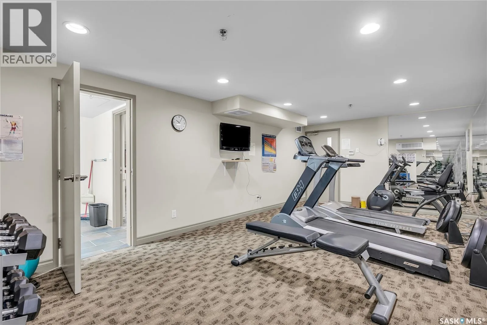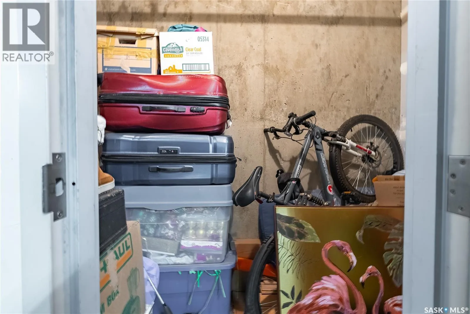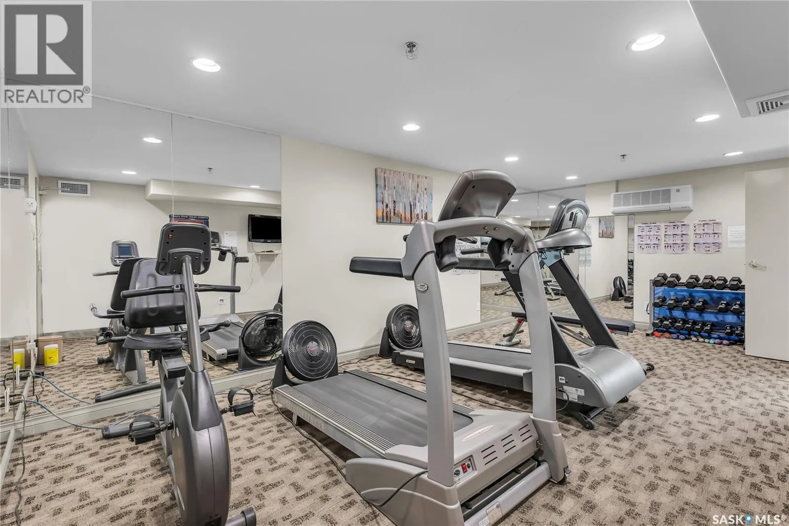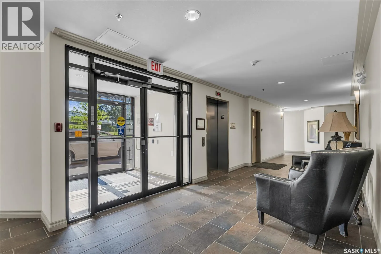 Experience the perfect blend of luxury, comfort, and convenience in this beautifully appointed condo at Waters Edge I, nestled along Saskatchewan Crescent West. Perfectly situated along the river, this home welcomes you with an open-concept design featuring a spacious kitchen with island, a dining area that flows seamlessly into the living room, and access to a southwest-facing balcony. Hardwood floors extend through the kitchen, dining, and living area, creating warmth and elegance throughout. The thoughtfully designed layout includes two bedrooms, a four-piece main bathroom, and a private three-piece ensuite off the primary bedroom with 2 large closets. Just off the kitchen, youâll find in-suite laundry with plenty of extra storage. There is an underground parking space with a storage unit directly in front of the stall. Residents enjoy the convenience of underground parking, elevator access, and a host of impressive building amenities including an exercise room, meeting room with kitchenette, pool table, foosball and guest suite. Steps from the Meewasin Valley Trail and within walking distance to Gabriel Dumont and Fred Mitchell Parks, this location offers the best of both worldsâeasy access to nature and the downtown core. Please note, pets are not permitted. (id:27476)