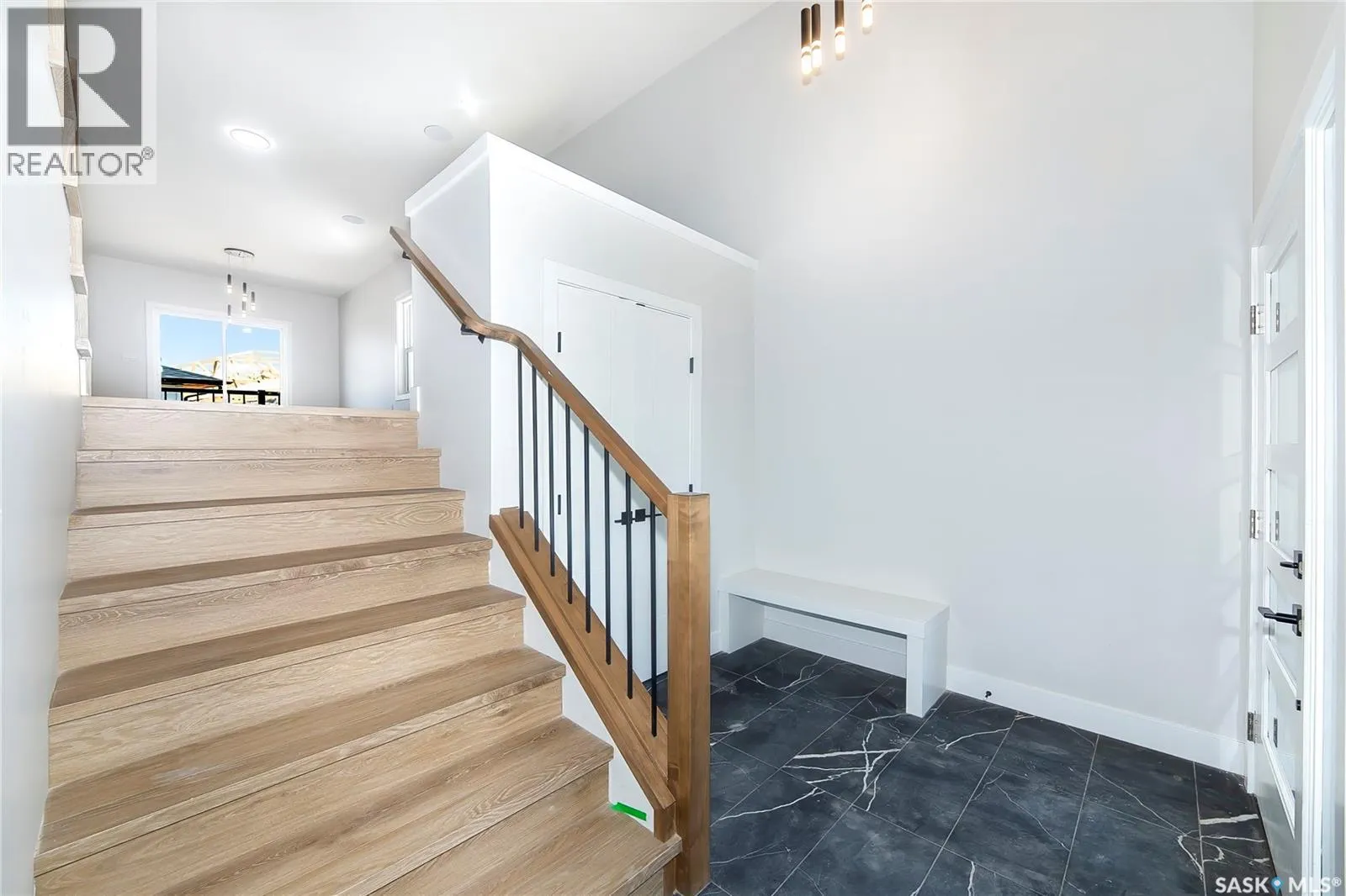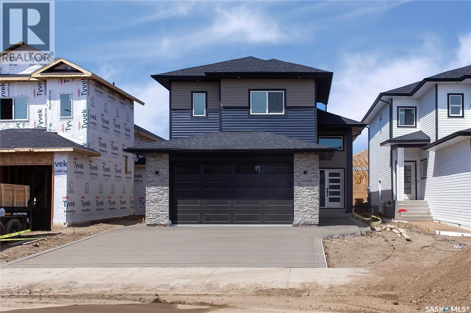 Elevate your lifestyle in this stunning 1,470 sq. ft. modified bi-level that perfectly blends modern style, functional design, and income potential. Featuring 4 bedrooms, 3 baths, and the unique addition of a 2-bedroom legal basement suite, this home offers both comfort and financial flexibility. The bright, open living spaces are thoughtfully designed, with a spacious kitchen showcasing sleek finishes and stainless steel appliances. A cozy fireplace anchors the living area, creating a warm and inviting atmosphere for family and friends. The main level includes a primary bedroom with its own ensuite, providing a private retreat, along with two additional bedrooms and a full bath to accommodate the whole family. The basement features a living/family room with a wet bar and a 4-piece bath, reserved for the primary ownerâs exclusive useâideal for entertaining or extra living space. What truly sets this property apart is the fully developed legal basement suite, offering two bedrooms, a well-equipped kitchen, and a separate entranceâperfect for guests, extended family, or generating rental income. A double-attached garage provides protection and convenience through Saskatchewanâs harsh winters. Combining modern finishes, versatile design, and a legal suite, this home is an exceptional opportunity for both homeowners and investors. Measurements are taken from blueprints; buyers and their agents to verify. GST and PST are included in the purchase price, with rebates going back to the builder. Photos 4 to 11 are from earlier build and sold house. Its only for reference to finishings. (id:27476)