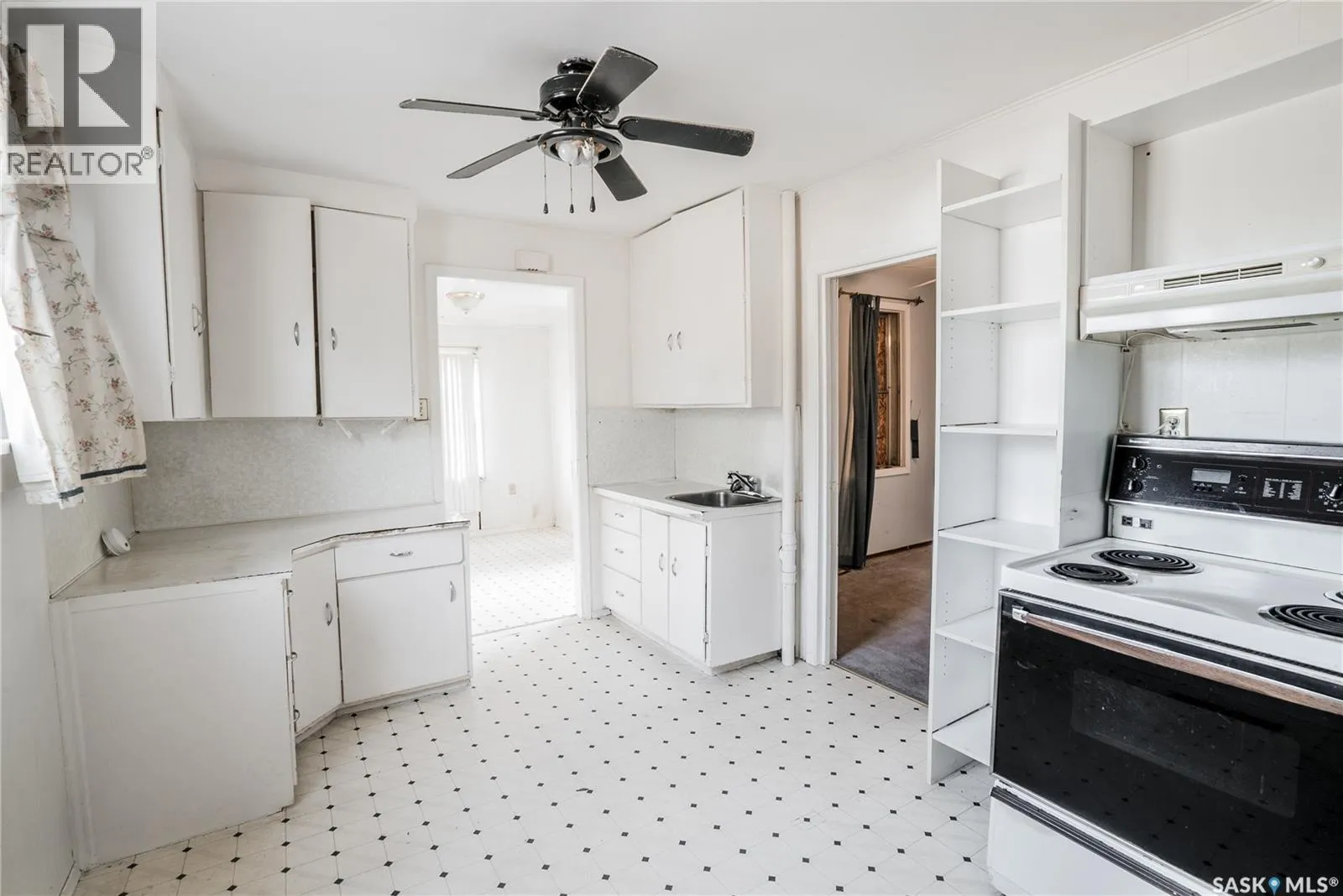 Don't miss out on this great starter home located in the King George neighborhood! This charming, 658 sq ft bungalow sits on a desirable corner lot measuring 35 x 120 feet. The main floor is bright and functional, featuring a good living space, a convenient kitchen, two comfortable bedrooms, and one full bath. The basement is currently open for development, offering a blank canvas to design and finish to your exact needs. Outdoors, you will love the private and fully fenced mature yard. Car enthusiasts and hobbyists will appreciate the large 24 x 24 garage. This is an incredible opportunity to get into a home, act fast and get in today! (id:27476)