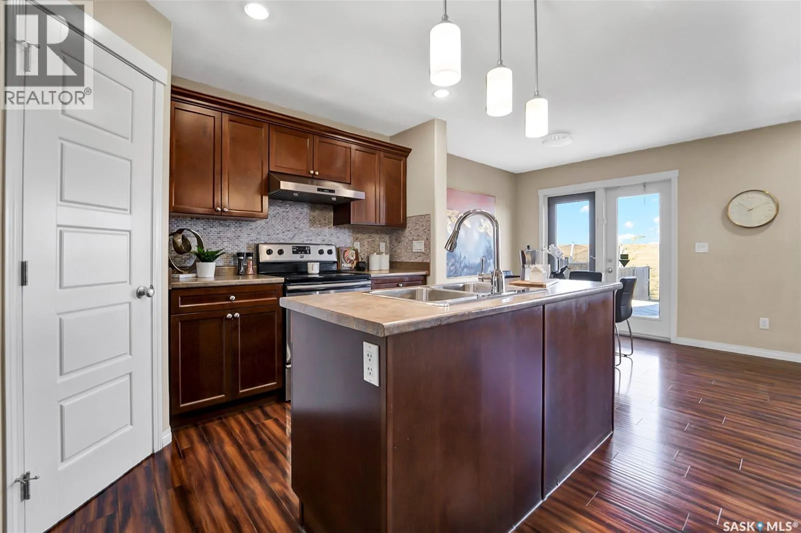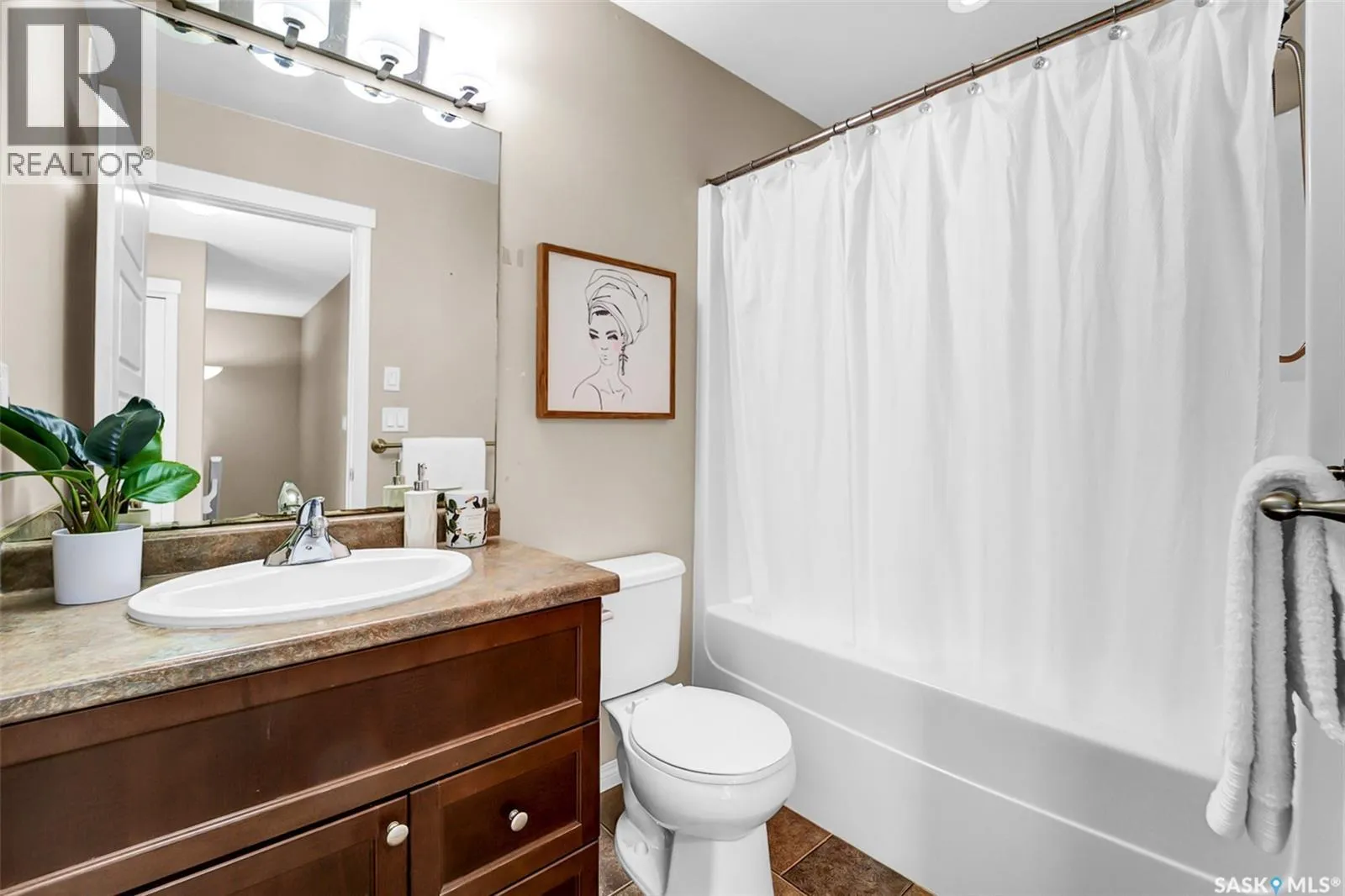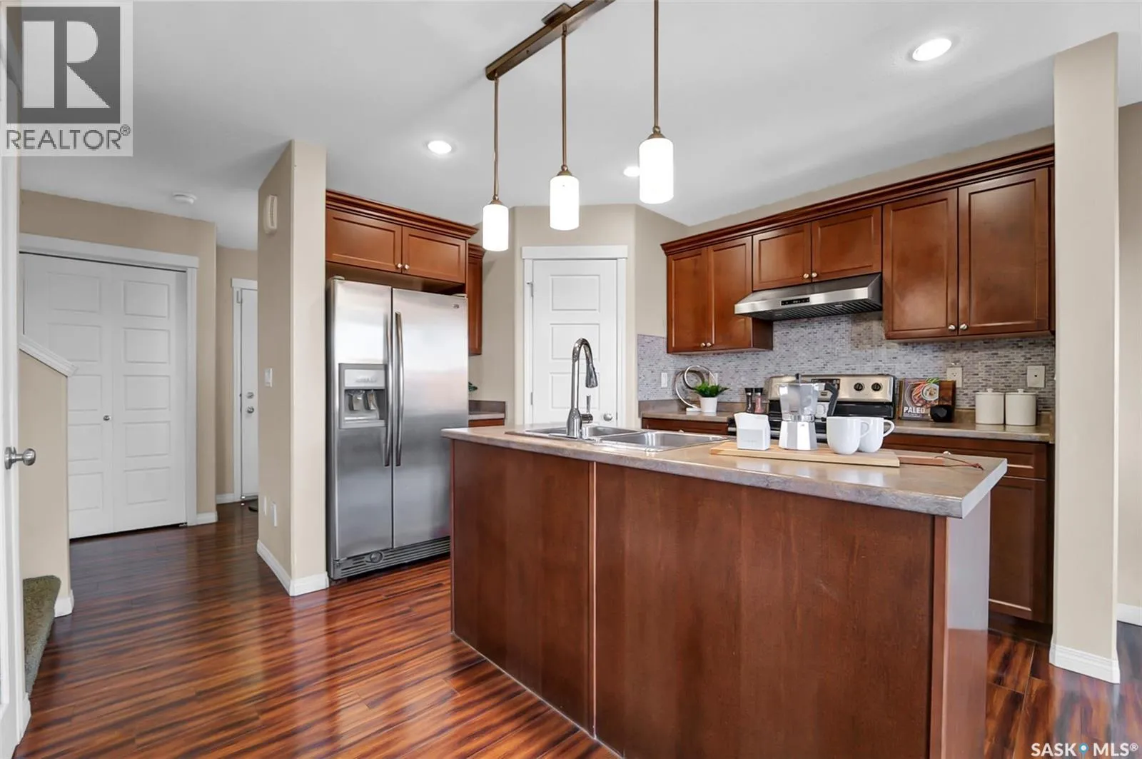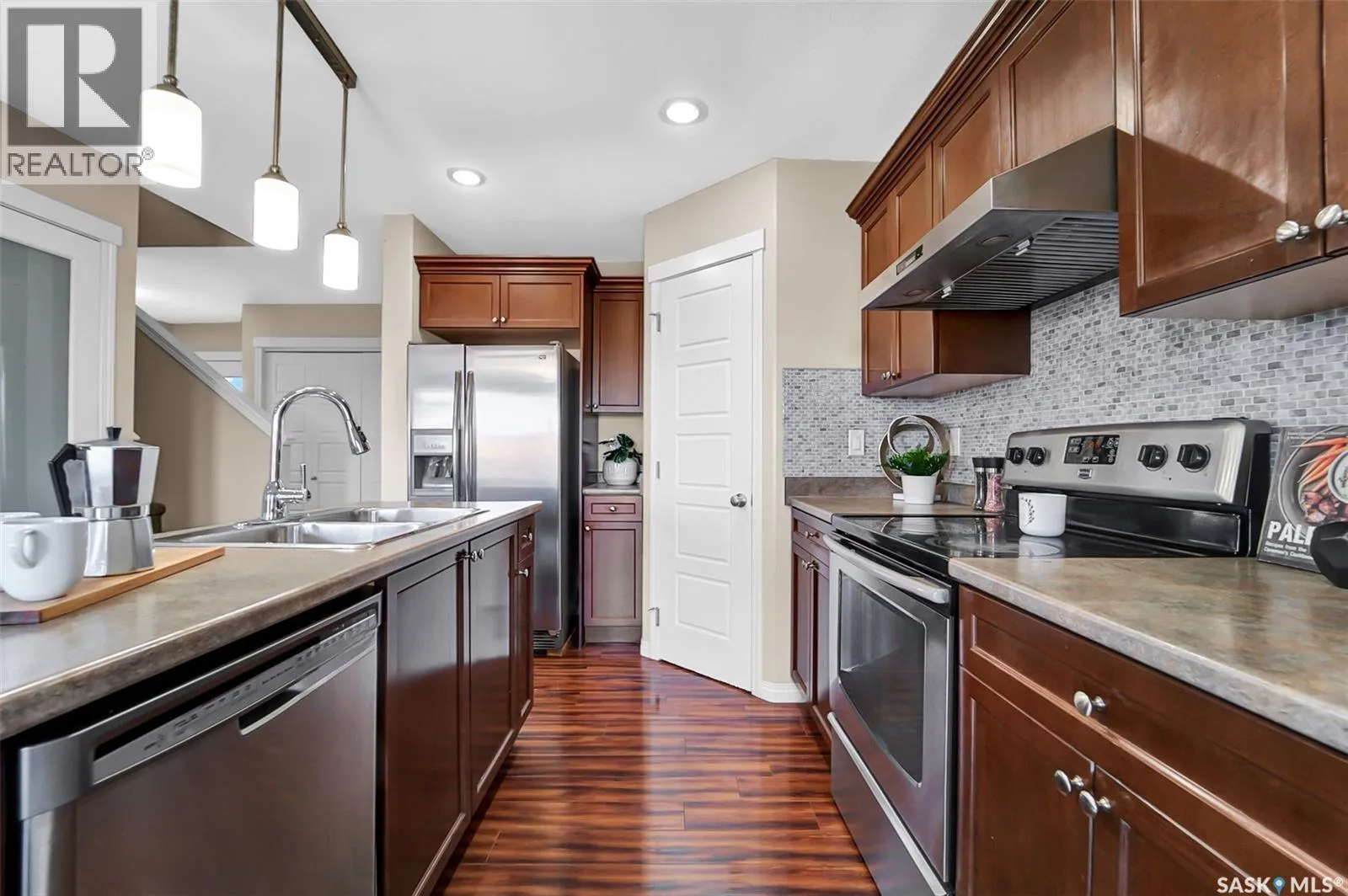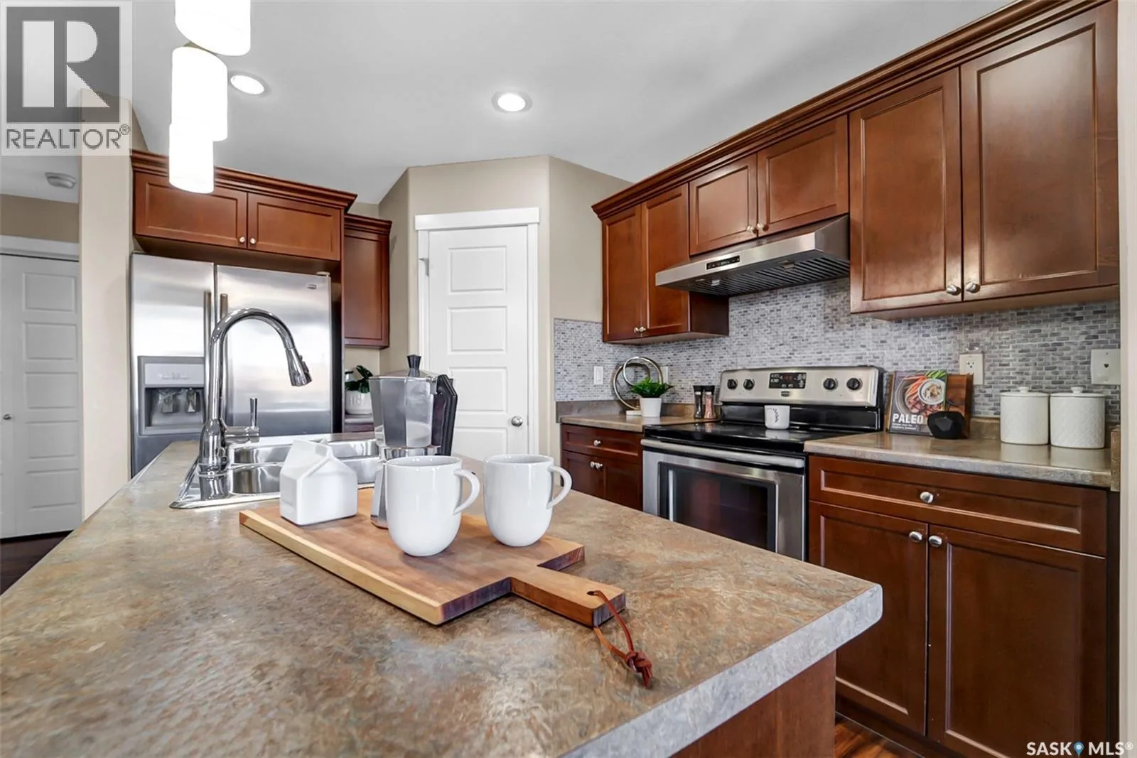 Welcome to 203 Henick Crescent This well-planned two-storey home with a double attached garage combines style, comfort, and functionality. Ideally located in Hampton Village, it offers easy access in and out of the neighborhood and is just minutes from shopping, dining, and everyday amenities. Step inside to a spacious foyer that opens into a bright, open-concept main floor â perfect for entertaining or relaxing with family. Laminate flooring flows throughout, complementing the modern kitchen with ample cabinetry, modern backsplash, stainless steel appliances, and a pantry. The dining area features patio doors that lead to a large deck overlooking the fully fenced backyard â ideal for summer gatherings. Upstairs, the primary bedroom offers a peaceful retreat complete with a 4-piece en suite and walk-in closet. Two additional spacious bedrooms, a 4-piece family bathroom, and a convenient second-floor laundry area complete the upper level. The fully developed basement adds even more living space with a cozy family room, an additional bedroom, and a 4-piece bathroom. Additional highlights include central air conditioning, HEATED Garage and everything you need to simply move in and enjoy! (id:27476)