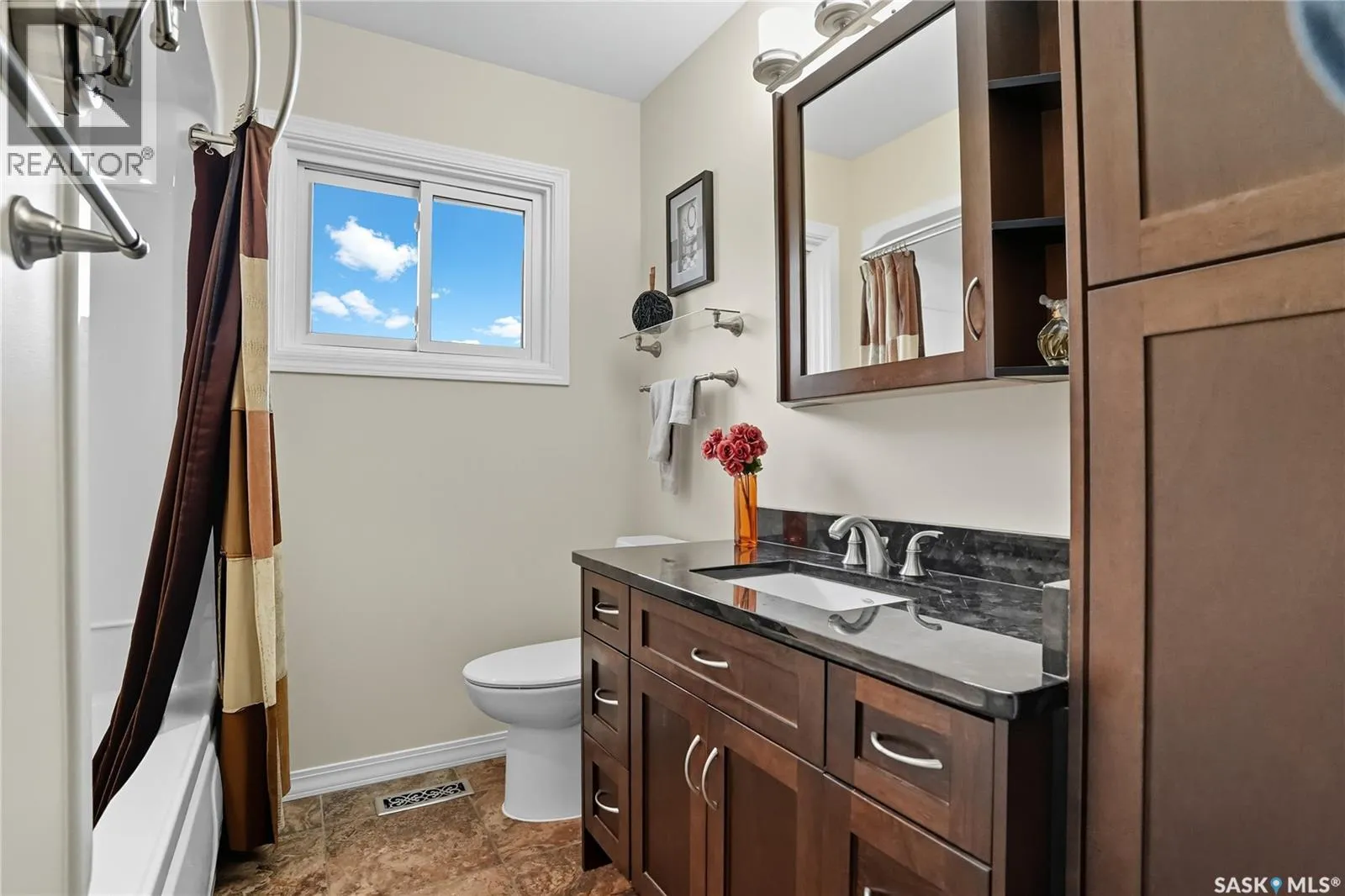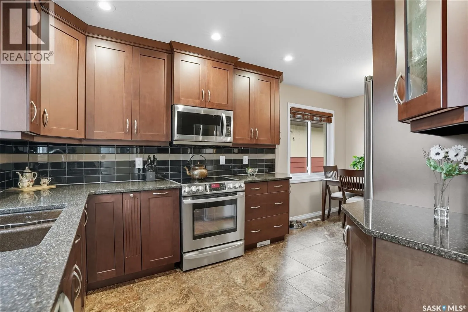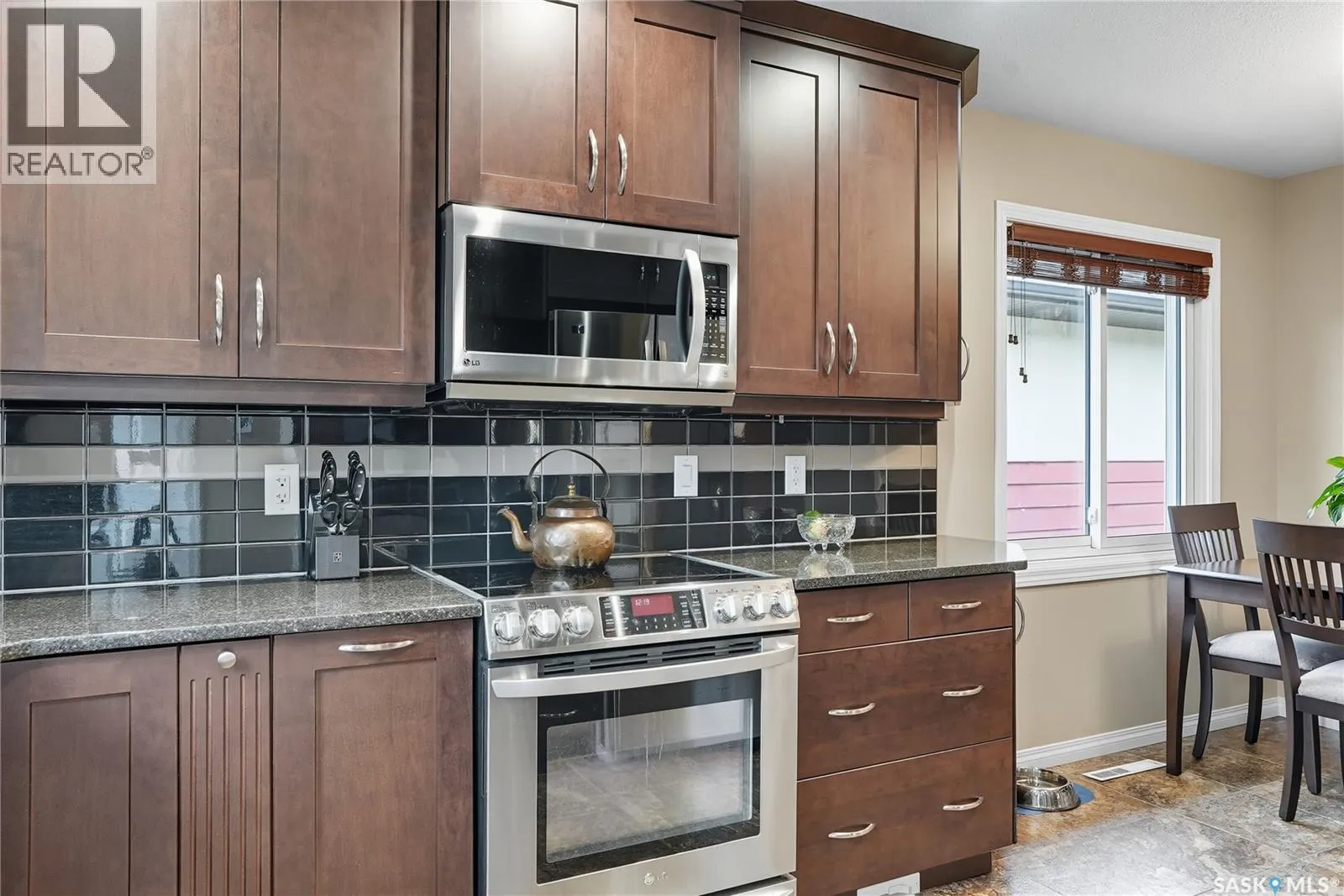 Welcome to this beautifully maintained bungalow in the heart of Hudson Bay Park, offering a perfect blend of modern updates and classic charm. The showstopper of this home is the stunning kitchen, fully renovated in 2011 with rich maple cabinetry, granite countertops, a stylish tiled backsplash, high-end stainless steel appliances, and a convenient central vac kick plate for effortless clean-up. The main floor features a spacious and bright living room with hardwood floors, an updated four-piece bathroom, and three comfortable bedrooms. Downstairs, the fully developed basement offers even more living space with a generous family room and rec area, two additional bedrooms, a second four-piece bathroom, a dedicated workspace, and a laundry room. This home has seen numerous thoughtful upgrades including newer windows, custom blinds, trim and doors (2011), air conditioner (2011), furnace (2015), tankless water heater (2013), and shingles & eaves (2016). Outside, youâll find a single detached garage and two additional off-street parking spaces. This is a fantastic opportunity to own a move-in-ready home in a desirable neighborhood with all the major updates already done! (id:27476)