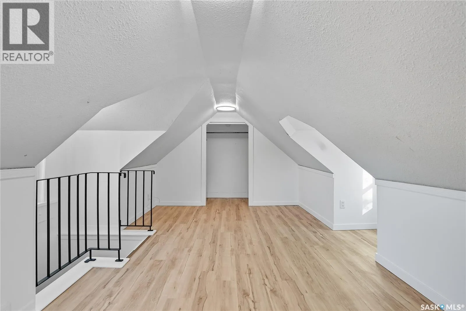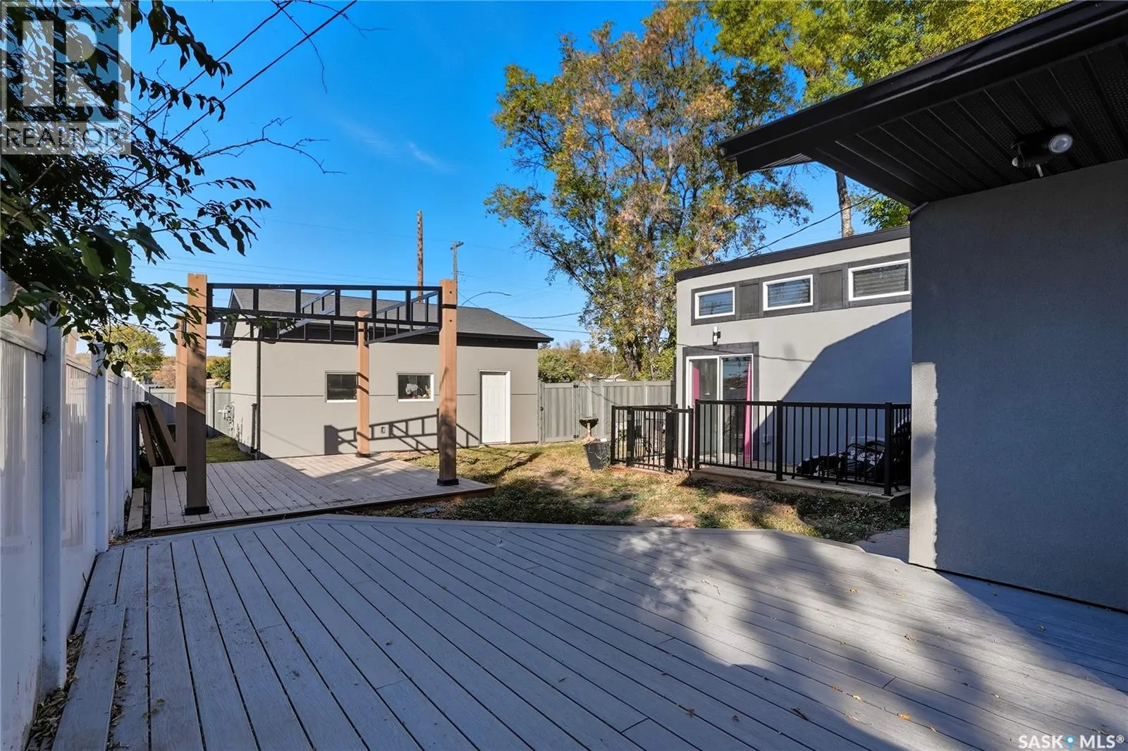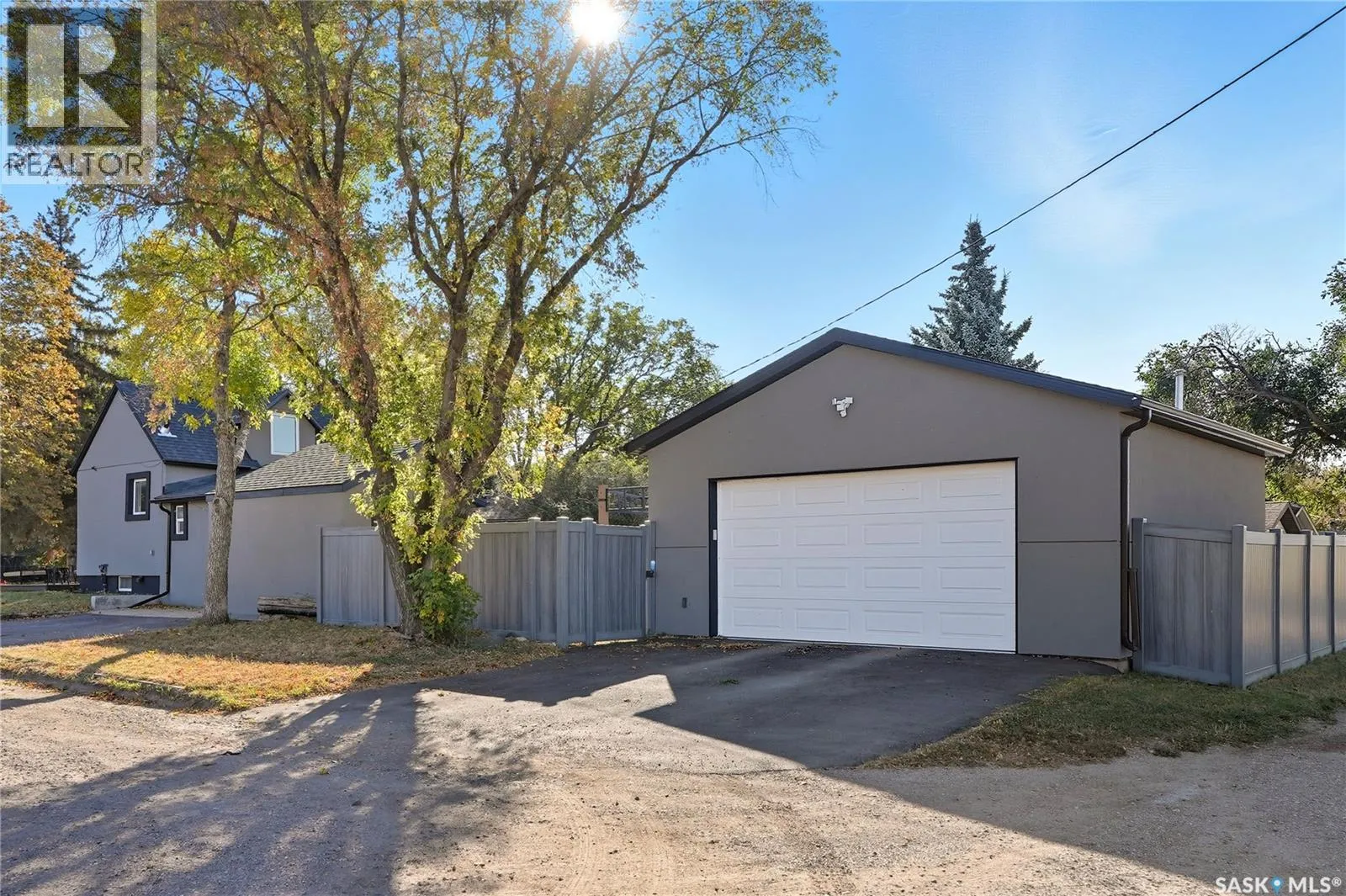 Welcome to 1041 Ave L N in Hudson Bay Park! This well-cared-for home offers just over 800 sq. ft. of living space on a corner lot that backs onto a park and dog park, with barely any neighbours. Inside, youâll find a cozy layout with a loft-style bedroom upstairs and a beautifully updated main level. The property also features a she shed currently used as a salon with a small deck and heat! Enjoy the heated double heated car garage and an impressive list of updates that make it truly move-in ready. Recent improvements include: 2â foam acrylic stucco (2018), new air conditioner (2019), new roof shingles (2021), a brand new garage (2022), a full kitchen renovation with Superior Cabinets (2022), all new electrical, insulation, drywall, plumbing and flooring on the kitchen level (2022), a new bathroom with Superior Cabinets (2022), vinyl fencing (2022), a new driveway (2023), Brandyâs She Shed (2023), and a composite back deck (2024). The home also had all new doors and windows installed in 2017 (except the bay window at the front). Located close to parks, schools, and amenities, this home perfectly combines modern upgrades, character, and an excellent location. (id:27476)