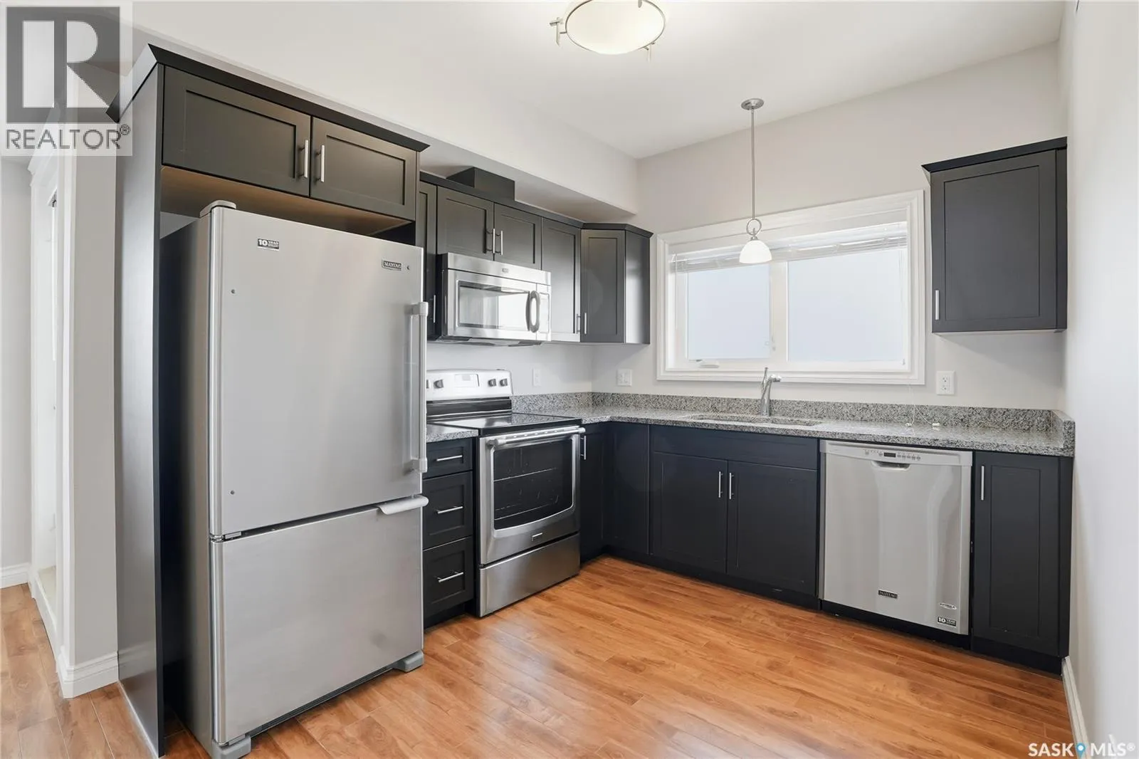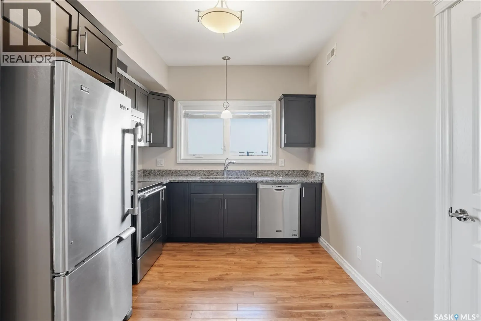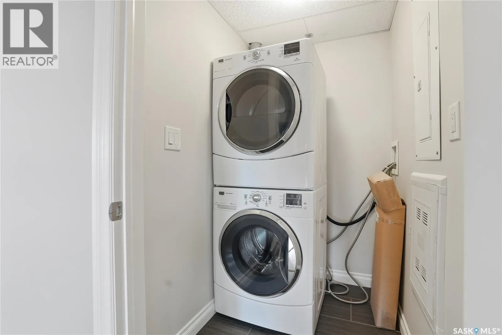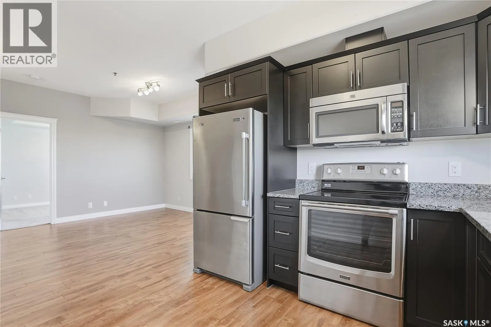 Welcome to this stunning top-floor corner condo in the highly desirable neighbourhood of Willowgrove. Formerly a show suite, this 2-bedroom, 2-bath residence combines refined finishes with an exceptional location. The spacious floor plan showcases granite countertops, stainless steel appliances, and a blend of tile and laminate flooring designed for both elegance and easy care. A large private balcony offers the perfect place to relax, while window coverings throughout, a heated underground parking stall with private storage locker, and an additional surface stall provide comfort and convenience. Ideally situated just steps from schools, grocery stores, cafés, restaurants, banks, and medical offices, this home offers the perfect balance of luxury and lifestyle. With a bus stop right outside, itâs ideal for professionals, small families, or university students seeking upscale living in one of Saskatoonâs most sought-after communities. Schedule your private showing today and experience the best of Willowgrove living. (id:27476)