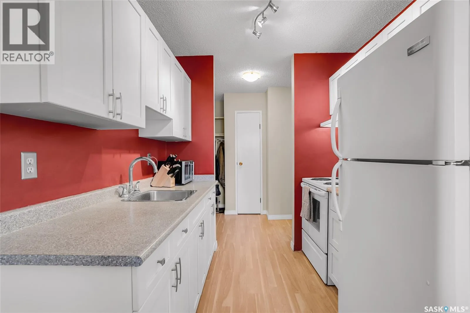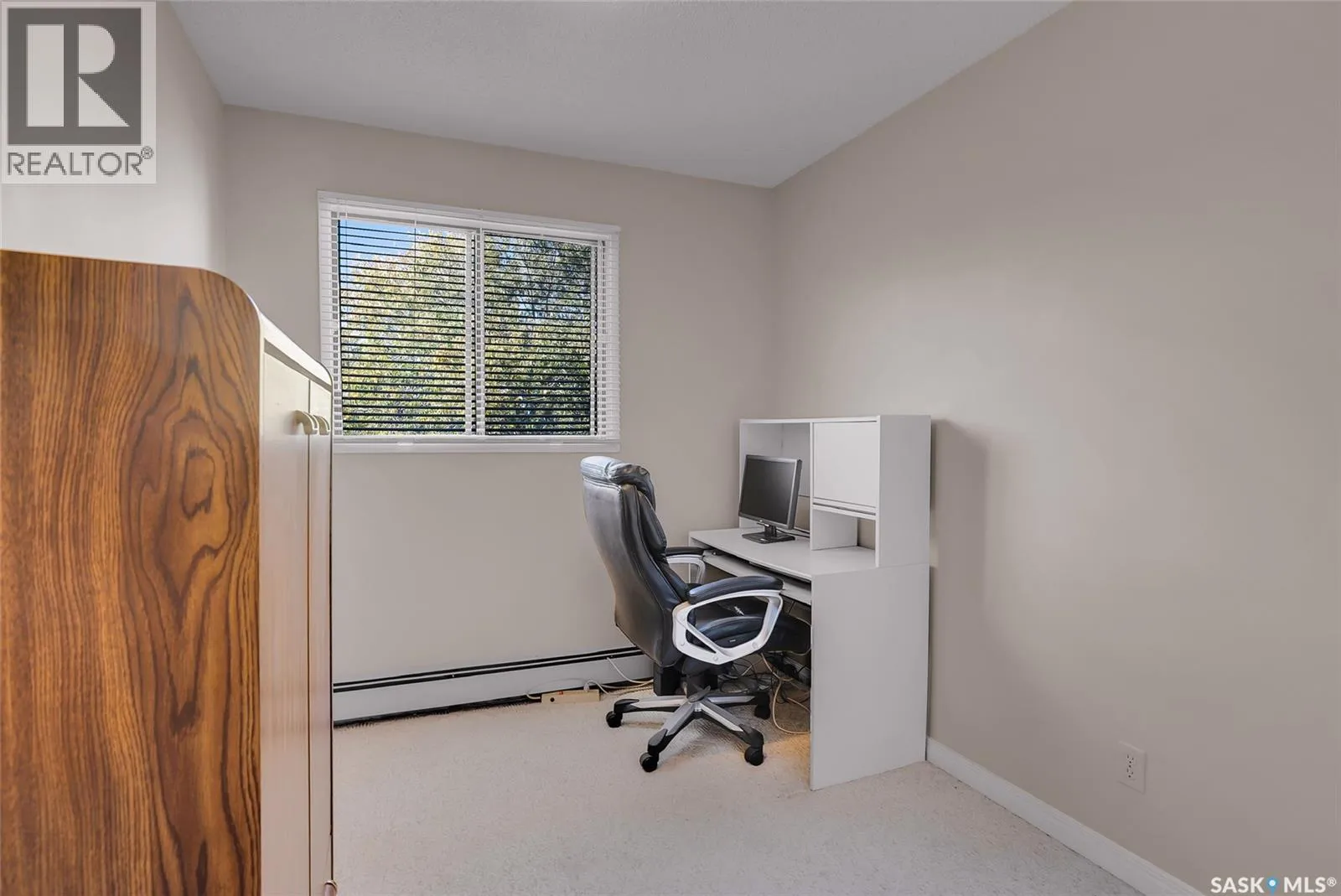 Are you looking for top-floor, corner-unit living, aka no noisy neighbours above you and way better natural light for your houseplants (or your gaming setup)? This bright and well-kept 2-bedroom, 1-bath condo in Tiffany Place offers 760 square feet of easy living with quick possession available, so you can be unpacking before your next rent payment is due. The updated kitchen has refreshed cabinetry and plenty of room for takeout containers and actual cooking. The open living area is filled with sunshine from the west-facing balcony. It's the perfect spot for sunsets, study breaks, or convincing your friends youâre thriving at adulthood. Wall-mounted A/C keeps things cool all summer, and the in-suite storage room handles everything from camping gear to your âsomedayâ treadmill. Youâll have your own electrified parking stall, so no more winter extension-cord acrobatics or endless street-parking searches. The building is quiet, clean, and ideal for anyone who wants low-maintenance living with zero drama. East College Park is one of Saskatoonâs most underrated areas. It's family-friendly, close to the U of S, and just minutes from 8th Streetâs shopping, groceries, and coffee options. Plus, Circle Drive is right nearby for quick access anywhere in the city. If youâve been looking for your first place, your freedom pad, or just an escape from landlord life, this one hits all the right notes. Affordable, comfortable, and completely move-in ready, itâs basically the adulting upgrade youâve been waiting for. Book your private showing and see what all the fuss is about! (id:27476)