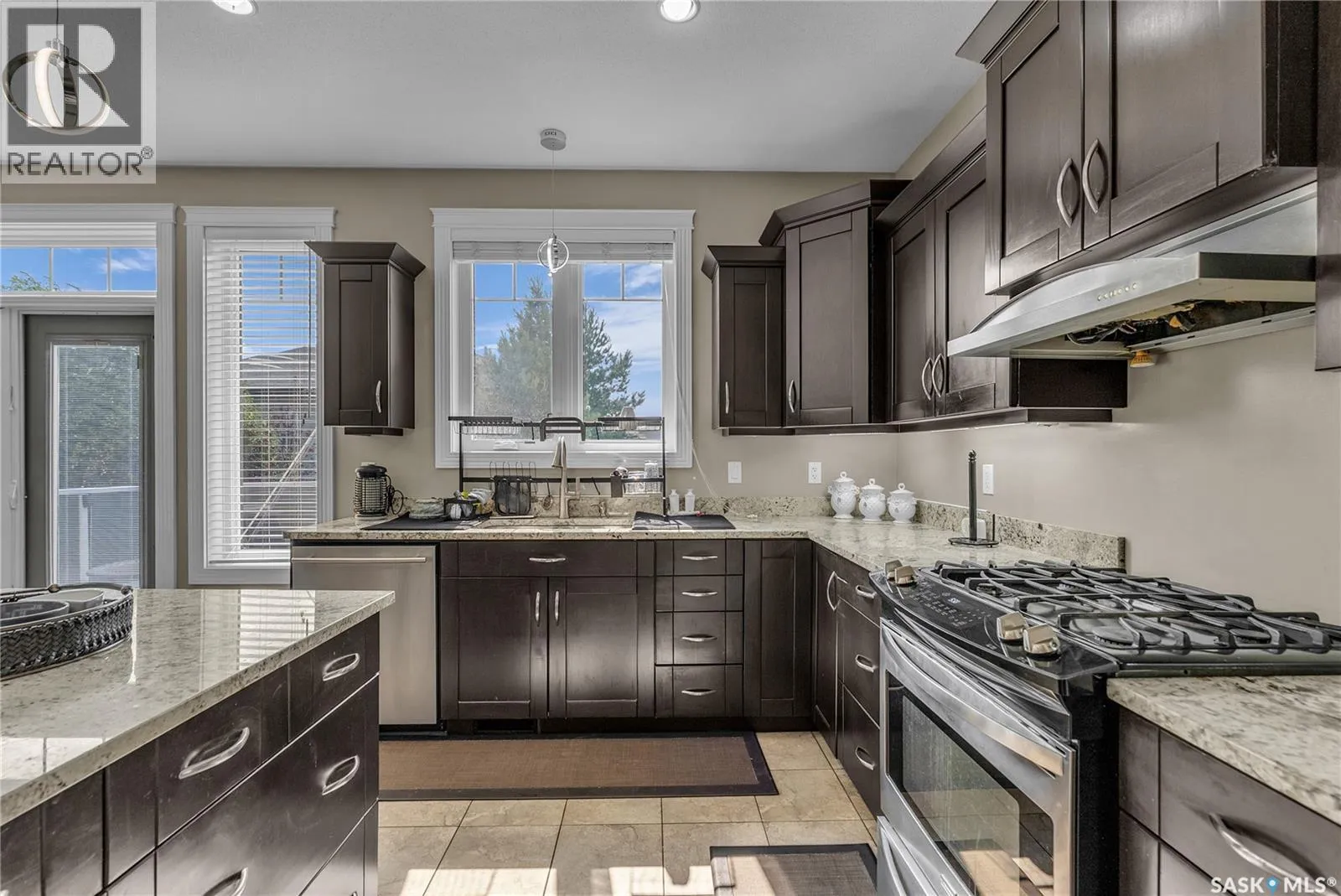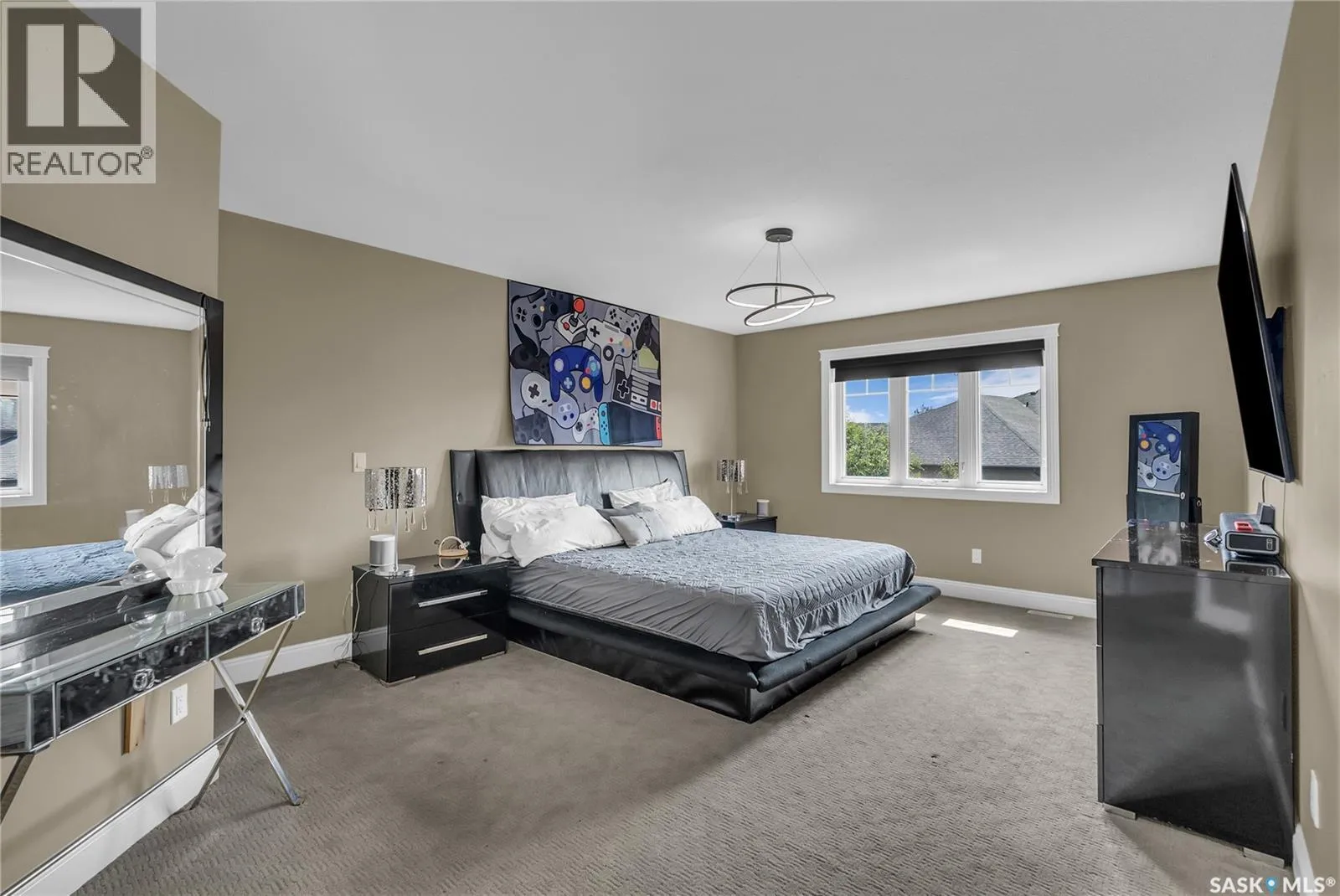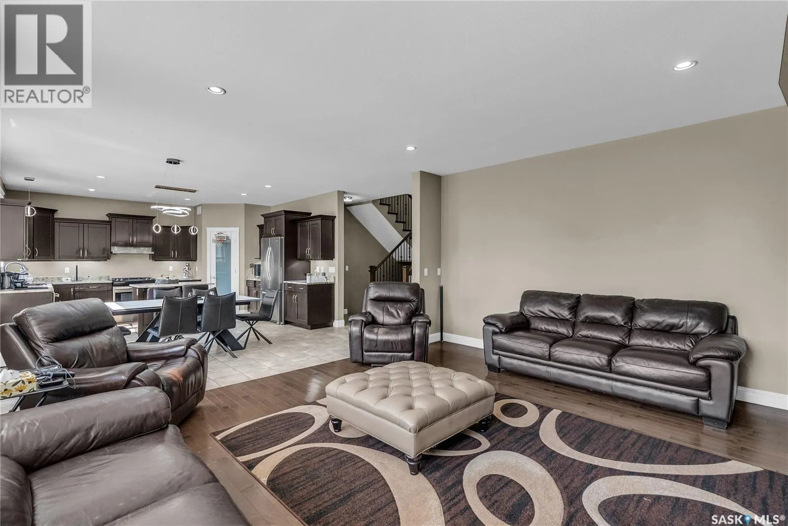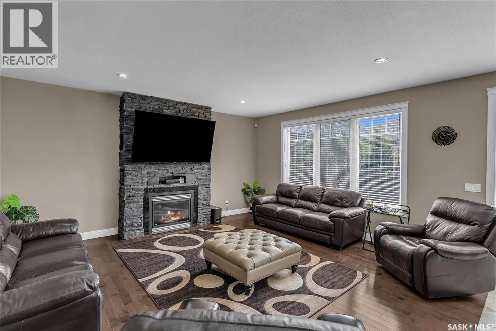 Welcome to this stunning 4-bedroom, 4-bathroom family home located in one of Saskatoonâs most desirable neighbourhoods â Briarwood. Known for its low-density housing, mature greenspace, and tranquil atmosphere, Briarwood offers a perfect balance of privacy and city convenience. This is a rare opportunity to own a walkout basement home in this sought-after community for under $850K.Situated on a quiet crescent with a 4-car driveway, this property combines impressive size with outstanding potential. Inside, youâre greeted by tall ceilings and generous square footage throughout. The expansive kitchen is a chefâs dream, featuring endless cabinets, abundant counter space, and a gas stove. The main floor also features a massive living room , perfect for entertaining or hosting family gatherings. The fully finished walkout basement adds incredible living space, complete with a theatre room, games room, and direct yard access. The large backyard is a blank canvas, ready for your landscaping vision and outdoor entertaining plans. With just a few personal touches like paint, carpet, and landscaping, this home can truly become your dream property in one of Saskatoonâs finest communities. Donât miss out on this exceptional Briarwood opportunity! (id:27476)