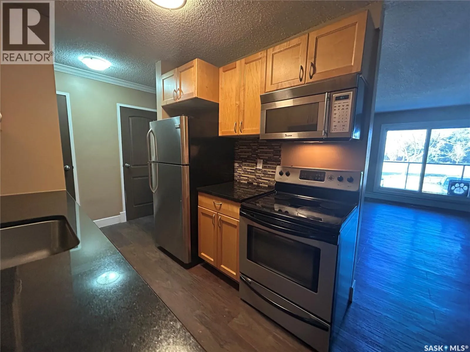 This 2nd floor 2 bedroom unit is available for immediate possession. Open concept living room and dining room with laminate flooring. Maple kitchen with granite countertops. Insuite Washer/Dryer combination. West facing balcony overlooking park. 1 Parking stall. Located in Massey Place close to schools, bus and all amenities. Priced to sell. Call your Realtor today before it is SOLD!!! (id:27476)