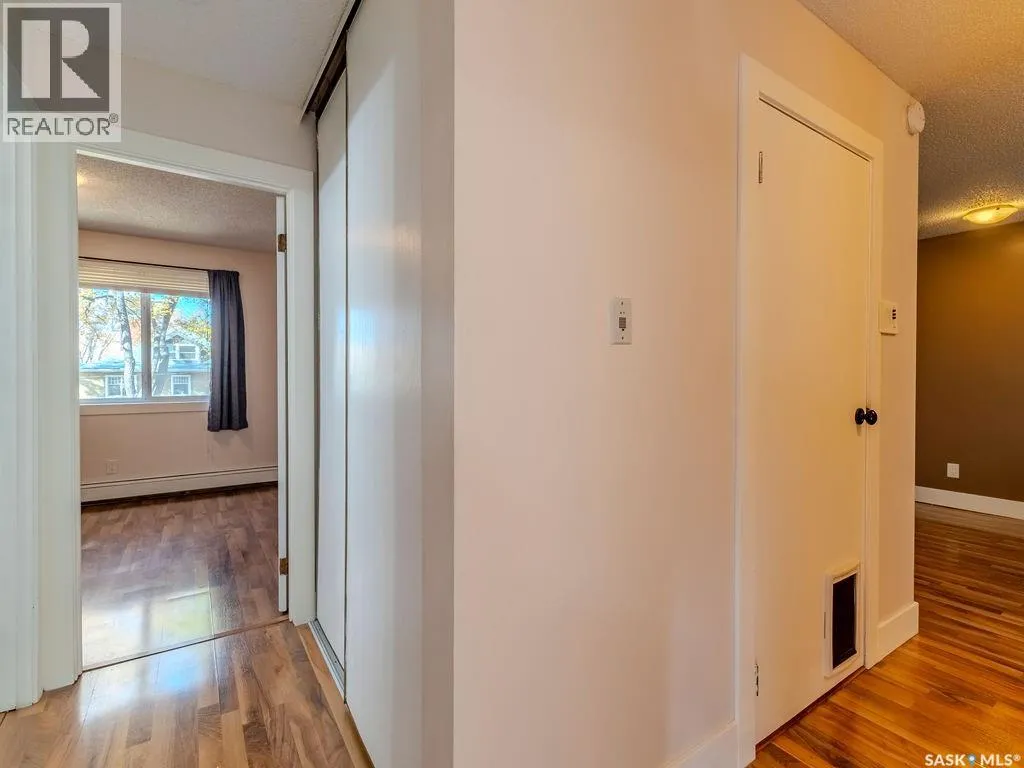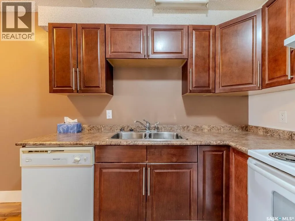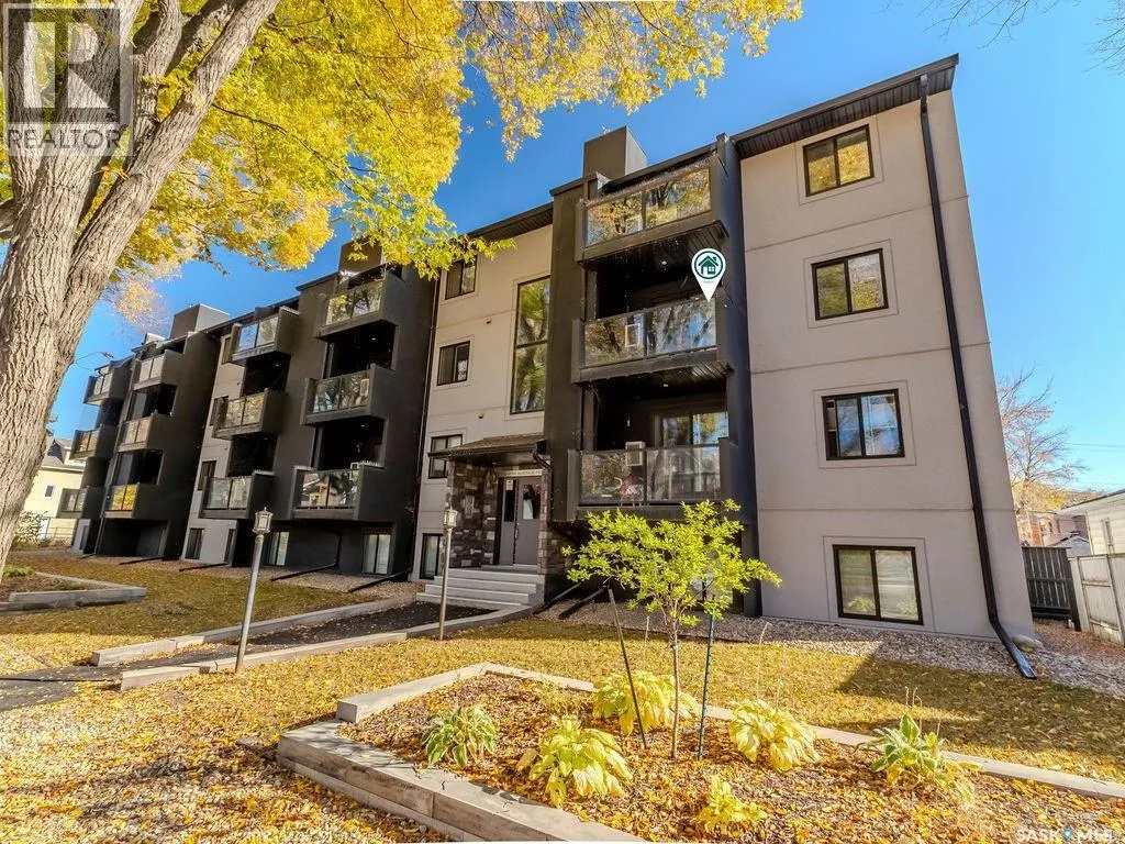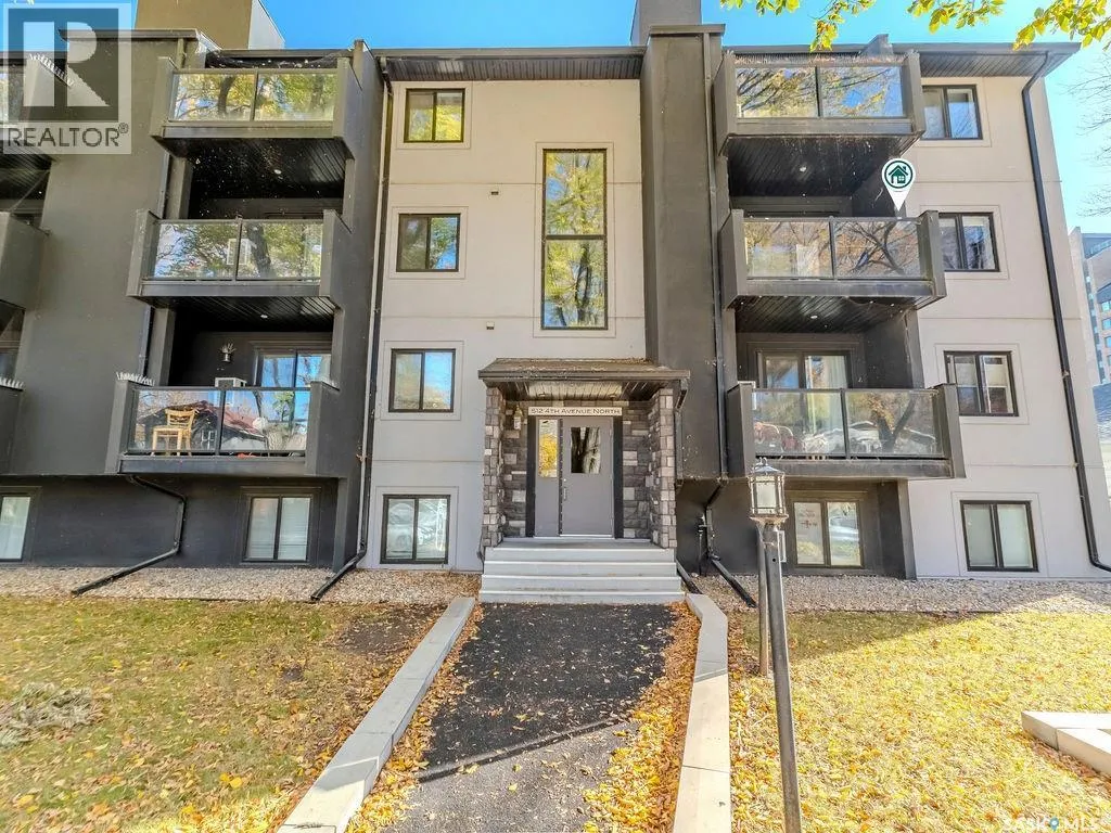 Welcome to 512 4th Avenue North, Unit 301. Tucked into the tree-lined streets of City Park, this corner-unit condo blends warmth, light, and city convenience in one inviting space. Sunlight filters through large windows, filling the open living area and creating a calm, comfortable atmosphere. The kitchen feels effortless, with the right balance of space and function for both quiet mornings and evenings spent cooking with friends. Step onto your private balcony to take in the view and feel the energy of the city without the noise of it. Both bedrooms are bright and peaceful, and the in-suite laundry adds everyday comfort. The building is secure, well cared for, and just steps from the river, downtown, and some of Saskatoonâs best local spots. Perfect for anyone who wants a home that feels personal, easy, and connected to the life of the city. Special Assessment levy will be paid off by seller prior to closing so buyers do not assume any payments! (id:27476)