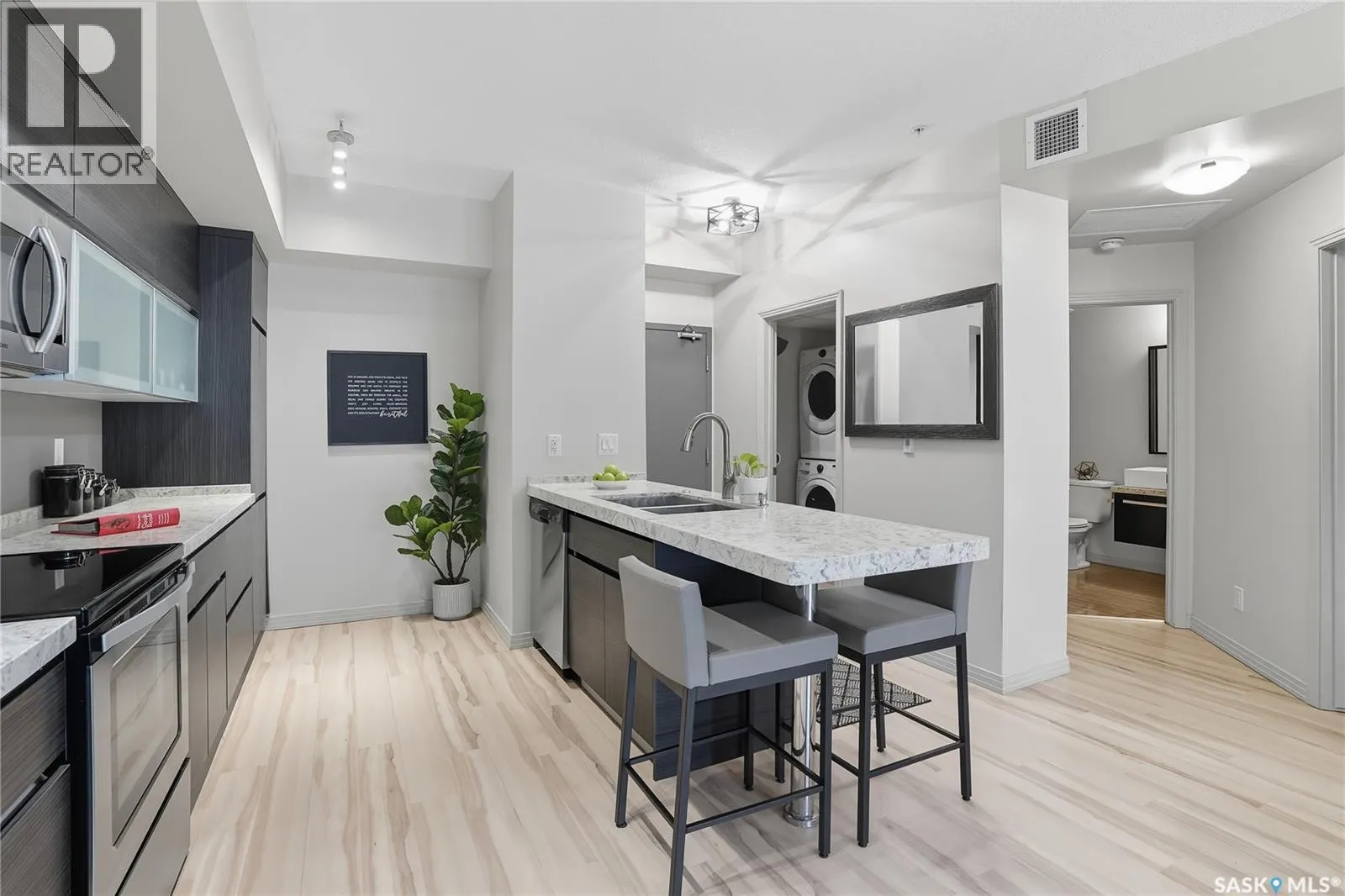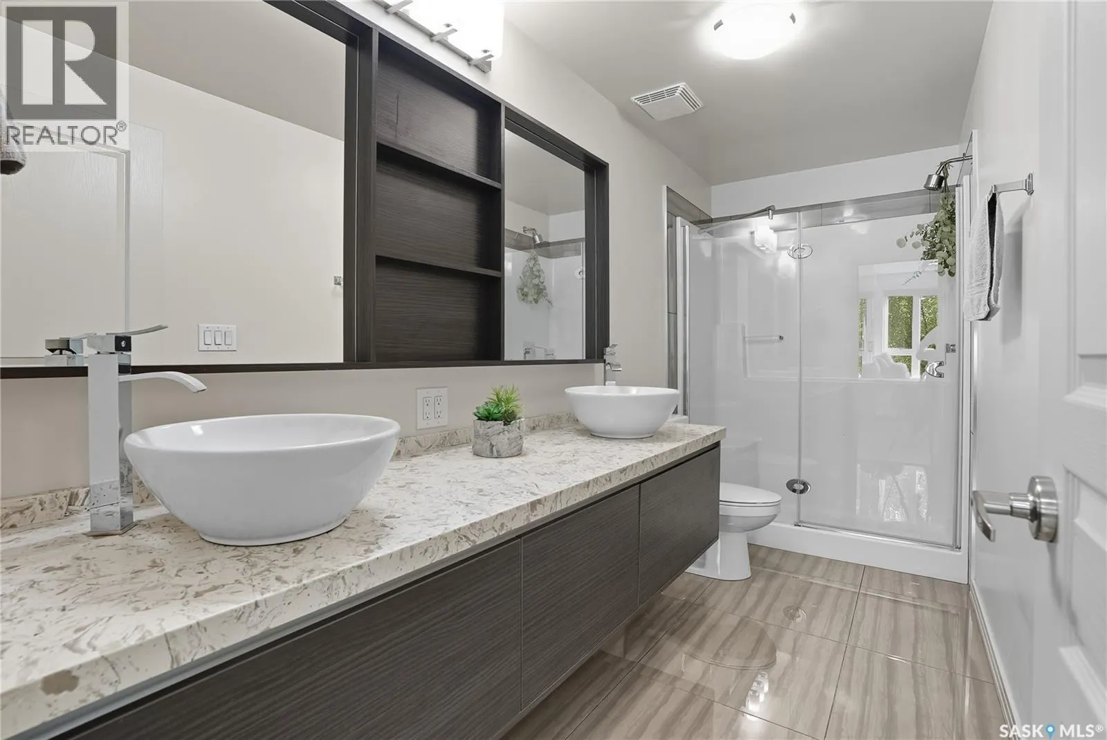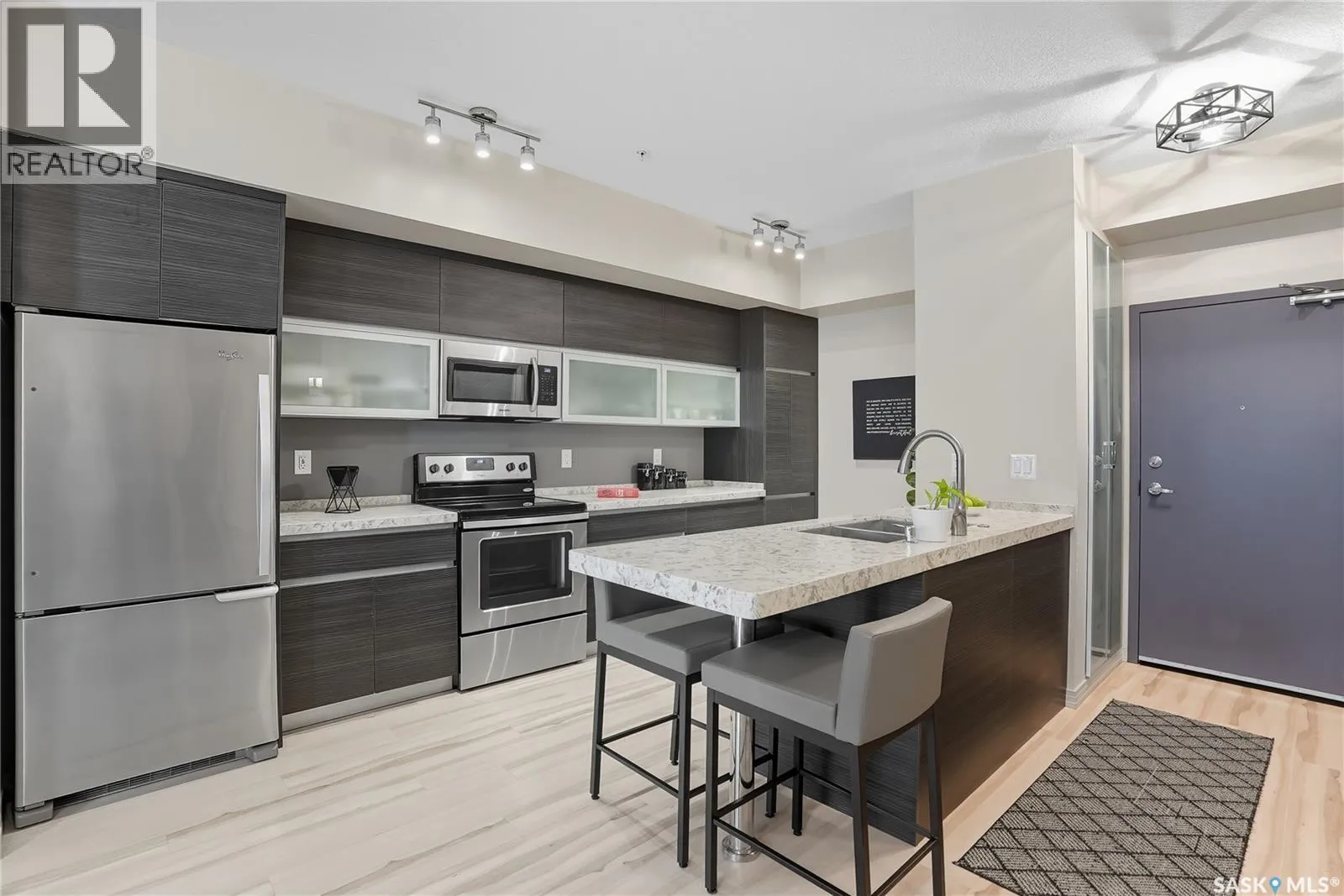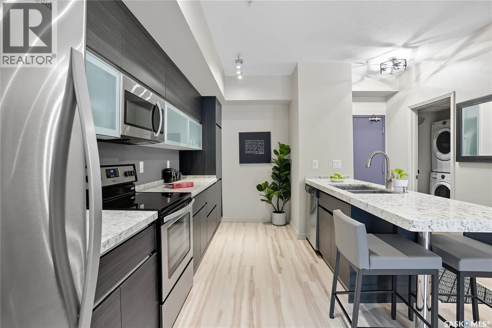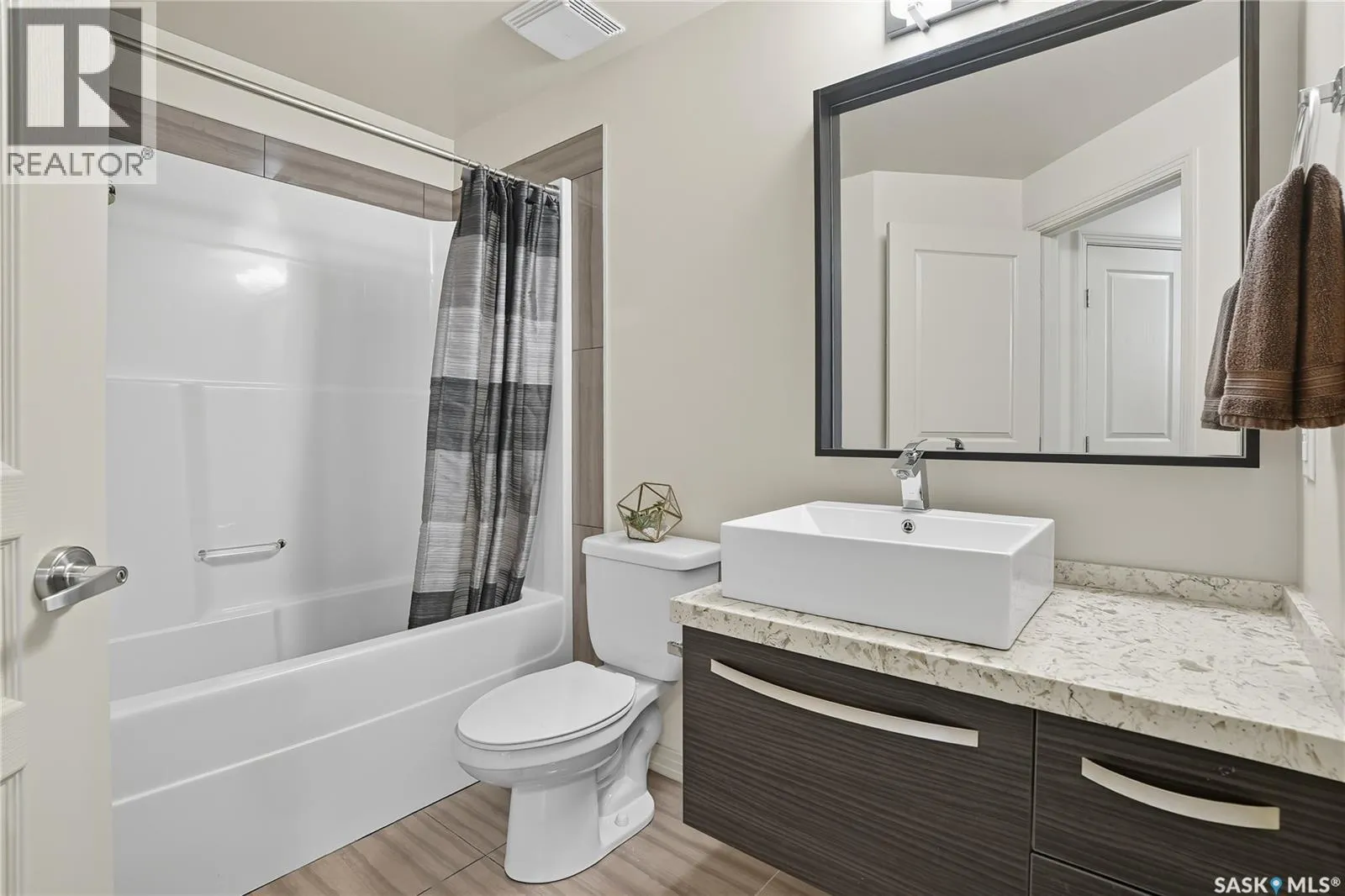 Welcome to 223 Evergreen Square #120 â a beautifully maintained 900 sq. ft. ground-level condo located in the heart of Evergreen, Saskatoon. This immaculate 2-bedroom, 2-bathroom unit stands out with its rare private entrance from the street, offering added convenience, privacy, and a townhouse-like feel that most units in the building donât have. Inside, you'll find a bright and modern living space featuring in-floor heating, central air conditioning, and elegant quartz countertops throughout. The primary bedroom includes a tiled ensuite with a dual vanity, adding a touch of luxury to your daily routine. Enjoy the outdoors from your oversized terrace, complete with glass railings and durable, foot-friendly vinyl deckingâperfect for entertaining or relaxing with views of Amphitheatre Park right across the street. This home also comes with an underground parking stall and a private storage unit located just beside it for added convenience. Residents of the building enjoy access to a yoga room, games room, and a pet-friendly âDoggy Spaâ wash station, making it ideal for both active lifestyles and pet owners. Located close to public transit, walking paths, and local amenities, this unit offers a perfect balance of comfort, style, and accessibility. (id:27476)