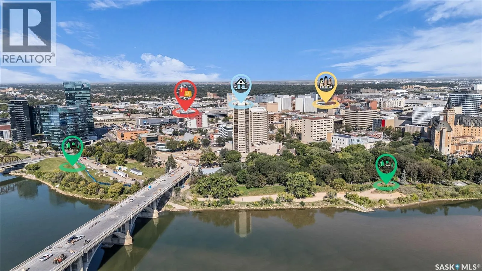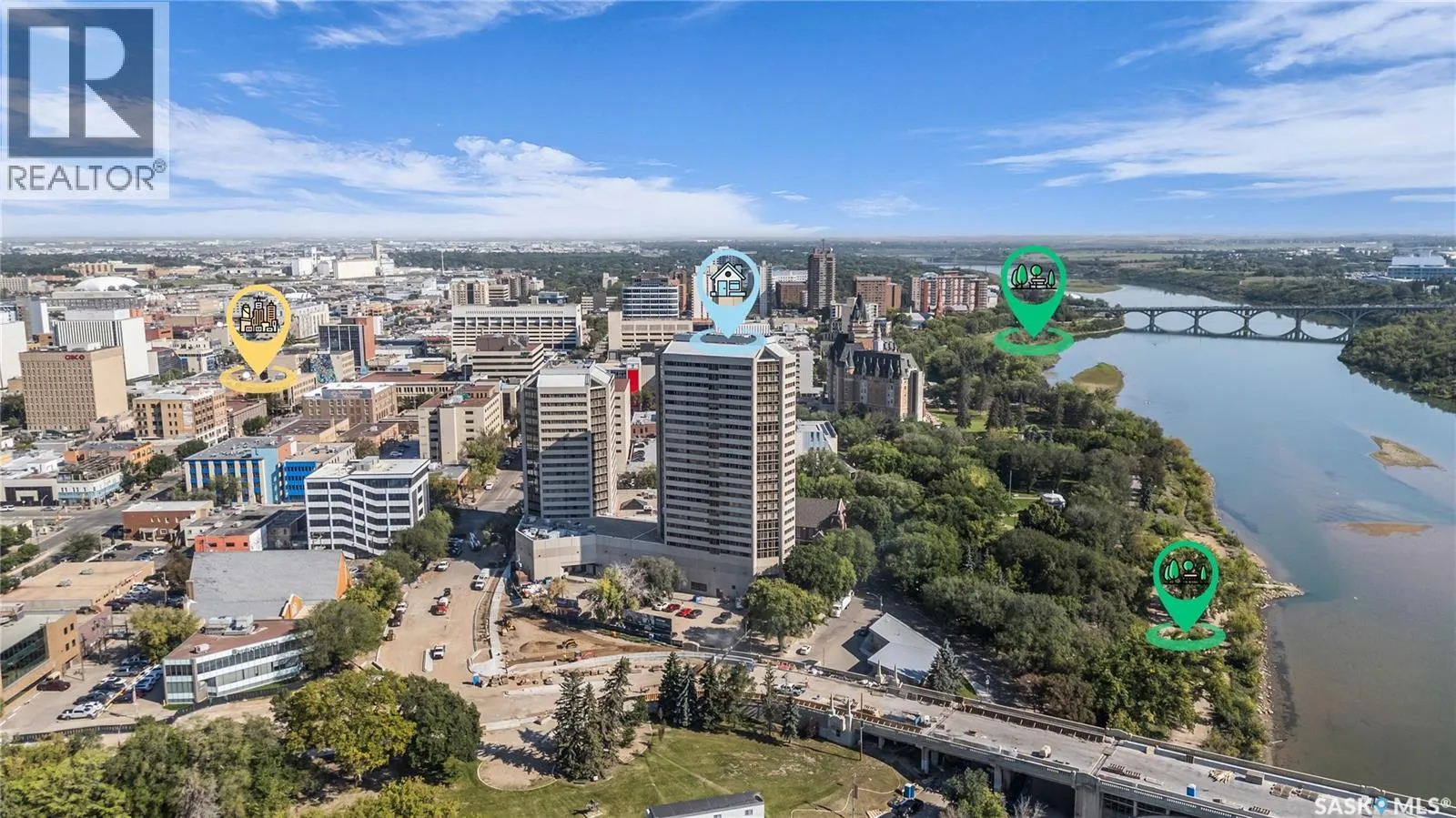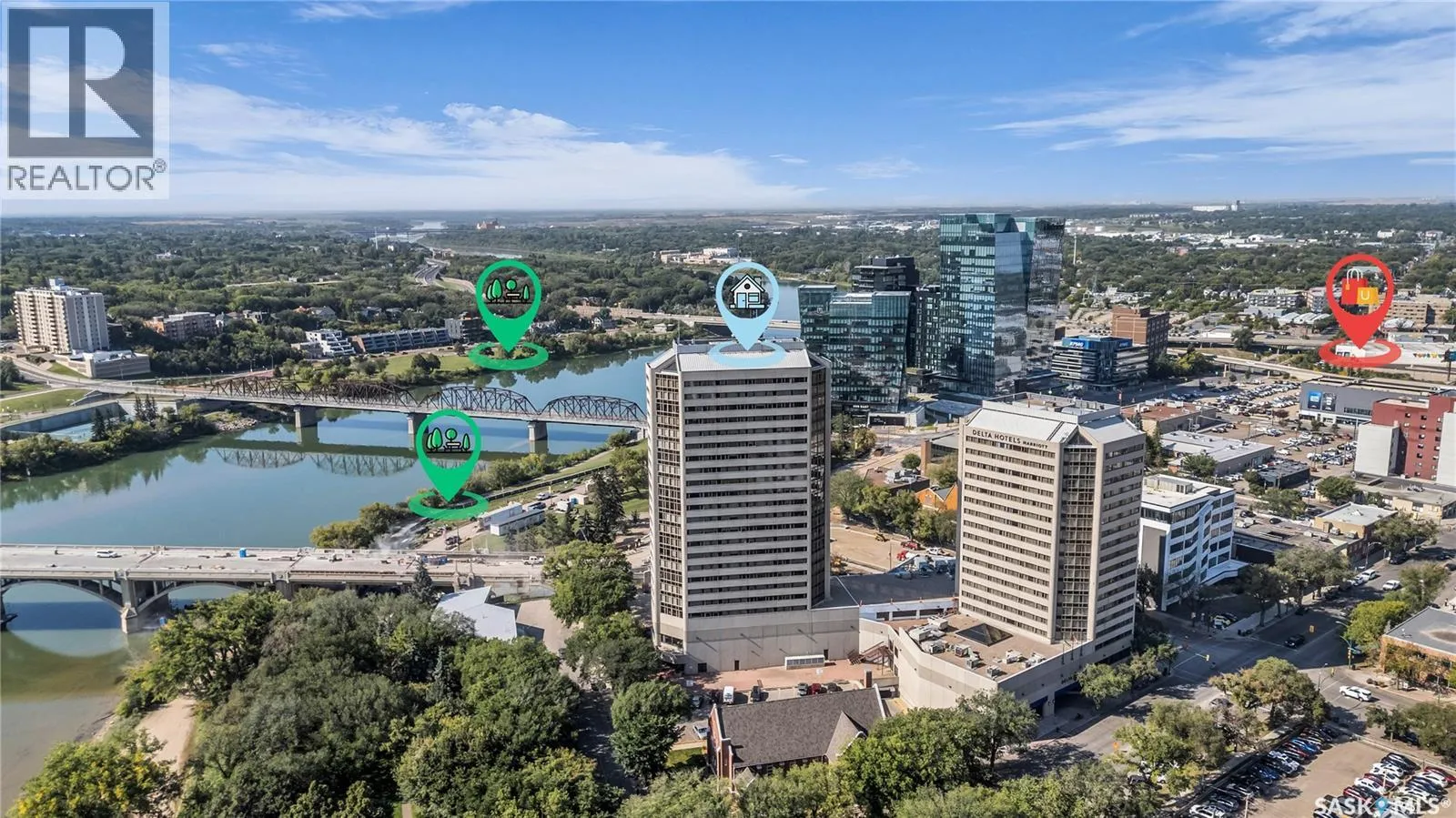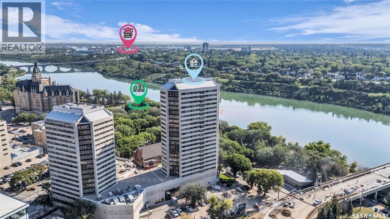 The Renaissance â Iconic Views & Urban Living Welcome to The Renaissance, where location, lifestyle, and luxury come together. This 2-bedroom, 2bathroom condo has been extensively renovated and is completely move-in readyâoffering not just a home, but a statement. From the moment you step inside, the unmatched view steals the showâlooking directly onto the historic Bessborough Hotel and beyond. Whether it's sunrise coffees or sunset wine, your private space frames one of the best views in Saskatoon. Located just steps from the Saskatchewan River, walking and running trails, and a short stroll to Broadway, youâre never far from local gems like Poached, Shelter, and Cafe Del Rey. The best of Saskatoonâs dining, coffee, and culture is truly at your doorstep. And when you're not out enjoying the neighbourhood? Youâll have access to top-tier amenities including a full gym, indoor pool, and waterslideâmaking it easy to relax or recharge without leaving the building. (id:27476)
