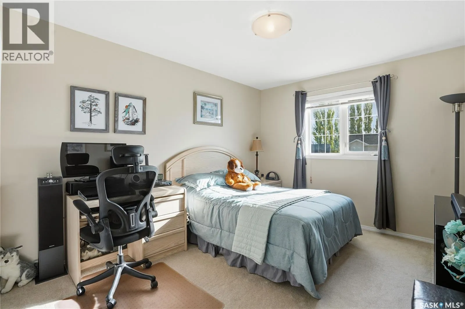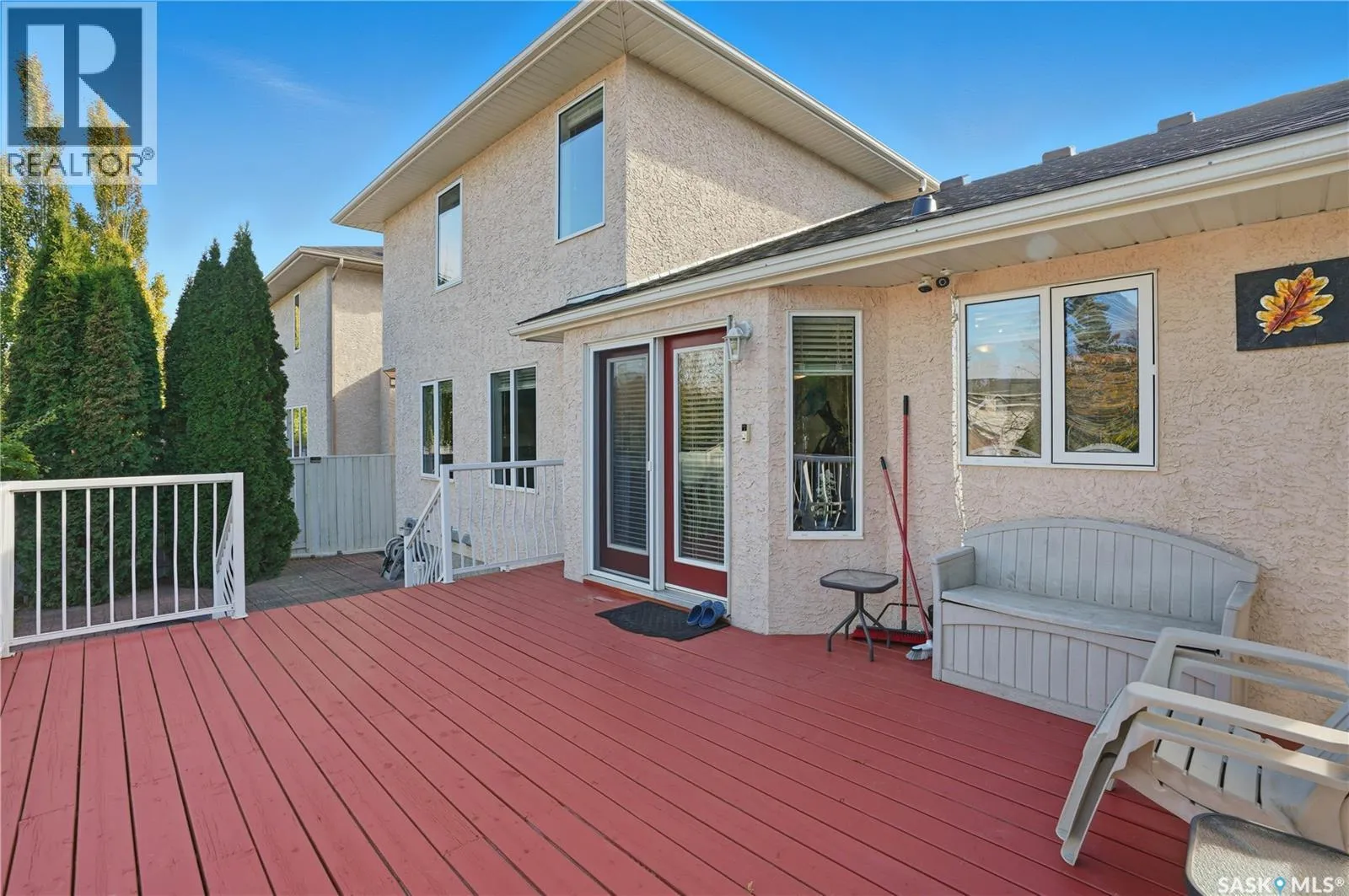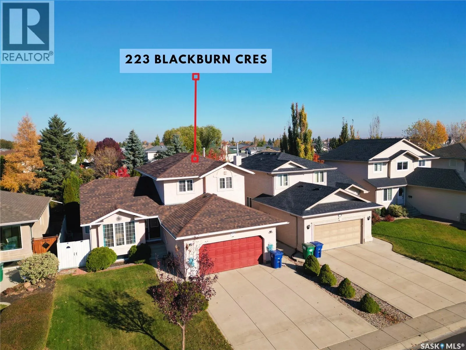 Welcome to your move-in ready new home, 223 Blackburn Cres, a premium-built 2-storey split in Saskatoonâs sought-after Briarwood neighborhood. Built in 2004 and meticulously maintained, this 1,993 sq. ft. home offers 5 bedrooms, 4 bathrooms that make living comfortable and life enjoyable. The exterior features stucco and newer asphalt shingles (2022). A good-size 22*22 ft double garage. Additional features include Central Air, Central Vac, HRV, and smart-home systems. All bathrooms feature custom-built, cultured marble countertops. The landscaped yard boasts a large 20Ã14 ft. deck with natural gas hookup, a brick patio, and underground sprinklers front and back. Inside, the main floor welcomes you with a spacious vaulted-ceiling, hardwood flooring living room, a formal dining area, and a kitchen featuring maple cabinets, granite countertops, backsplash, walk-in pantry and island. A large bay-windowed eating area opens to the deck. A full family room with a gas fireplace, a good-sized office, a 2-pc bath, and a separate laundry room complete the main floor. Upstairs, the primary suite includes a walk-in closet and 4-pc ensuite with Jacuzzi tub and corner shower. Two additional large bedrooms and another full bath offer ample spaces to accommodate a growing family with teenagers. The fully finished basement by the original builder features a large family room with 3D projector, 120" screen, and sound system (negotiable), plus two oversized bedrooms, a 4-pc bath, a storage den and a utility room with newer high-efficiency furnace and water heater (2022). The basement offers potential for conversion into a self-contained suite. The backyard is filled with trees and shrubsâperfect for summer enjoyments. Smart-home features include smart thermostats, a water-leak alarm system, and a backyard weather station. Almost everything you see in the house can stay (subject to negotiation). A rare find combining quality, comfort, and practicalityâperfect for a growing family. (id:27476)