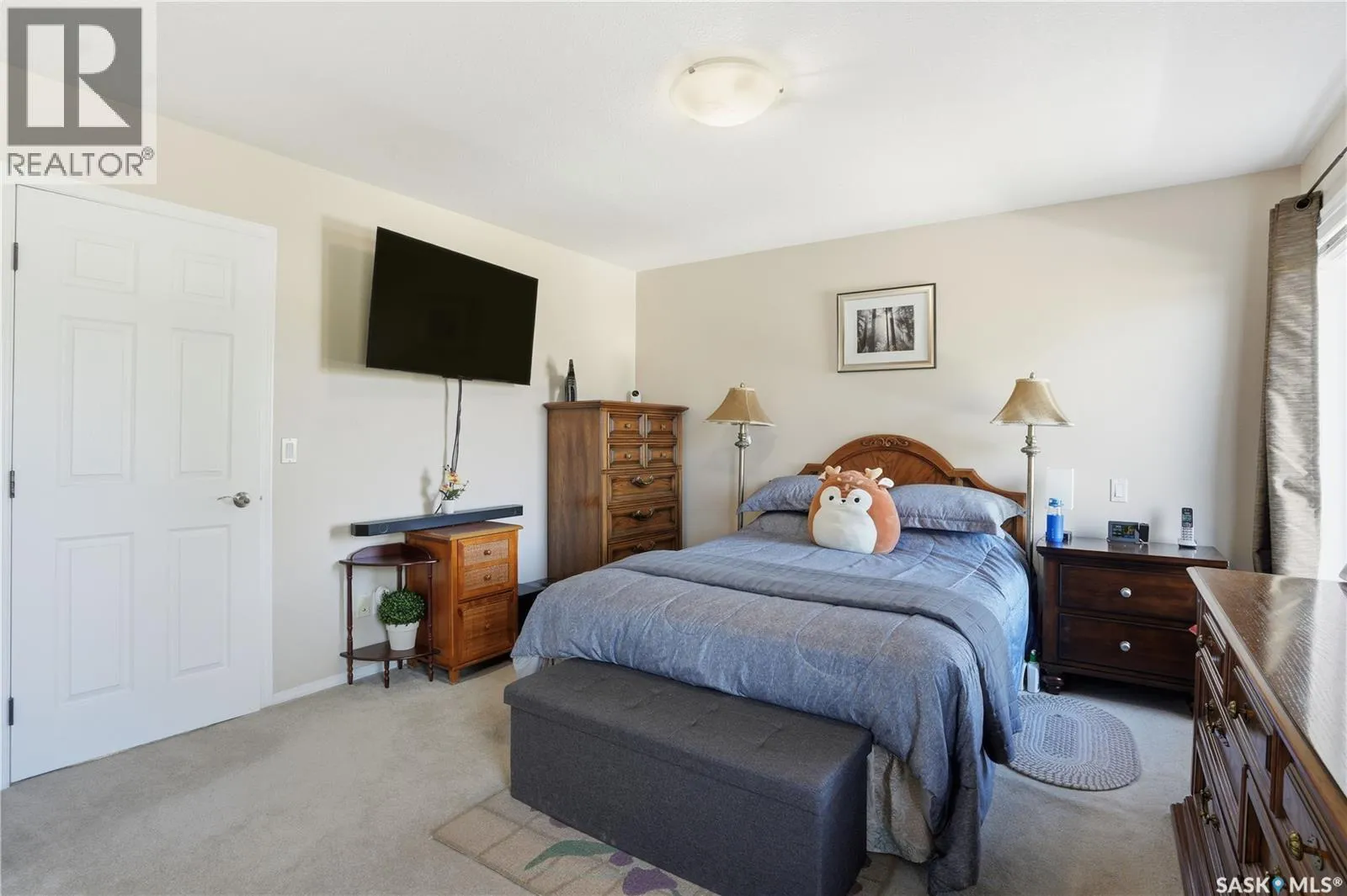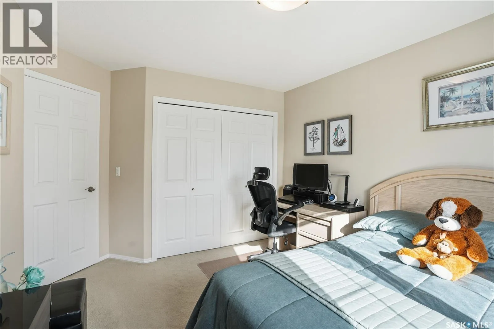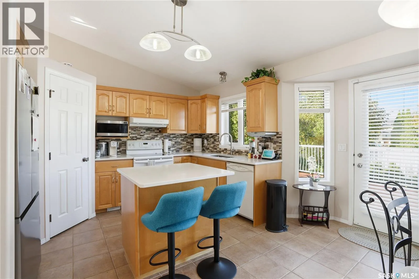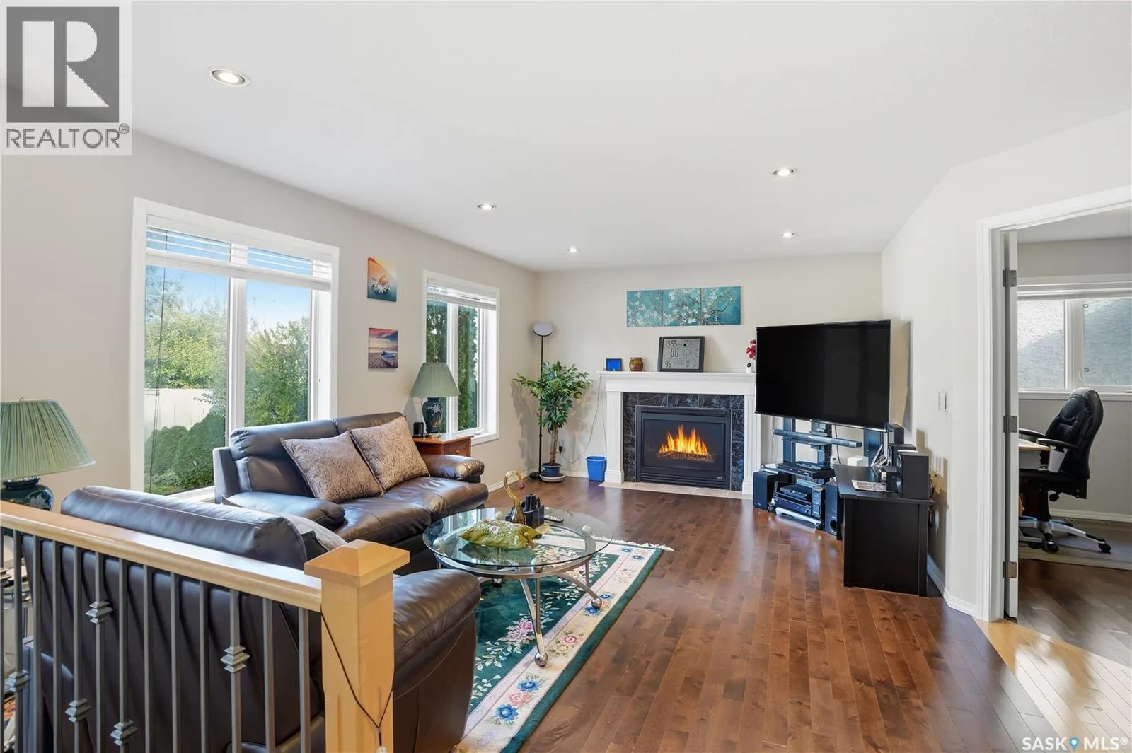 Welcome to your move-in ready new home, 223 Blackburn Cres, a premium-built 2-storey split in Saskatoonâs sought-after Briarwood neighborhood. Built in 2004 and meticulously maintained, this 1,993 sq. ft. home offers 5 bedrooms, 4 bathrooms that make living comfortable and life enjoyable. The exterior features stucco and newer asphalt shingles (2022). A good-size 22*22 ft double garage. Additional features include Central Air, Central Vac, HRV, and smart-home systems. All bathrooms feature custom-built, cultured marble countertops. The landscaped yard boasts a large 20Ã14 ft. deck with natural gas hookup, a brick patio, and underground sprinklers front and back. Inside, the main floor welcomes you with a spacious vaulted-ceiling, hardwood flooring living room, a formal dining area, and a kitchen featuring maple cabinets, granite countertops, backsplash, walk-in pantry and island. A large bay-windowed eating area opens to the deck. A full family room with a gas fireplace, a good-sized office, a 2-pc bath, and a separate laundry room complete the main floor. Upstairs, the primary suite includes a walk-in closet and 4-pc ensuite with Jacuzzi tub and corner shower. Two additional large bedrooms and another full bath offer ample spaces to accommodate a growing family with teenagers. The fully finished basement by the original builder features a large family room with 3D projector, 120" screen, and sound system (negotiable), plus two oversized bedrooms, a 4-pc bath, a storage den and a utility room with newer high-efficiency furnace and water heater (2022). The basement offers potential for conversion into a self-contained suite. The backyard is filled with trees and shrubsâperfect for summer enjoyments. Smart-home features include smart thermostats, a water-leak alarm system, and a backyard weather station. Almost everything you see in the house can stay (subject to negotiation). A rare find combining quality, comfort, and practicalityâperfect for a growing family. (id:27476)
