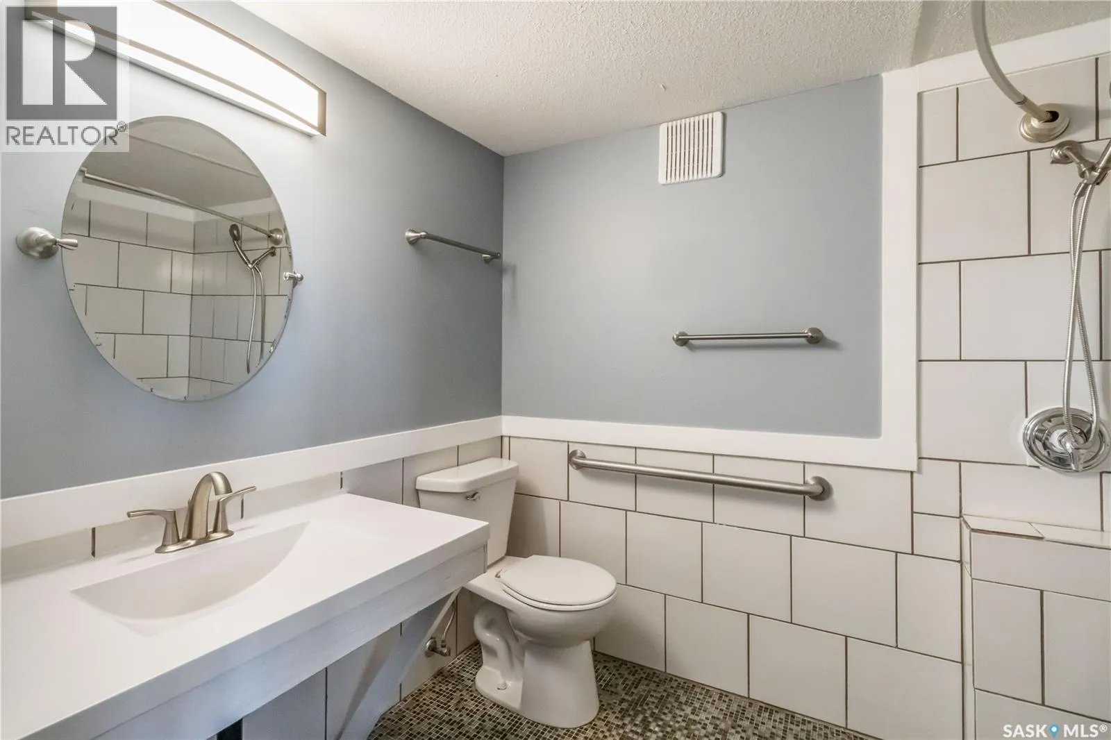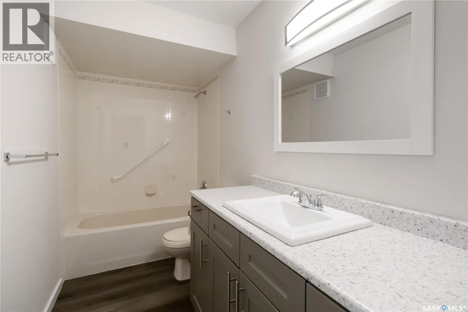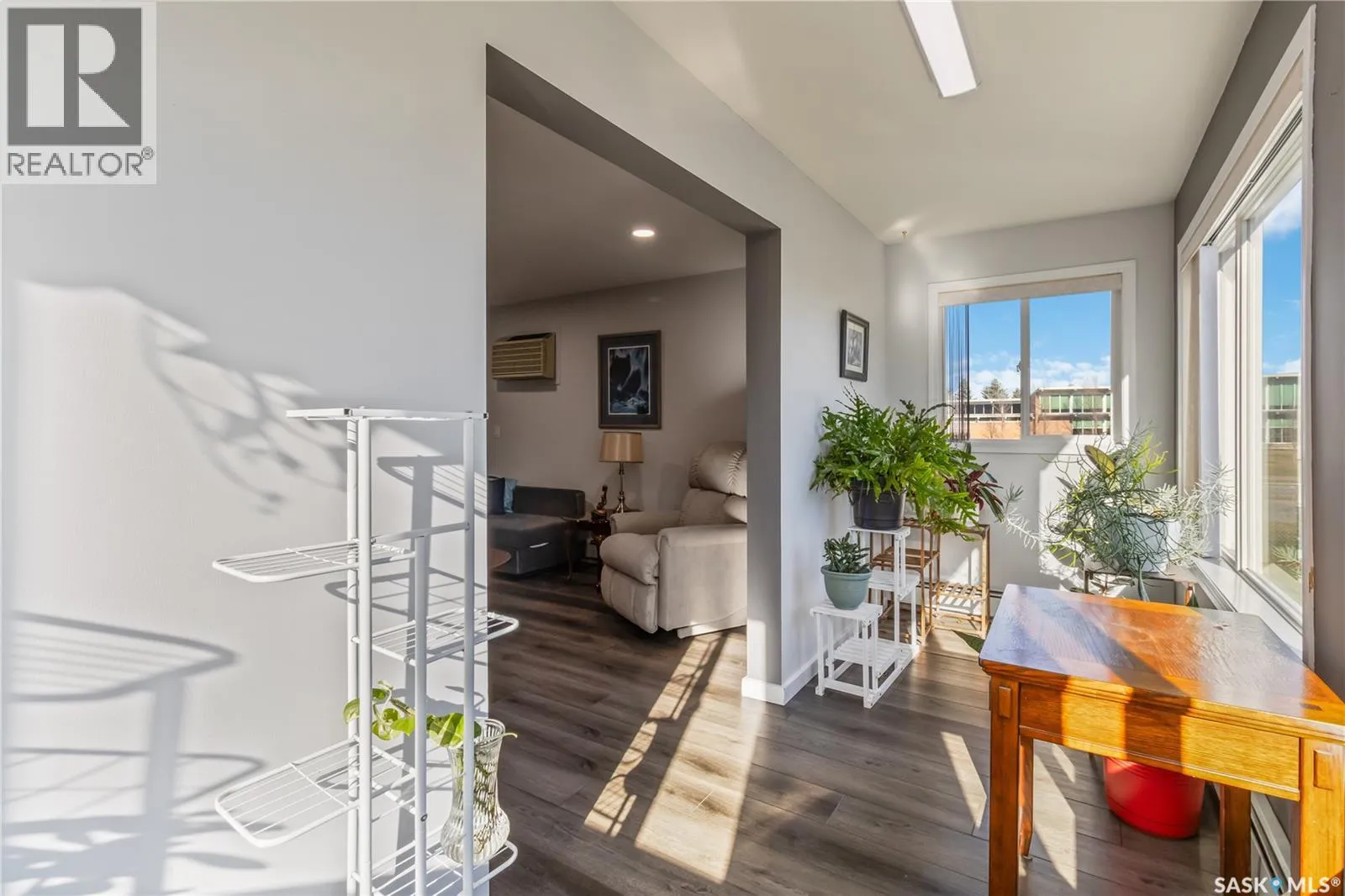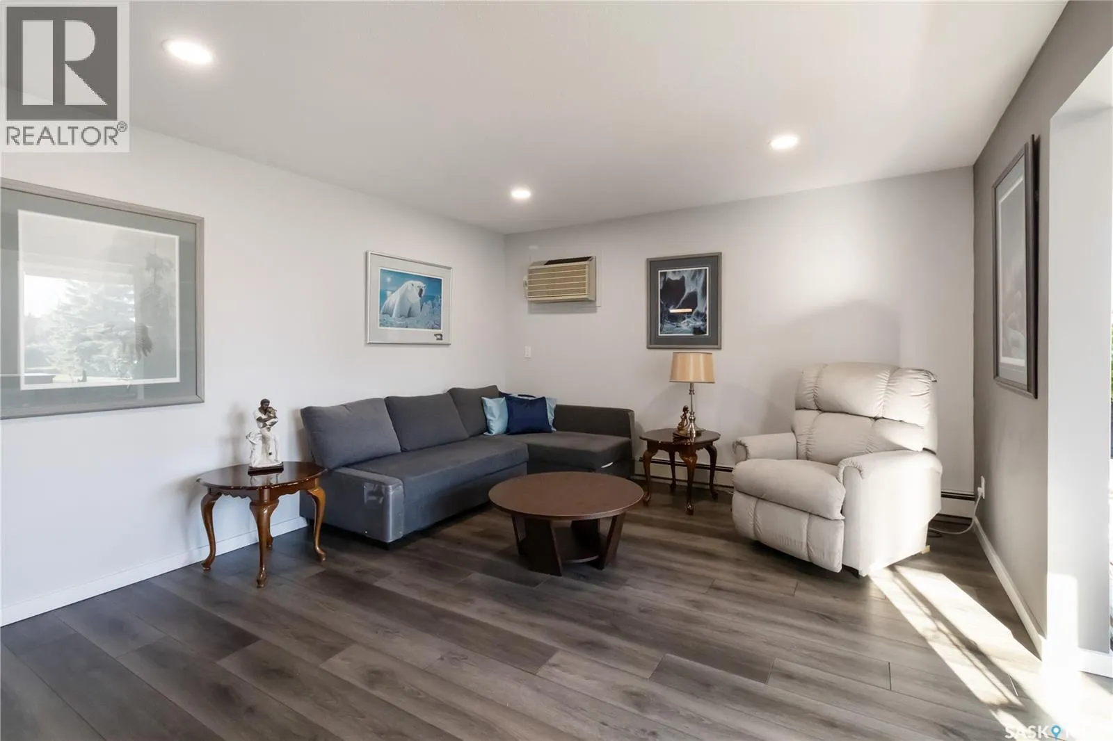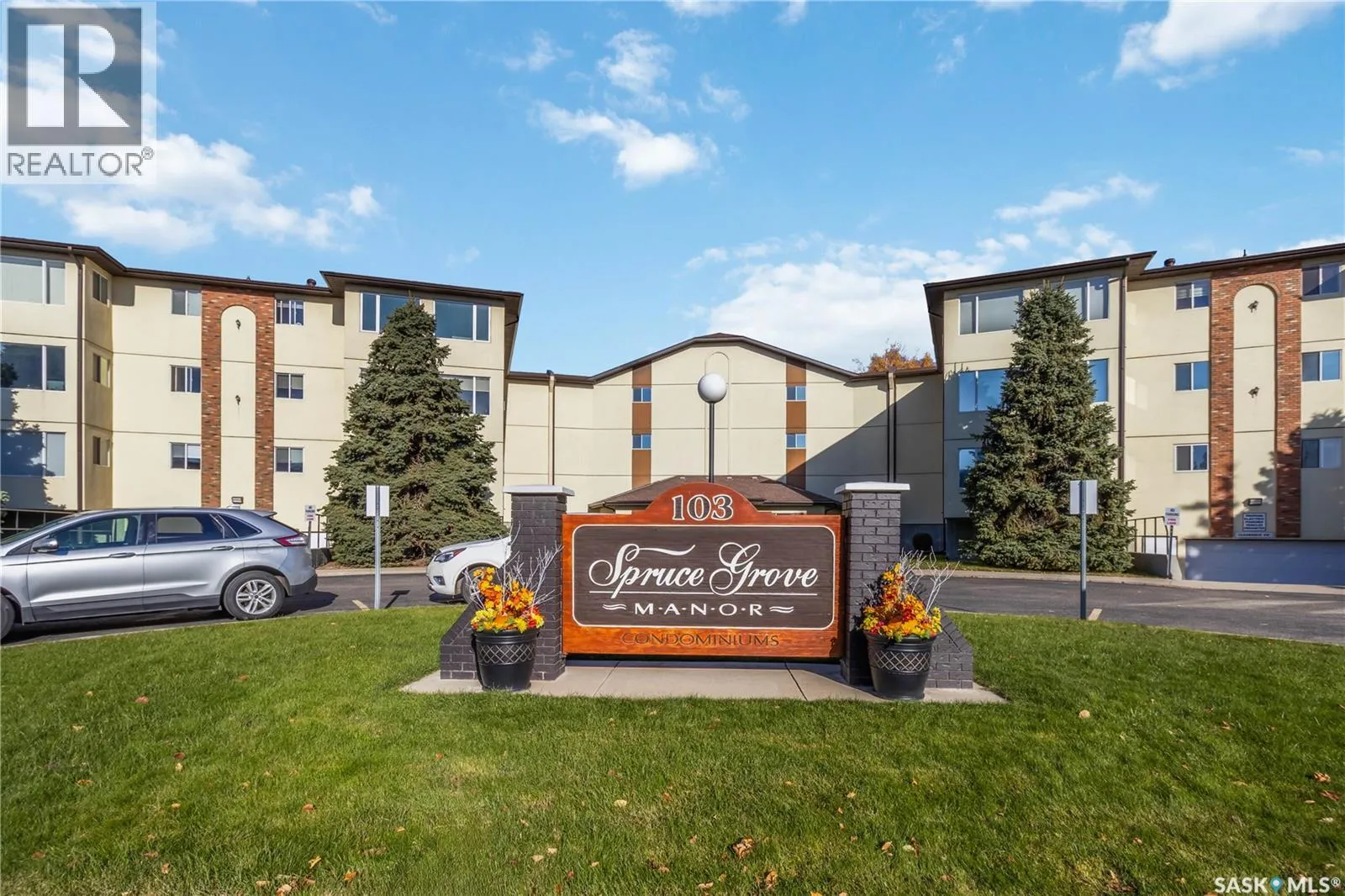 Welcome to 112-103 Keevil Crescent! This spacious 1,500 sq ft renovated condo is move in ready. Recent upgrades include new flooring throughout, a modern kitchen with new cabinetry and quartz countertops, newer appliances, new lighting - with recessed lights added in the living room, updated bathrooms, and new windows. The condo boasts two large bedrooms plus a versatile den/office while the laundry room offers extra space for a freezer or desk/crafts. The living room is roomy, and the sunroom is perfect for a plant lover or enjoying your morning coffee. The kitchen provides ample space for a future island and has plenty of room for a large dining table. The main four-piece bath features a new vanity, flooring and paint. The large primary bedroom includes a three-piece bath with a wheelchair-accessible shower as well as a walk-in closet and another spacious bedroom is just down the hall. Additional highlights include one heated underground parking spot, a spacious storage room, an elevator, exterior parking for owners, and visitor parking out front. Conveniently located within walking distance of various stores and a library. (id:27476)