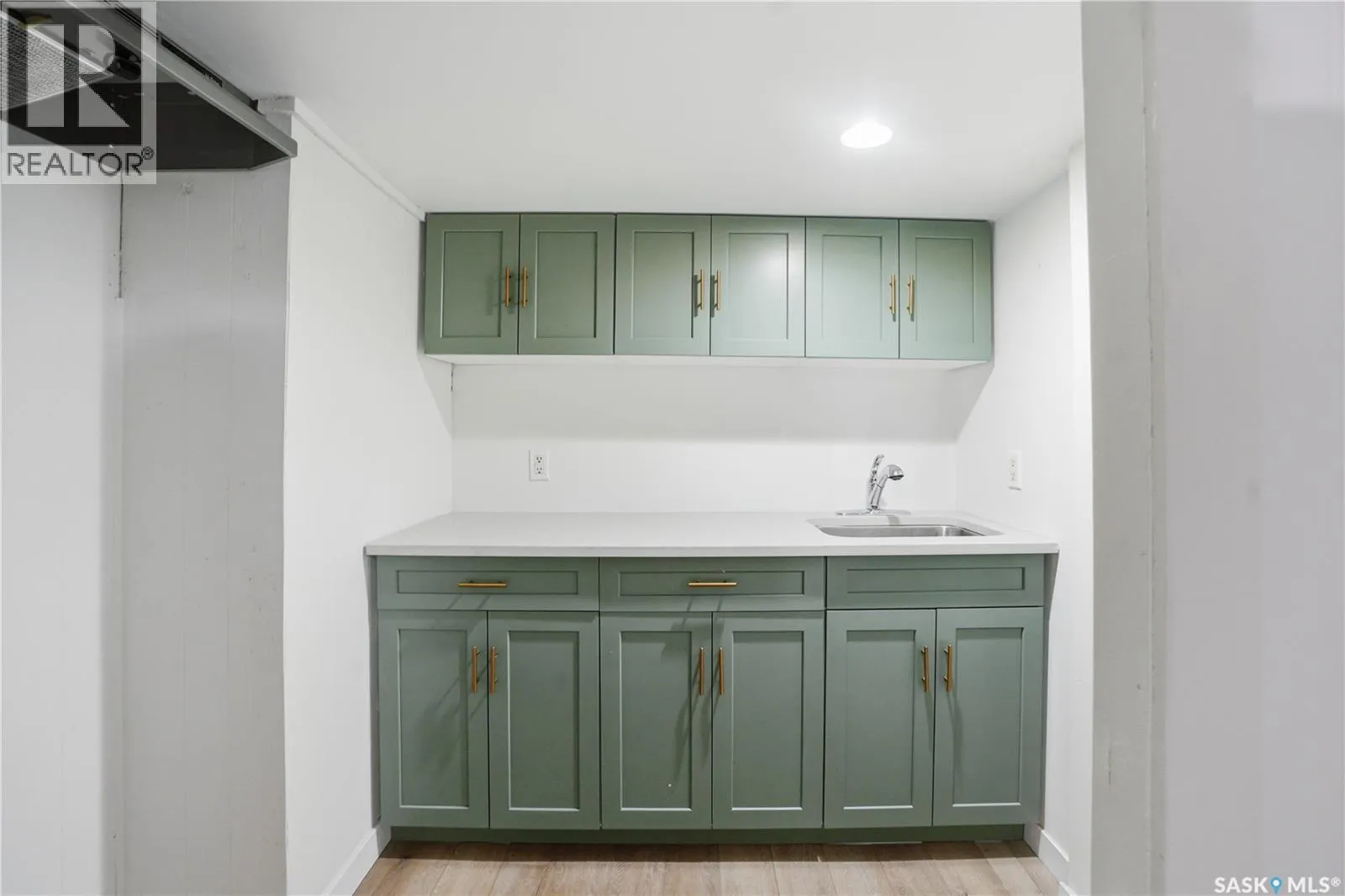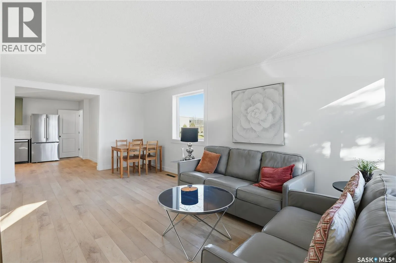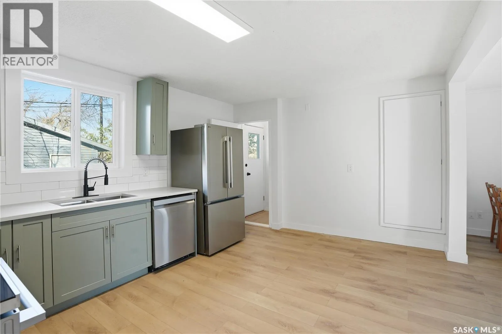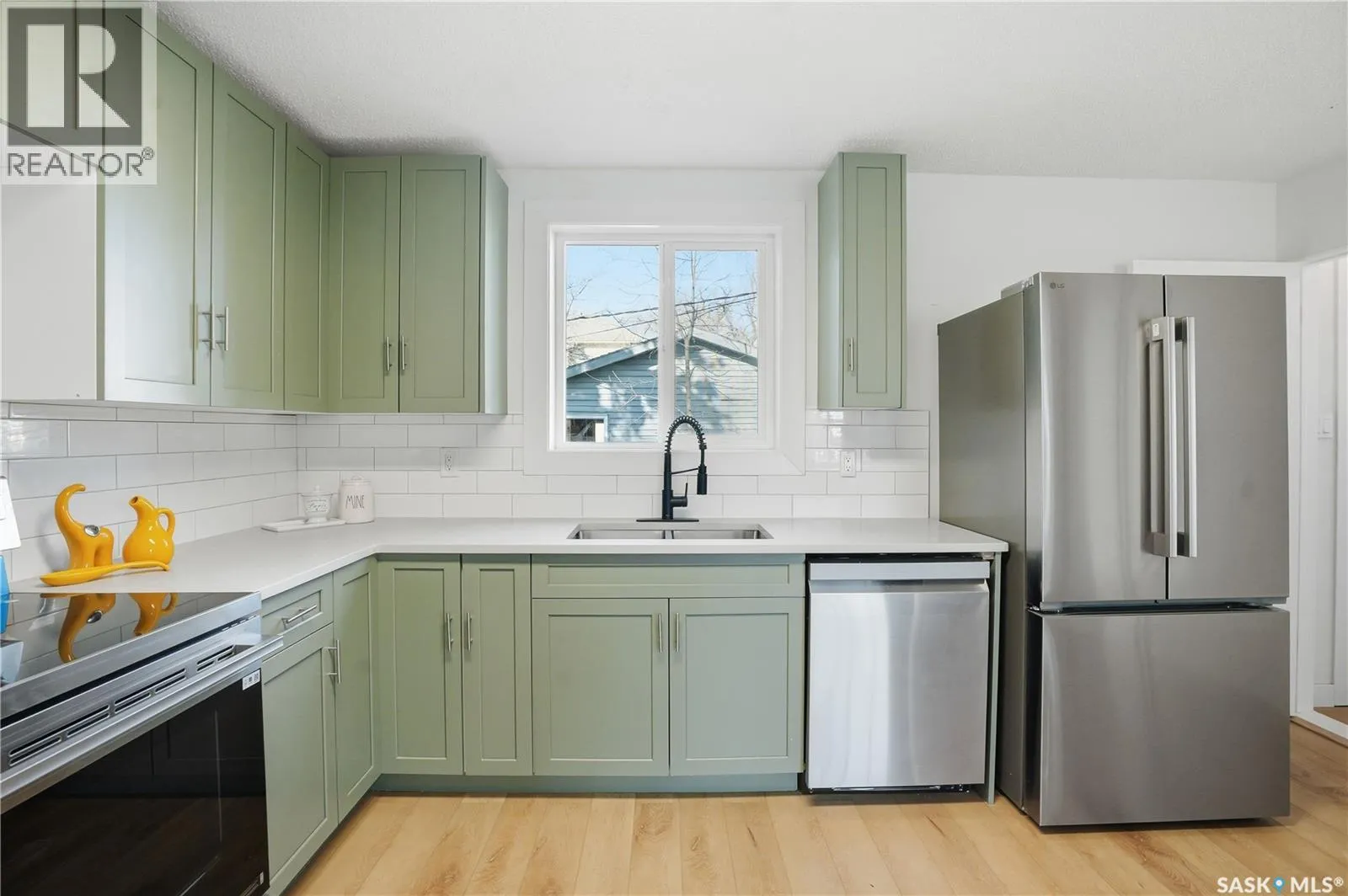 Newly renovated 914 sq ft bungalow in Caswell Hill! Featuring brand-new kitchen cabinets, appliances, flooring, windows, furnace, and hot water tank. The main floor offers two bedrooms, a full modern bathroom, and a spacious living and dining area. The basement has a separate entrance and includes two self-contained units: Unit A with one bedroom, a living room, a kitchen, and a 3-piece bathroom; and Unit B with a living space, a full bathroom, and a counter with sink â perfect as a studio or guest suite. Located directly across the street from Saskatchewan Polytechnic, this property is ideal for families with students or for generating rental income to help with your mortgage! Double detached garage is insulated and boarded ,its ready for the coming winter. Seprate electrical panel in the garage. (id:27476)