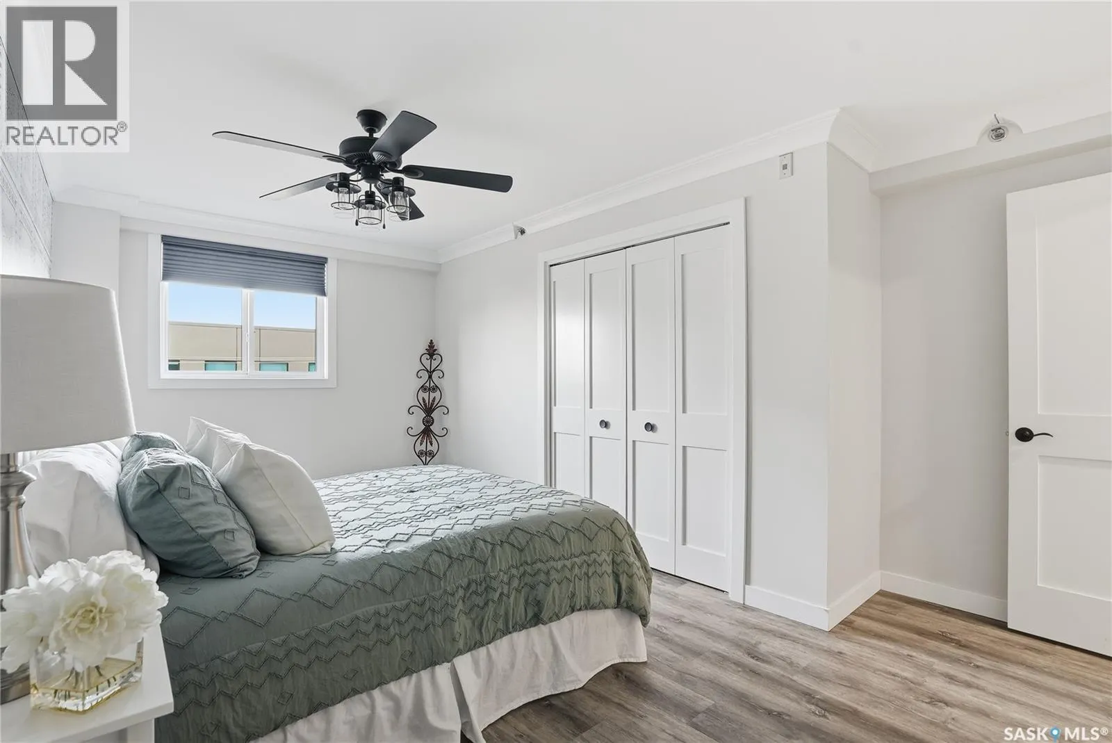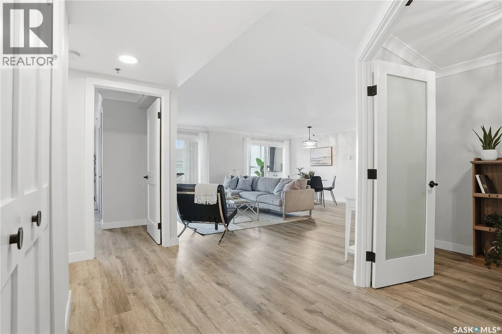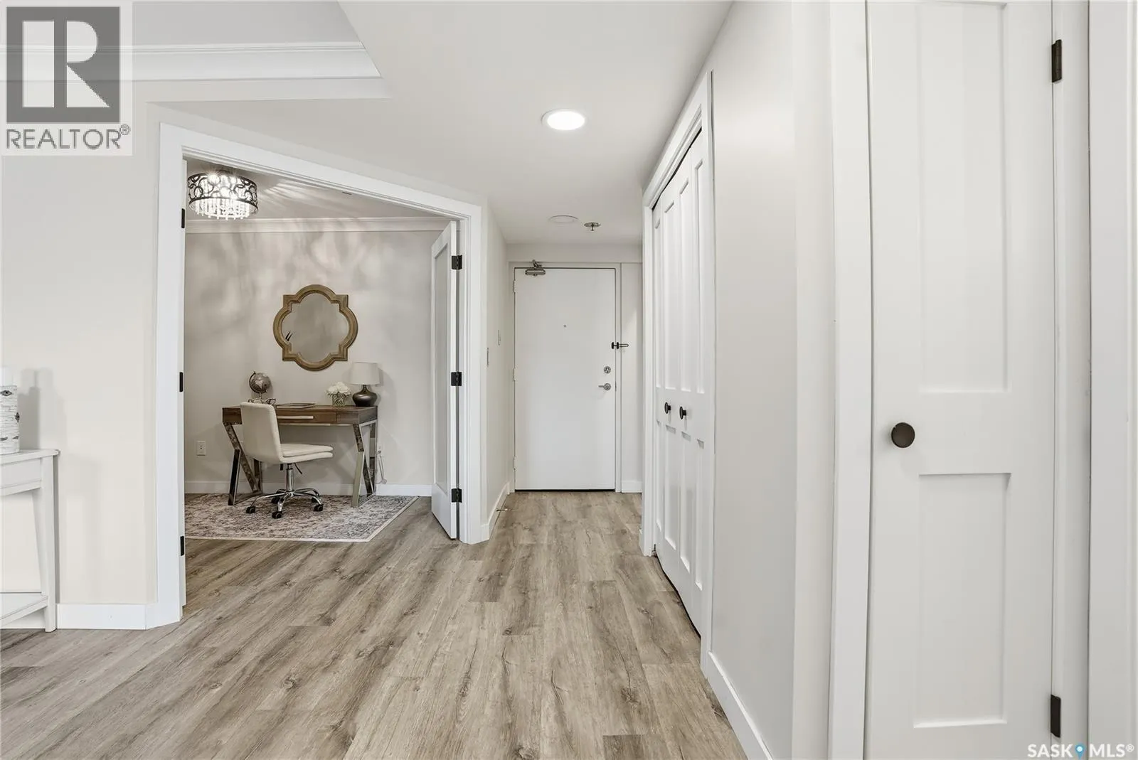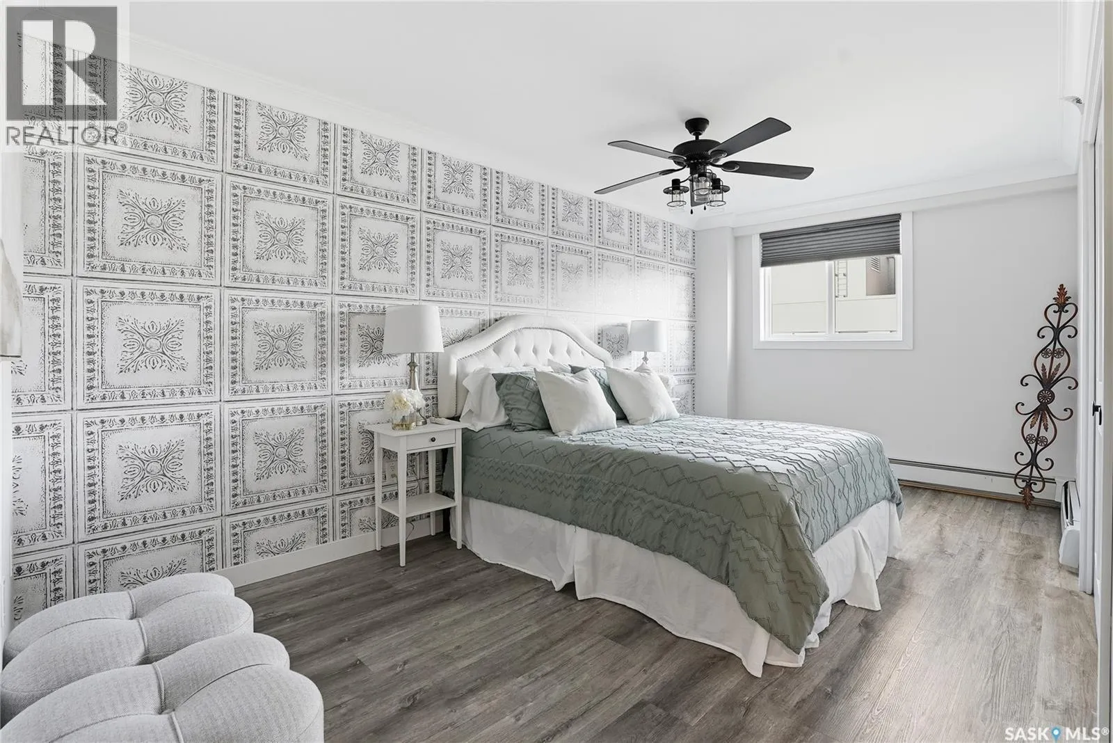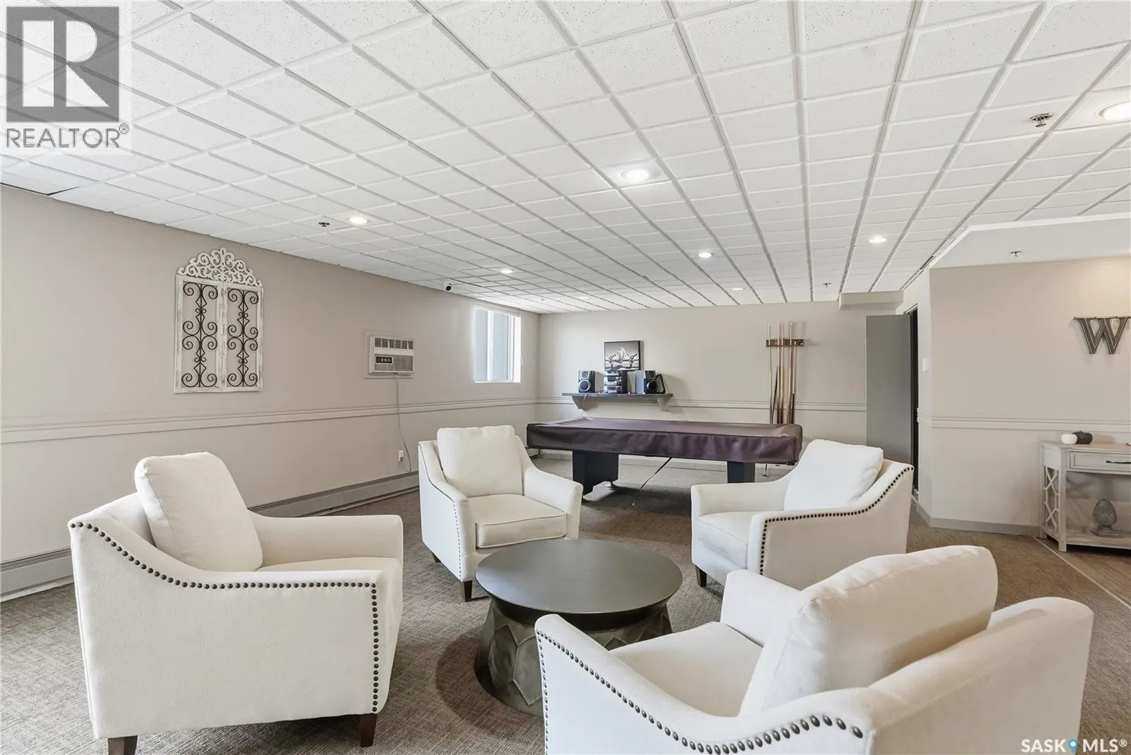 Welcome to The Wycliffe â A Rare City Park Gem! Experience modern elegance and timeless charm in this immaculate, 2-bedroom, 2-bathroom+den executive condo located in a prime location on 3rd Avenue in City Park. With over 1,475 sq.ft. of beautifully renovated living space, this third-floor suite offers the perfect blend of sophistication, comfort, and convenience at an unbeatable price! Step inside to discover a custom-designed kitchen featuring quartz countertops, a sleek tile backsplash, stainless steel appliances, and a massive island with seating â ideal for entertaining or everyday living. The kitchen opens seamlessly into a spacious living area, where a cozy fireplace with a classic live-edge mantle sets the tone for relaxed evenings at home. The primary suite is a true retreat, complete with a large walk-in closet and a stunning ensuite boasting a tiled glass shower. A second generous bedroom and a fully renovated 4-piece bath provide the perfect guest wing. Working from home? The private den with French doors offers the perfect quiet workspace. Highlights include: Covered breezeway deck â a unique feature of this unit, ideal for morning coffee or evening relaxation, crown molding throughout with newer paint, flooring, and trim, newer fridge and washer and dryer, newer windows and doors, wide hallways, and two elevators for convenience, covered parking stall included, beautifully maintained building with rooftop patio and welcoming common area. Perfectly positioned in Saskatoonâs highly sought-after City Park neighborhood, just a short walk to the river, downtown core, Earls restaurant, shopping, and City Hospital. All buyers/buyer's agents to verify measurements. This condo must be seen to be appreciated â opportunities like this are rare! Book your private showing today. (id:27476)