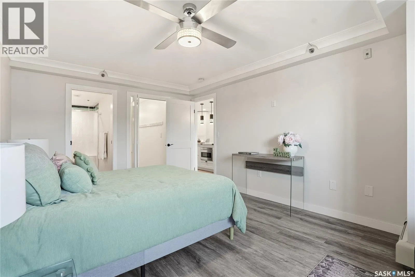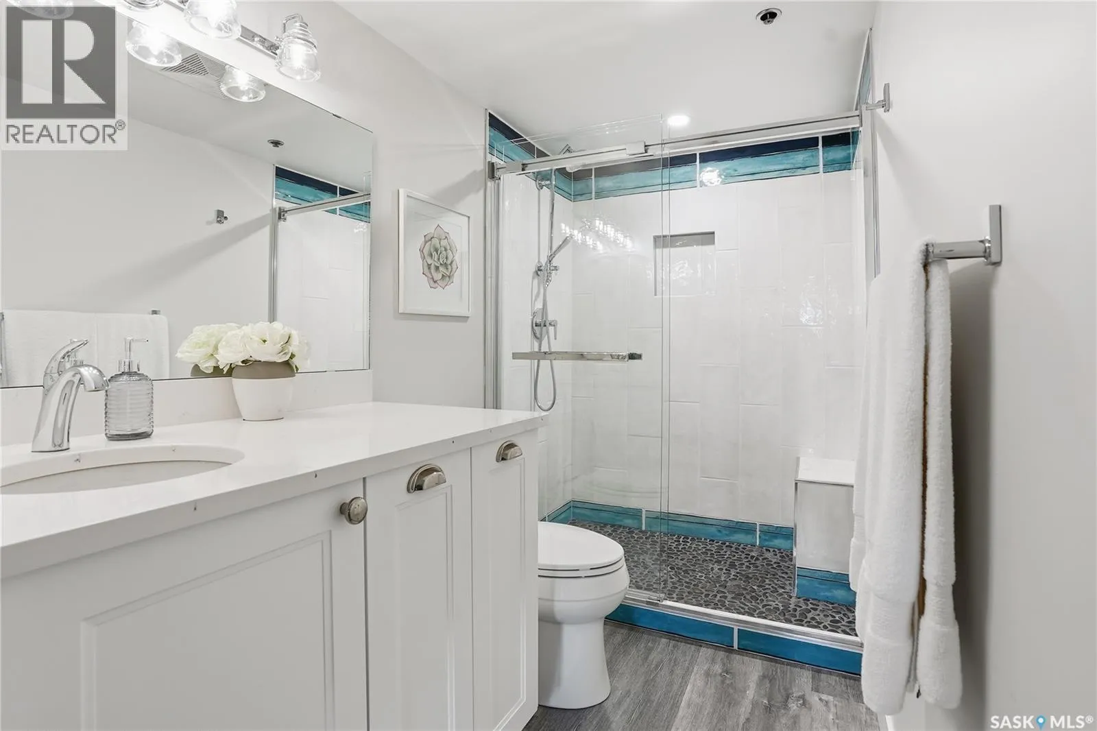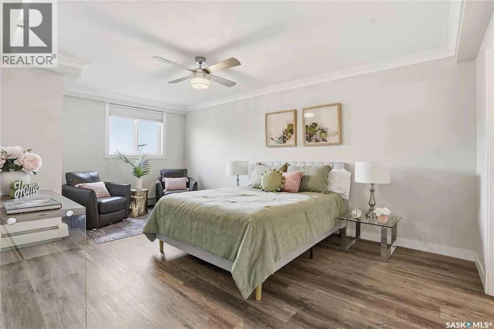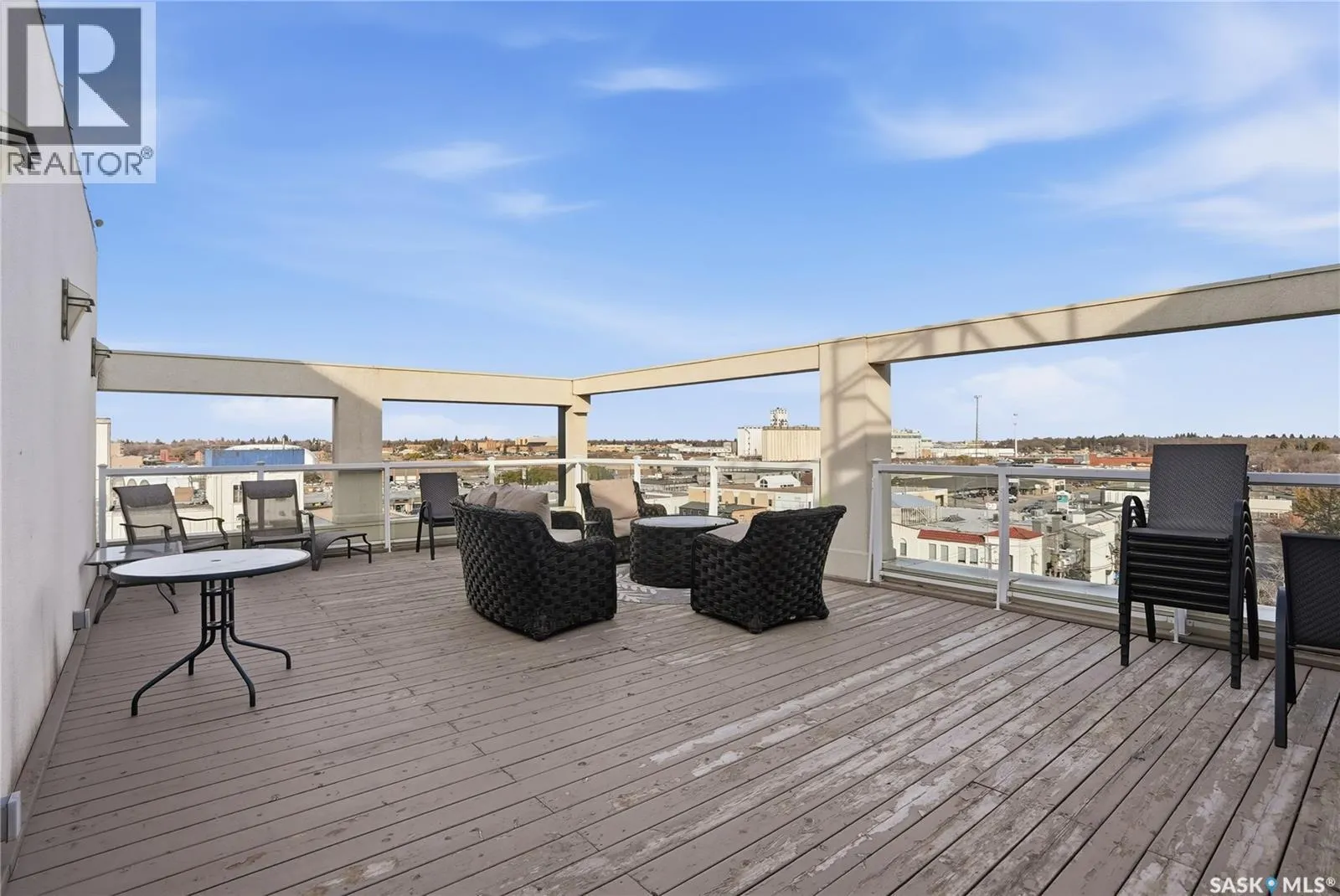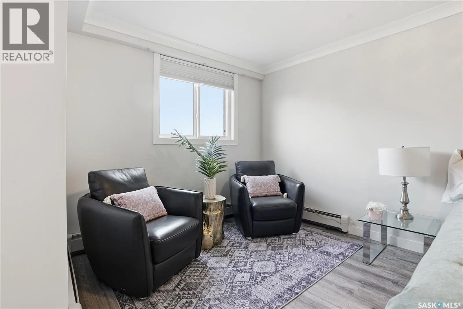 Welcome to The Wycliffe â A Rare City Park Gem! Experience modern elegance and timeless charm in this immaculate, 2-bedroom, 2-bathroom+den executive condo located in a prime location on 3rd Avenue in City Park. With over 1,475 sq.ft. of beautifully renovated living space, this third-floor suite offers the perfect blend of sophistication, comfort, and convenience at an unbeatable price! Step inside to discover a custom-designed kitchen featuring quartz countertops, a sleek tile backsplash, stainless steel appliances, and a massive island with seating â ideal for entertaining or everyday living. The kitchen opens seamlessly into a spacious living area, where a cozy fireplace with a classic live-edge mantle sets the tone for relaxed evenings at home. The primary suite is a true retreat, complete with a large walk-in closet and a stunning ensuite boasting a tiled glass shower. A second generous bedroom and a fully renovated 4-piece bath provide the perfect guest wing. Working from home? The private den with French doors offers the perfect quiet workspace. Highlights include: Covered breezeway deck â a unique feature of this unit, ideal for morning coffee or evening relaxation, crown molding throughout with newer paint, flooring, and trim, newer fridge and washer and dryer, newer windows and doors, wide hallways, and two elevators for convenience, covered parking stall included, beautifully maintained building with rooftop patio and welcoming common area. Perfectly positioned in Saskatoonâs highly sought-after City Park neighborhood, just a short walk to the river, downtown core, Earls restaurant, shopping, and City Hospital. All buyers/buyer's agents to verify measurements. This condo must be seen to be appreciated â opportunities like this are rare! Book your private showing today. (id:27476)