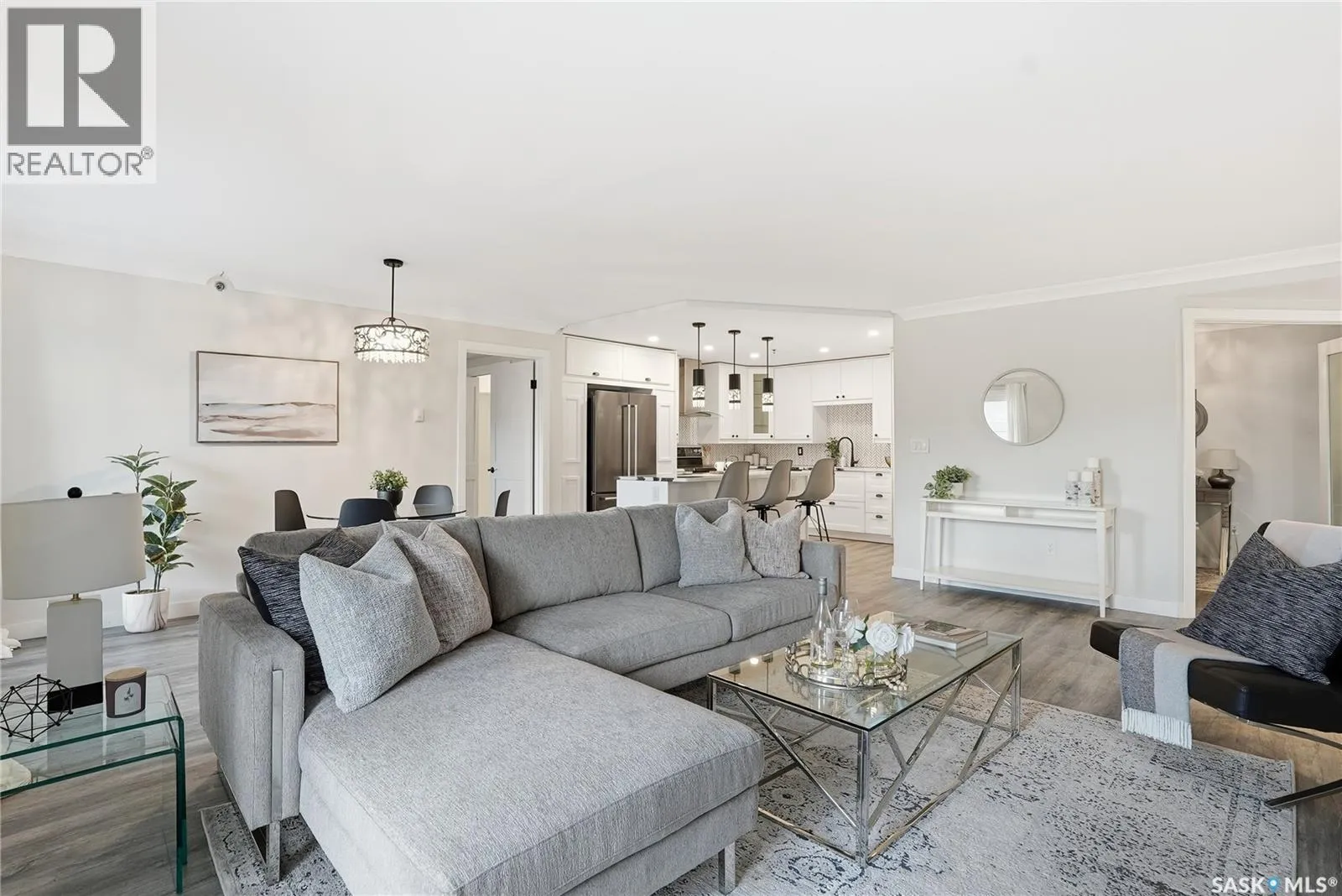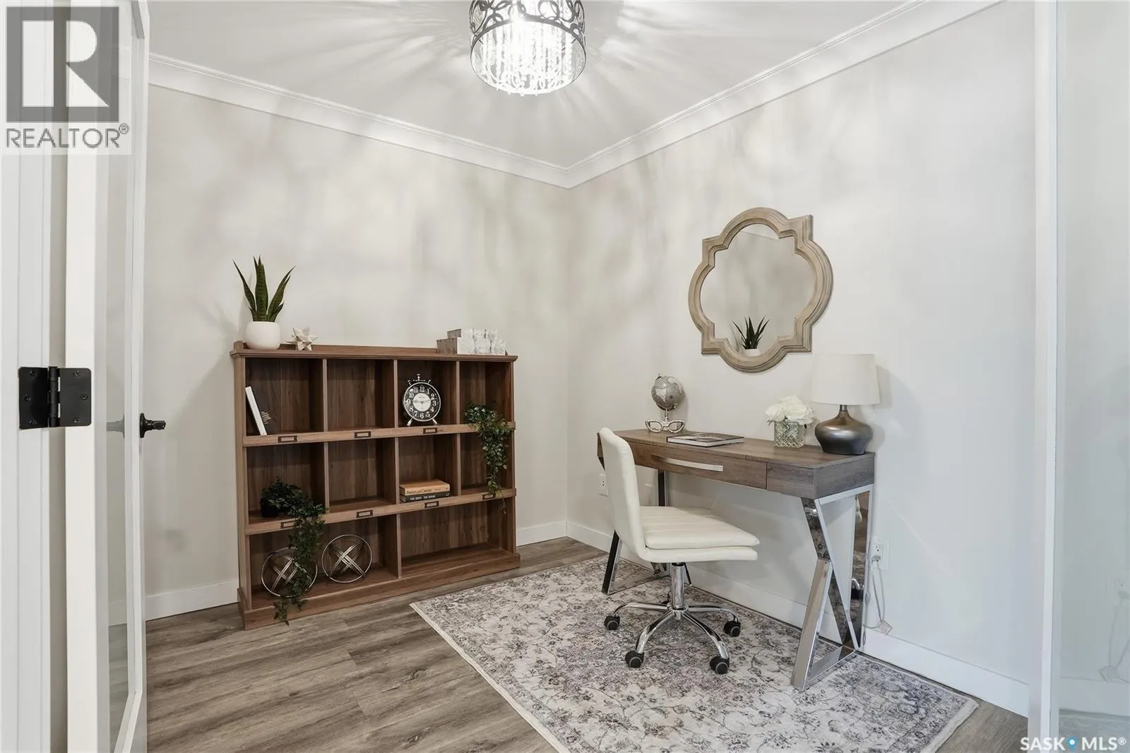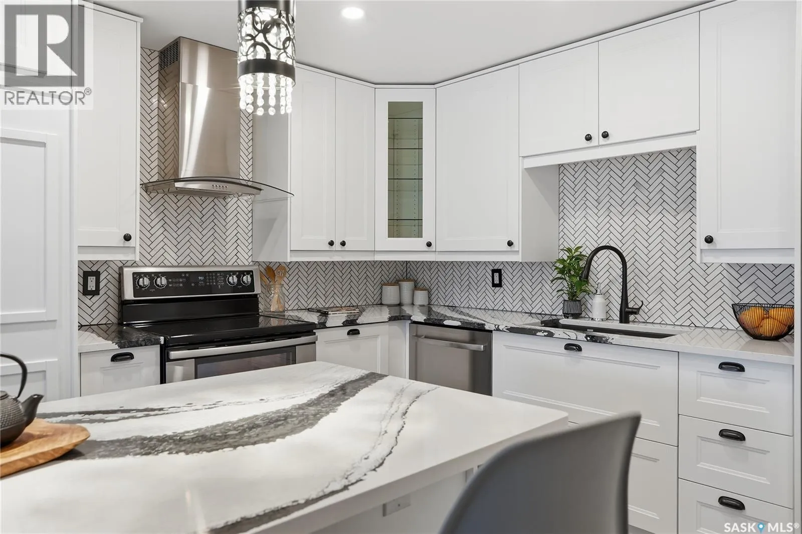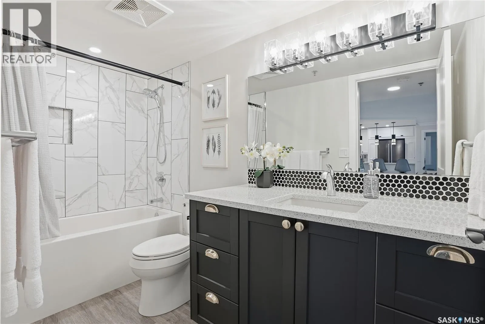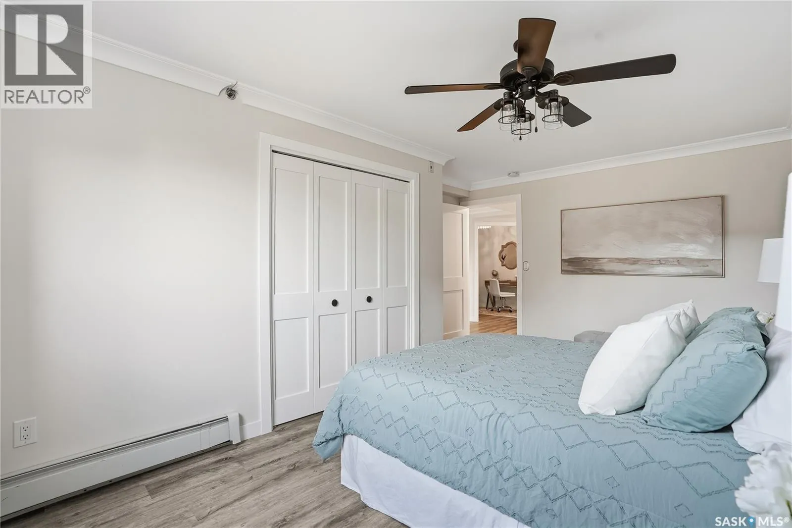 Welcome to The Wycliffe â A Rare City Park Gem! Experience modern elegance and timeless charm in this immaculate, 2-bedroom, 2-bathroom+den executive condo located in a prime location on 3rd Avenue in City Park. With over 1,475 sq.ft. of beautifully renovated living space, this third-floor suite offers the perfect blend of sophistication, comfort, and convenience at an unbeatable price! Step inside to discover a custom-designed kitchen featuring quartz countertops, a sleek tile backsplash, stainless steel appliances, and a massive island with seating â ideal for entertaining or everyday living. The kitchen opens seamlessly into a spacious living area, where a cozy fireplace with a classic live-edge mantle sets the tone for relaxed evenings at home. The primary suite is a true retreat, complete with a large walk-in closet and a stunning ensuite boasting a tiled glass shower. A second generous bedroom and a fully renovated 4-piece bath provide the perfect guest wing. Working from home? The private den with French doors offers the perfect quiet workspace. Highlights include: Covered breezeway deck â a unique feature of this unit, ideal for morning coffee or evening relaxation, crown molding throughout with newer paint, flooring, and trim, newer fridge and washer and dryer, newer windows and doors, wide hallways, and two elevators for convenience, covered parking stall included, beautifully maintained building with rooftop patio and welcoming common area. Perfectly positioned in Saskatoonâs highly sought-after City Park neighborhood, just a short walk to the river, downtown core, Earls restaurant, shopping, and City Hospital. All buyers/buyer's agents to verify measurements. This condo must be seen to be appreciated â opportunities like this are rare! Book your private showing today. (id:27476)