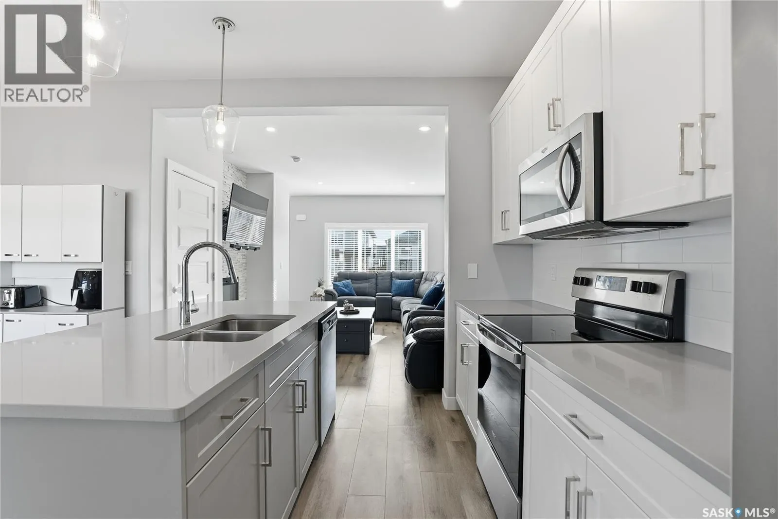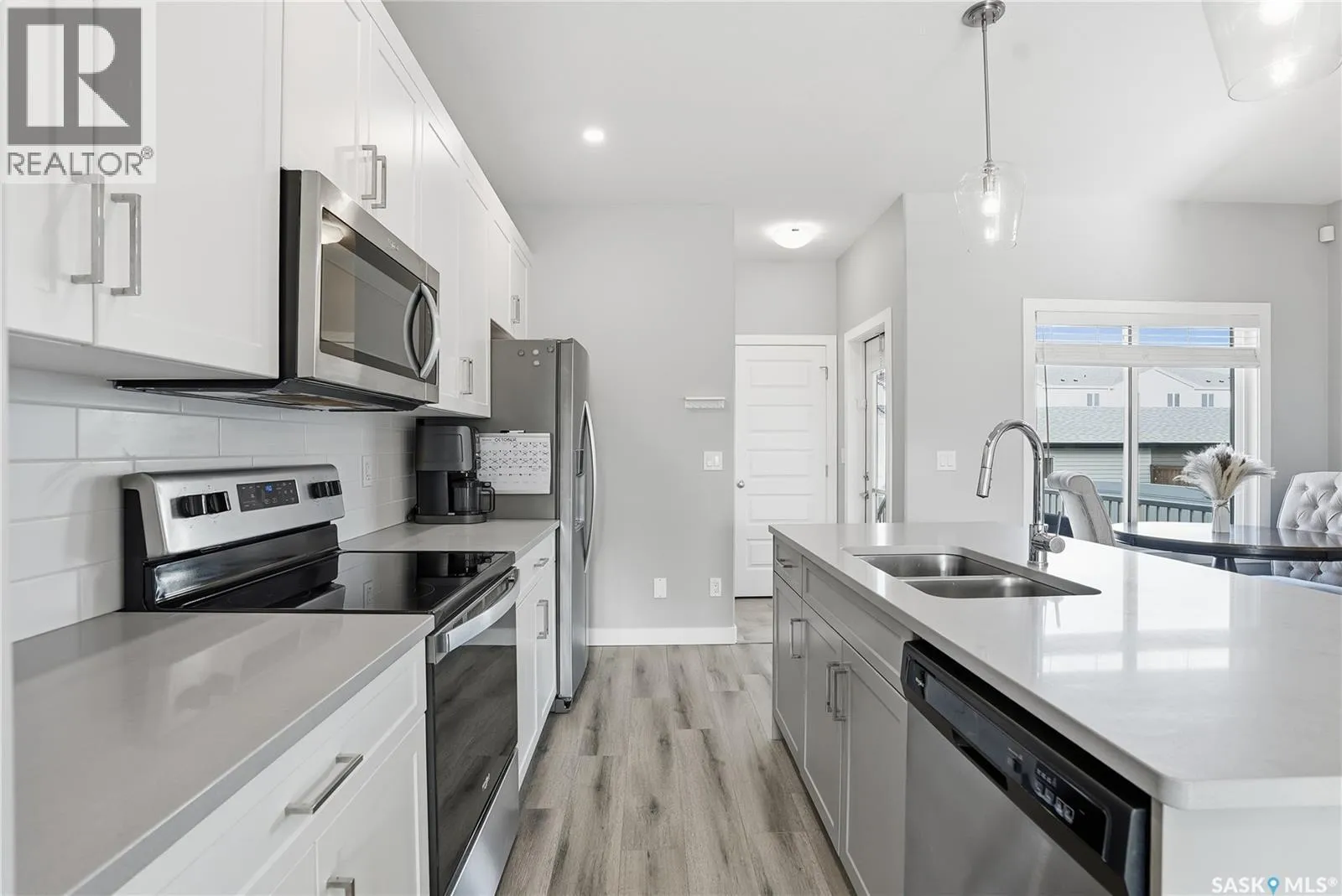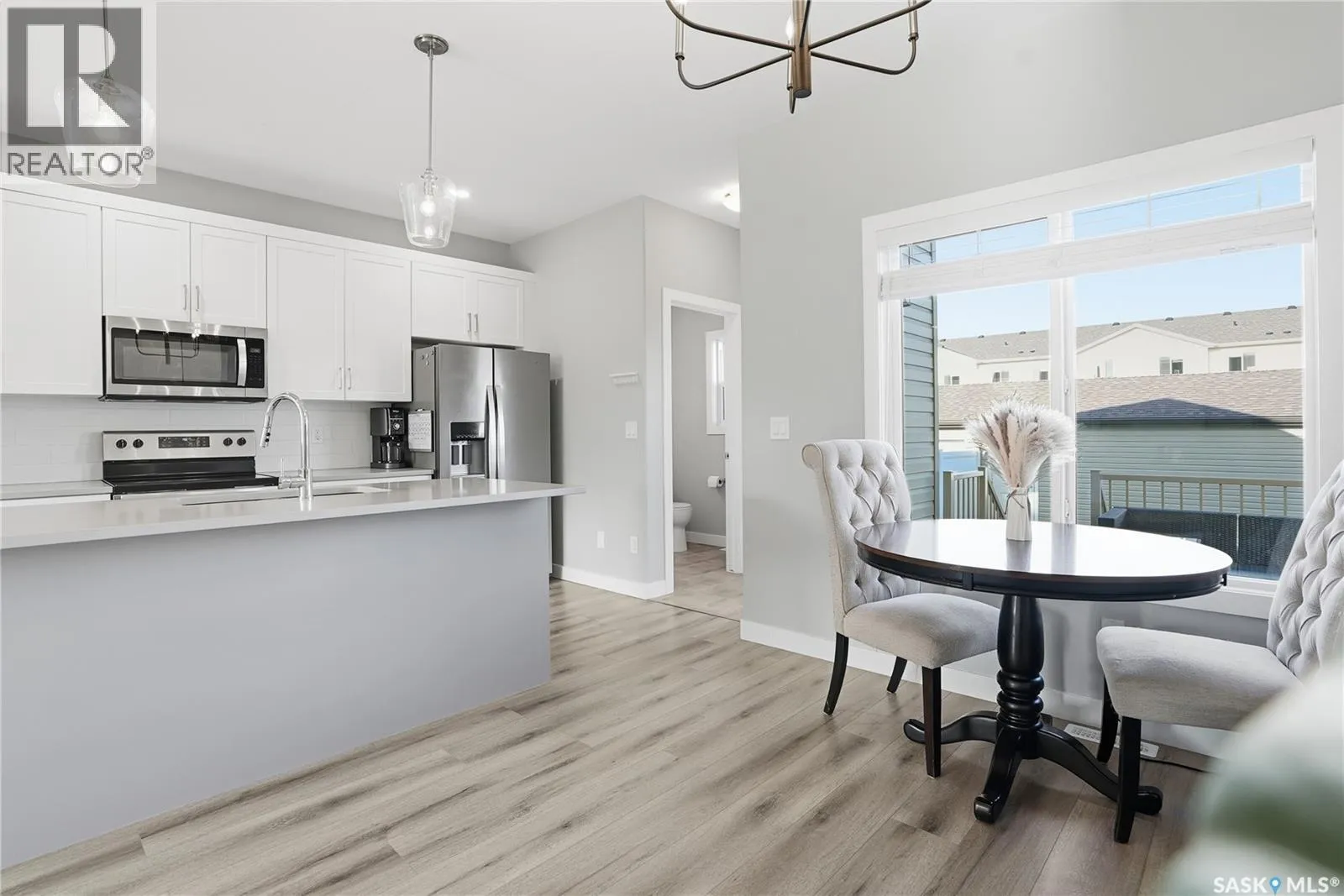 Modern construction without the wait! This 2 Story Semi-detached home hits the mark with a fantastic layout. The main floor feels bright and spacious with 9â ceilings and south facing windows. An electric fireplace with tile feature anchors the living room with plenty of space for hosting friends or cozy movie nights. In the kitchen you will find a clean design with modern cabinetry, quartz counters, and an island that is perfect for entertaining. A full dining space is adjacent to allow for a large table and has included organizers for extra storage. Upstairs you will find a large primary bedroom with walk-in closet and an ensuite that is sure to get your attention. Not only is this bathroom a fair size but you have a dual vanity, and an oversized shower with glass door and tile surround. Additionally on this floor there are 2 secondary bedrooms, a 4 piece bathroom, and a large dedicated laundry room that will make chores a breeze. Stepping to the backyard there is a rear entrance (with a 2pc bathroom and closet) and direct access to a deck space. Perfect for cooking up a storm on the BBQ or relaxing - this is your own private yard! A walk way leads you next to the double detached garage; a welcome haven for keeping your vehicles out of coming weather. The basement is open for development and provides even more value with a separate entrance that connects to the main floor. Other notable features include custom blinds, central a/c, and landscaped yard with underground sprinklers. Clean, modern, and turn-key! Donât hesitate to book a showing on this beautiful home, Call Today! (id:27476)