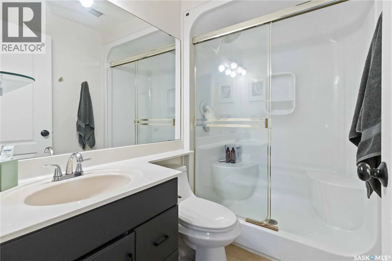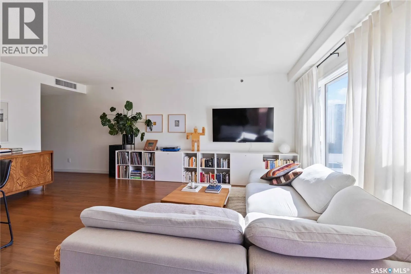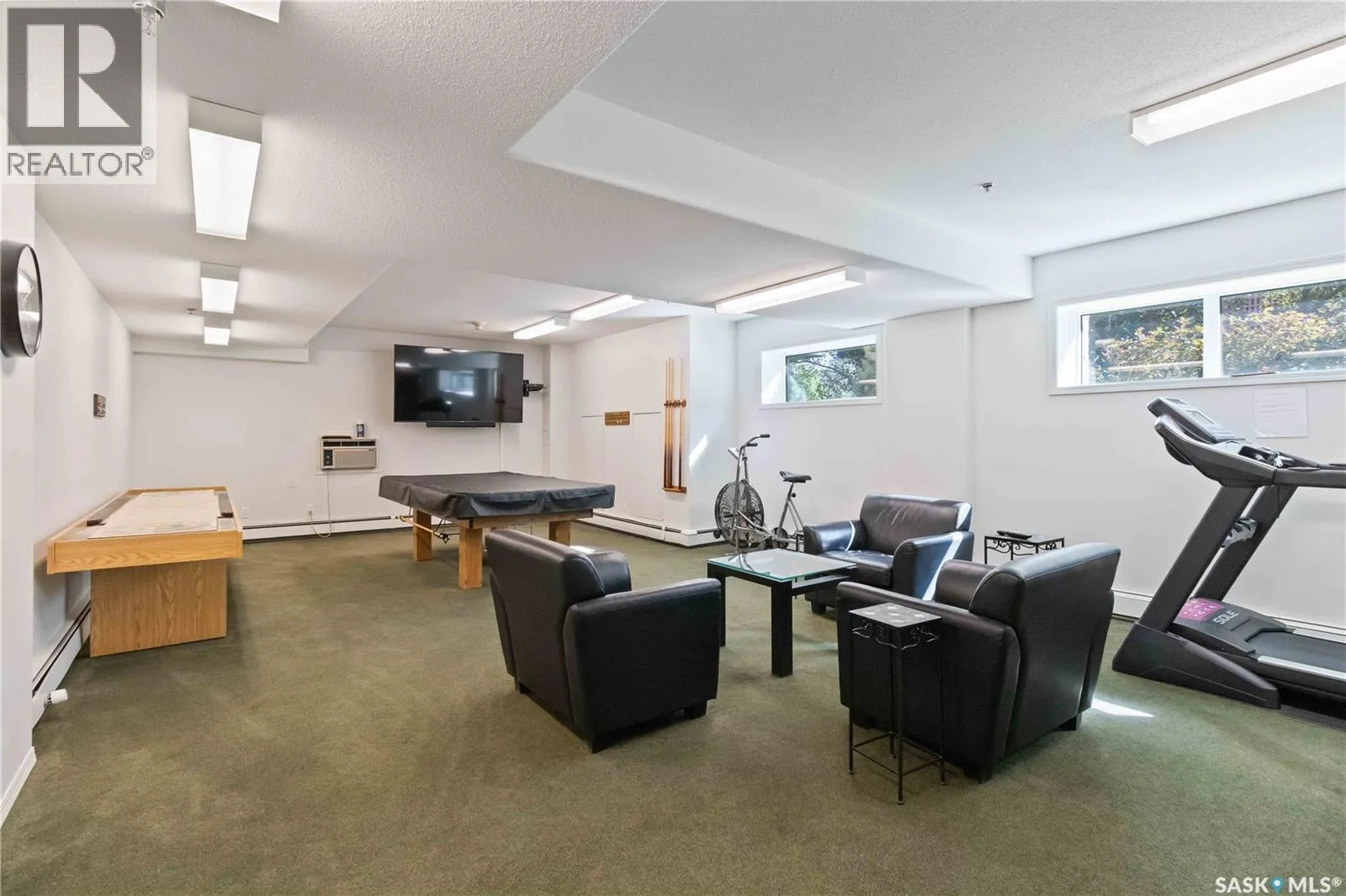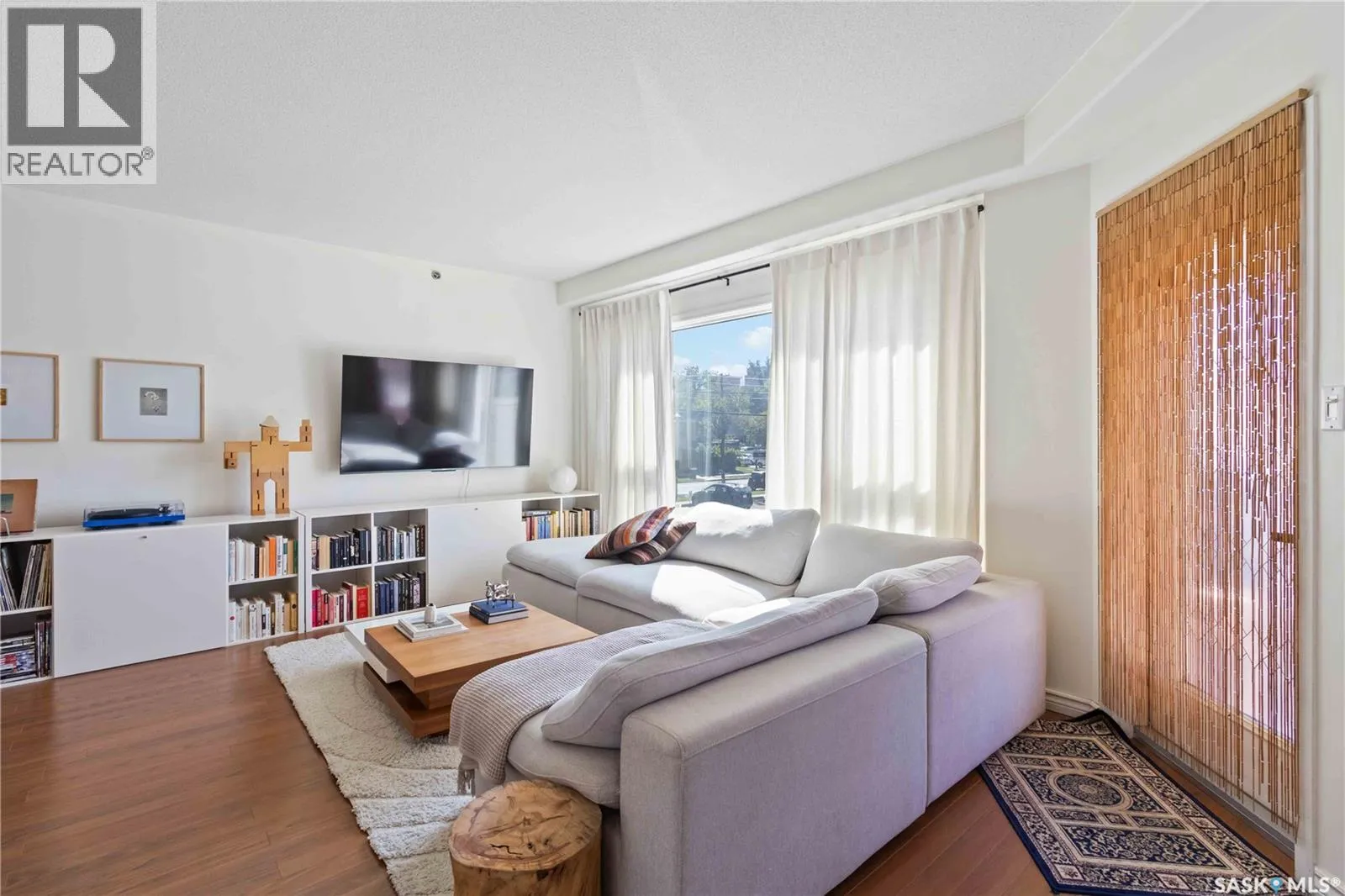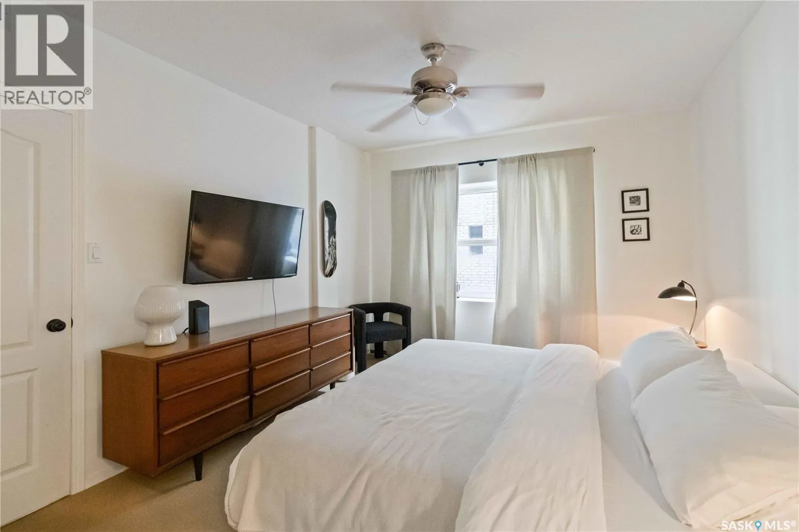 This condo is located on the first floor, with easy elevator access. Inside, youâre greeted by a bright and spacious entryway. The unit offers an open-concept living and kitchen area. The kitchen stands out with its quartz-topped island, modern Scandinavian-inspired cabinetry, tiled backsplash, sleek pot lighting, stainless steel appliances. Just off the dining space, youâll find a private west-facing balcony with a BBQ hookupâperfect for enjoying sunny afternoons and glowing evening sunsets. The living room is generously sized, featuring large windows that fill the space with natural light. The primary bedroom includes a full ensuite with a walk-in shower, while the second bedroom (currently used as an office) sits adjacent to the main bath with tub/shower combo. Additional highlights include in-suite laundry, central air conditioning, and the convenience of having the laundry room tucked away near the entry. (id:27476)