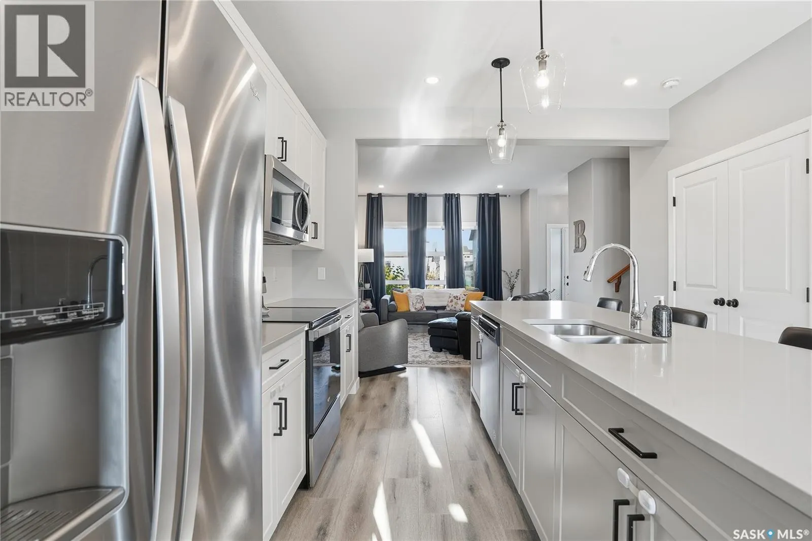 Welcome home to this beautiful 3-bedroom, 3-bath duplex in the sought-after community of Brighton! Designed with families in mind, this home offers modern comfort, functional living spaces, and everyday convenience. The open-concept main floor features a bright living room with large windows, a stylish kitchen with quartz countertops, stainless steel appliances, and an island perfect for family meals or entertaining. A convenient 2-piece bathroom on the main floor adds extra functionality for busy family life. Upstairs, youâll find three spacious bedrooms including a generous primary suite with a walk-in closet and private ensuite, plus a 3-piece main bathroom and a versatile bonus roomâperfect for a kidsâ play area, home office, or family movie nights. Downstairs, the basement is insulated and awaits your development. There is a separate side entrance, for a potential future basement suite. Step outside to a large back deck thatâs perfect for summer barbecues, or relaxing after a long day. The insulated and heated garage keeps your vehicle warm in winter and provides extra storage or workspace year-round. Why buy new, when a bunch of "extra's" are already done for you, for less. Call your favorite Saskatoon Realtor today for a private viewing! As per the Sellerâs direction, all offers will be presented on 11/01/2025 3:00PM. (id:27476)