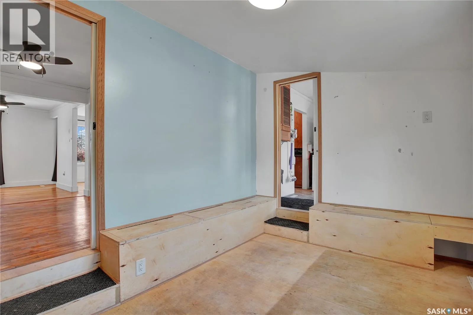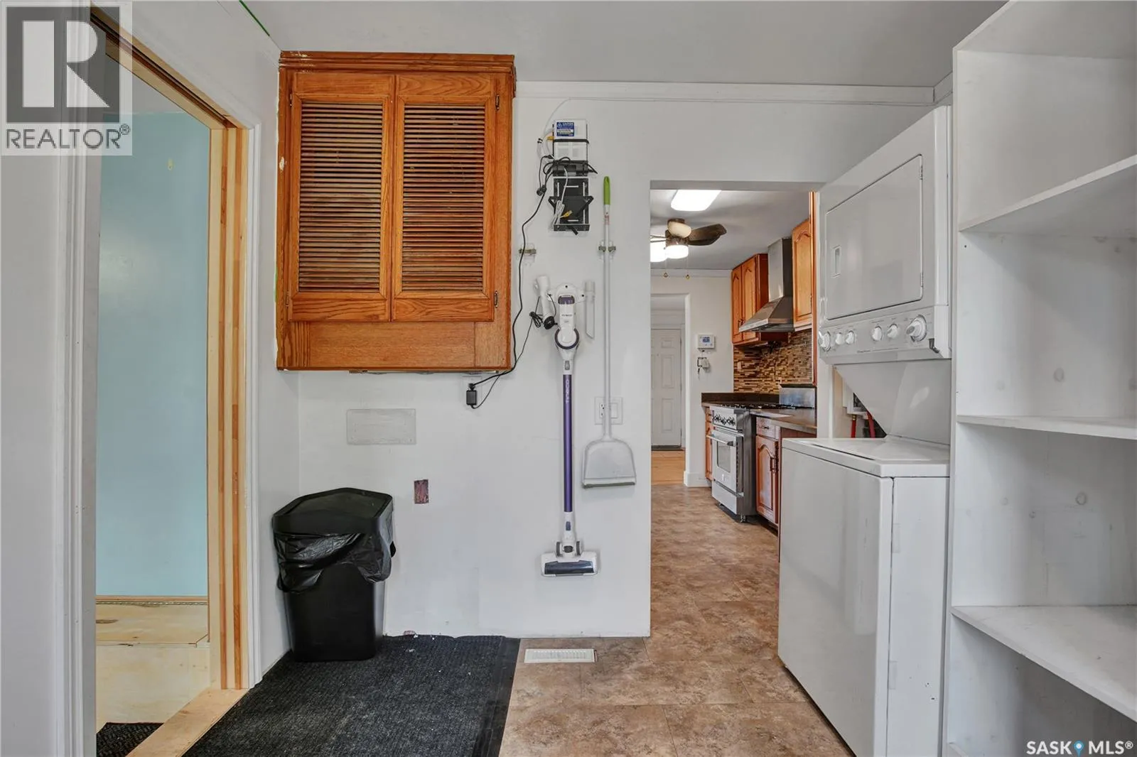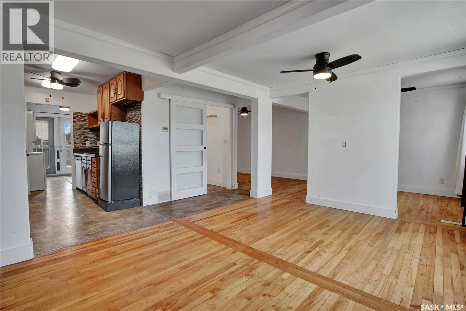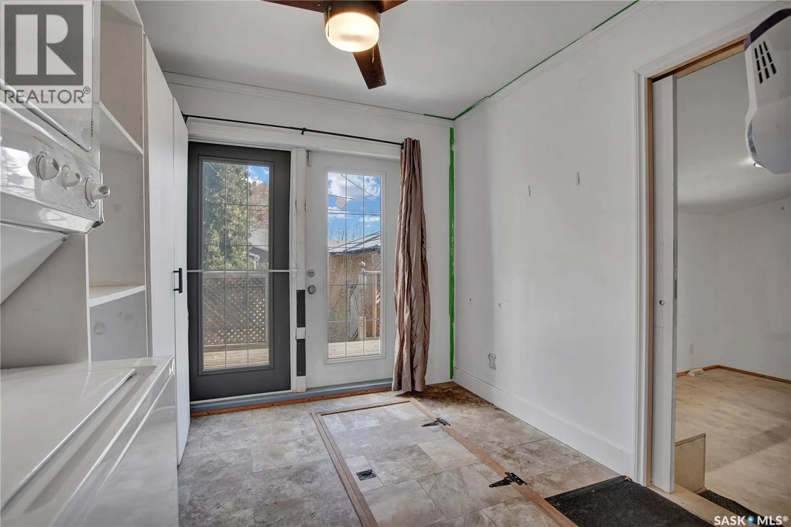 Welcome to the ultimate bachelor pad located on a quiet street in the mature King George! Enter a spacious living room with a view of the upgraded kitchen, and direct access to the oversized bedroom that could easily accommodate two. The bedroom leads to a sunken porch with direct access to the attached garage. From there you can enter the laundry/mudroom, which is loaded with countertop workspace, open shelving, and more upper/lower cabinetry. From there you can exit into the backyard or circle back to the kitchen. The kitchen has tall custom cabinetry, tile backsplash, a gas range, a black finish sink, and all stainless-steel appliances including a new fridge. The backyard is massive due to the large lot size. It boasts an antique commercial-style meat smoker, oversized deck, patio, shed, gazebo, flower beds, cement walking paths, and mature trees - perfect for BBQâs! The garage is fully finished, extra deep, and heated with a brand-new garage door. The bathroom was also fully upgraded in the last five years. The house is located with quick access to 11th Street for a Circle Drive exit. Other recent upgrades include paint, flooring, and doors. Book your showing to own your own domain! (id:27476)