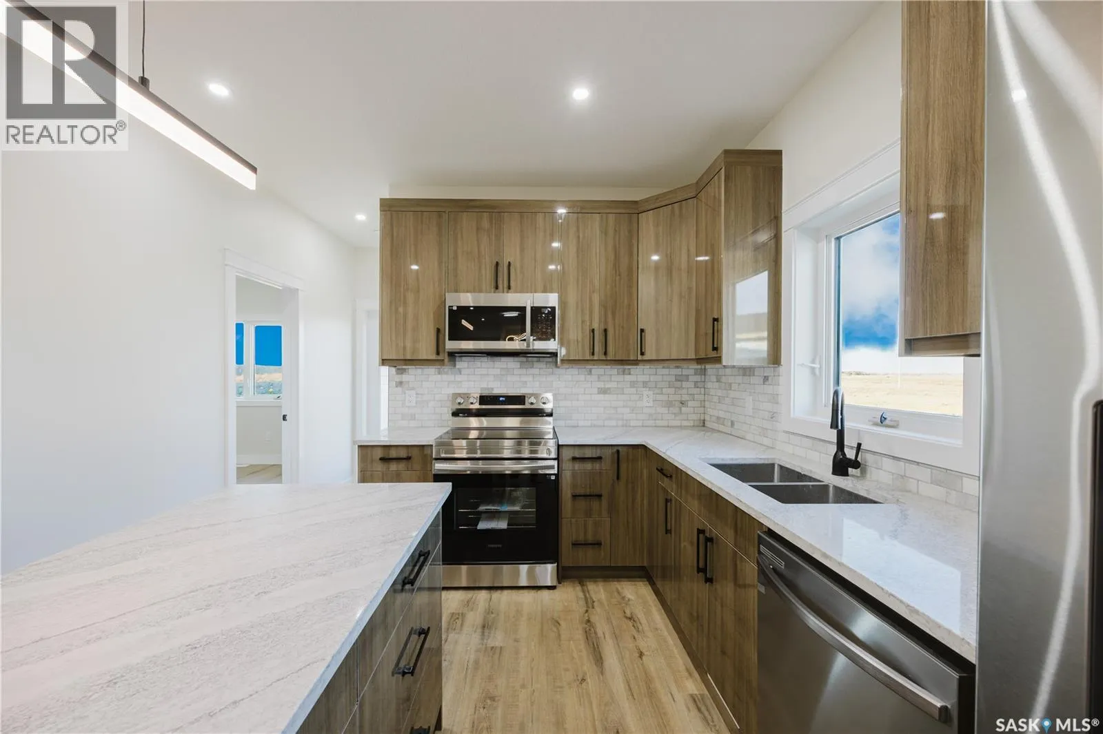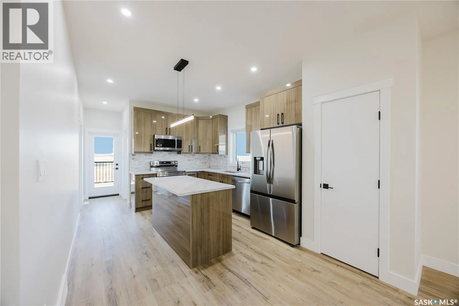 Welcome to 438 Stromberg Crescent in Kensington, perfectly situated in a desirable neighborhood across from green space and just steps away from malls, parks, and other amenities. This inviting property features an open-concept main floor, ideal for entertaining and everyday living. A cozy electric fireplace adds warmth and charm to the living space. The primary bedroom is a quiet retreat with large, east-facing windows that fill the room with natural morning light, a spacious ensuite bathroom, and a walk-in closet. An additional nook on the main floor offers flexible space for an office or extra storage. The back deck, overlooking the horizon, is perfect for afternoon relaxation or a BBQ. The upper level includes three generously sized bedrooms and two full bathrooms. The basement offers fantastic potential for a rental or extended family living, featuring three bedrooms, two living rooms, and two full bathrooms. A double-car garage provides ample parking. With abundant space and flexibility, this home is designed to meet various needs. Don't miss out on the chance to own this versatile property in a welcoming community! Please call for a private viewing. Realtors are welcome. N.B. Pictures are taken from similar property (id:27476)