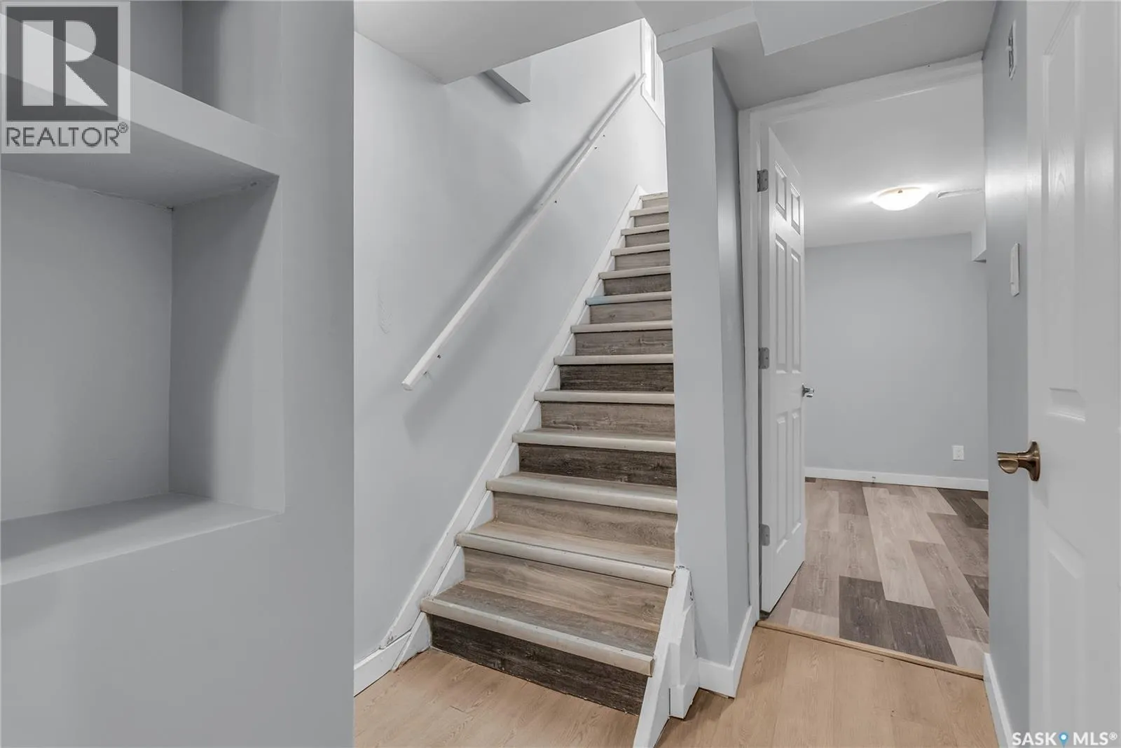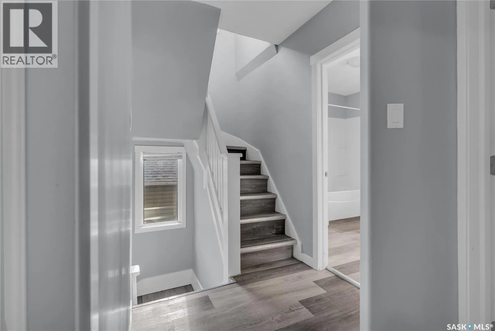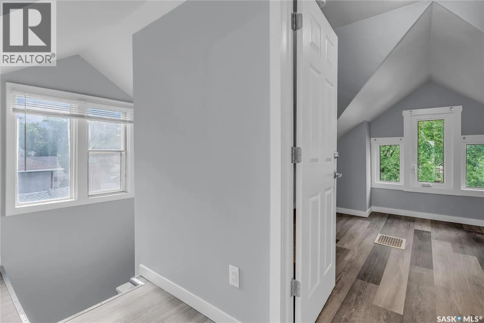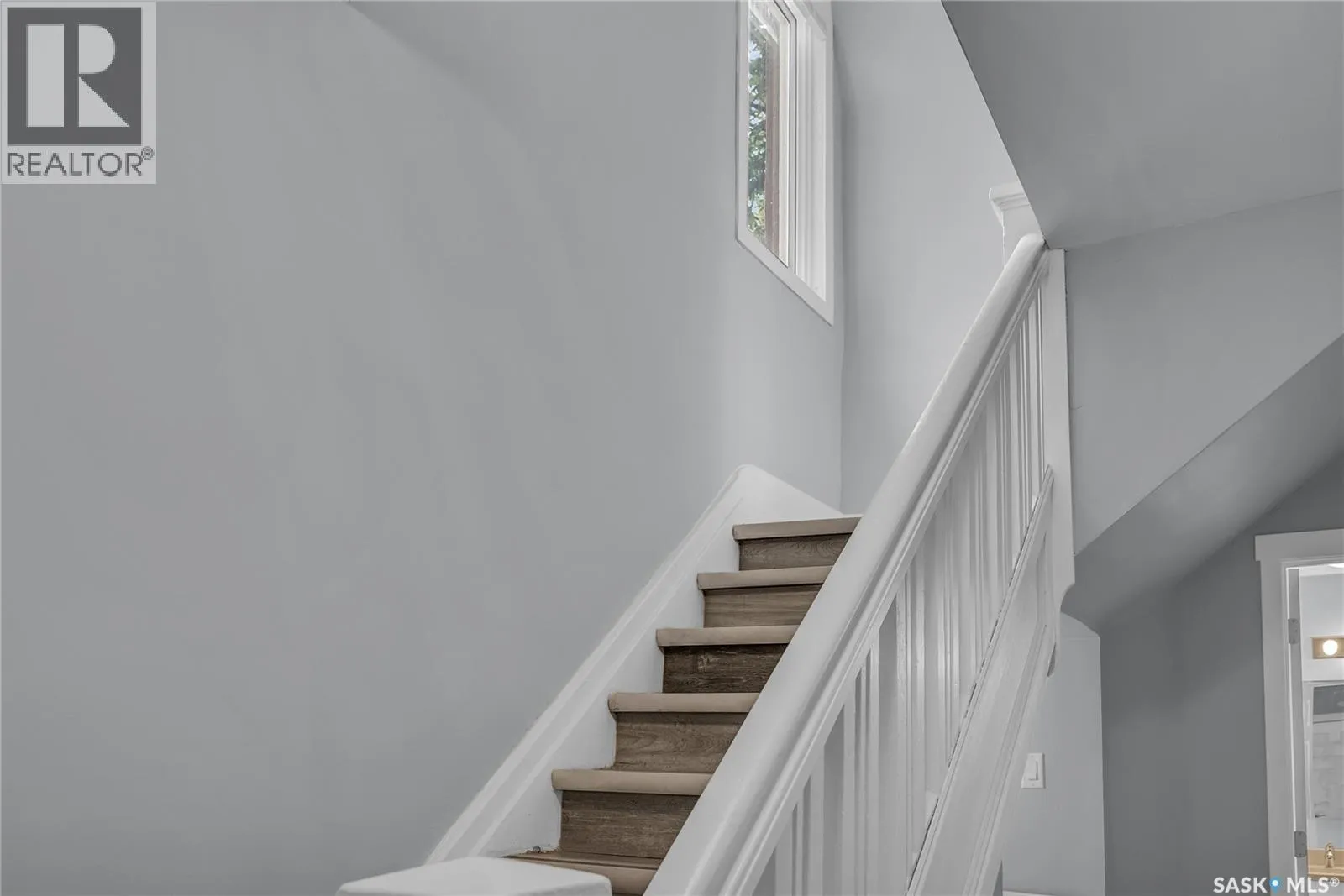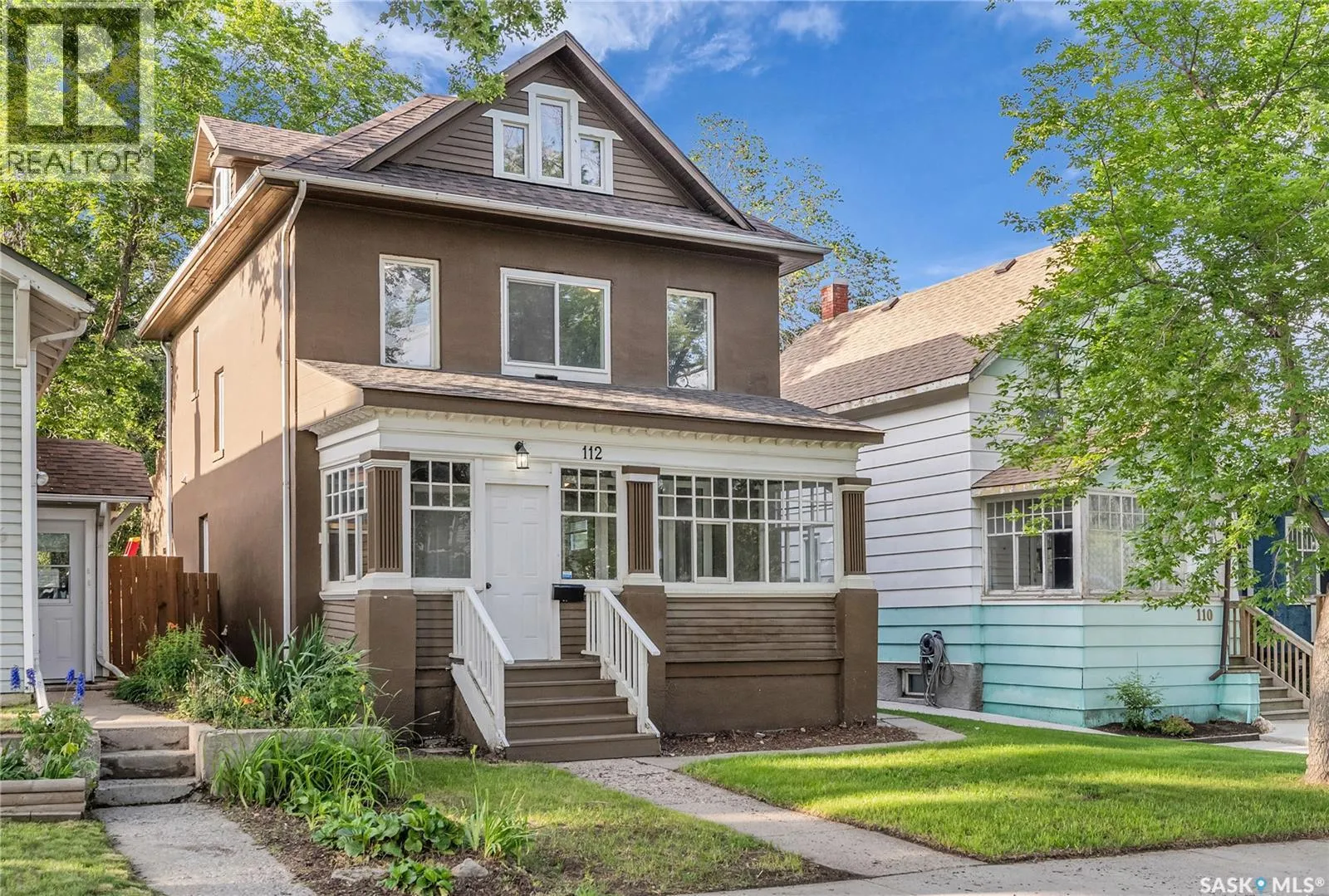 Welcome home to 112 27th Street West located in the beautiful community of Caswell Hill. This classic 2 & 1/2 storey home features exceptional value with 6 bedrooms and 3 bathrooms. The front door welcomes you into a generous mudroom that has south exposure for that beautiful sunlight. This main floor opens up into an expansive layout with tall ceilings. The living room connects well with the dining space and provides the perfect setting for hosting! The kitchen is located further to the back with a window over looking the yard and deck access. A full 4 piece bathroom is in the front hallway as well as main floor laundry. Step up to the 2nd floor to find 2 large bedrooms. There is potential to split the largest room into 2 with an impressive 21 x 12 dimension! A 4 piece bathroom is located here with dual vanity and shower/tub. On the 3rd floor you will find 2 large bedrooms with that half storey charm! The basement is accessed from a separate entrance and features a suite with 2 large bedrooms, a family room, 4 piece bathroom, and a galley kitchen with laundry adjacent. The yard is private and fenced with convenient access to a rear parking space and detached garage. Other notable options include high efficient furnace and water heater, a connection for adding central A/C (visible on the roof), new paint, and updated flooring throughout most of the home. Conveniently located with walking distance to downtown and Sask Polytechnic - whether you are looking for a home with a mortgage helper or an investment opportunity, this could be it! Call today to book your own showing (id:27476)
