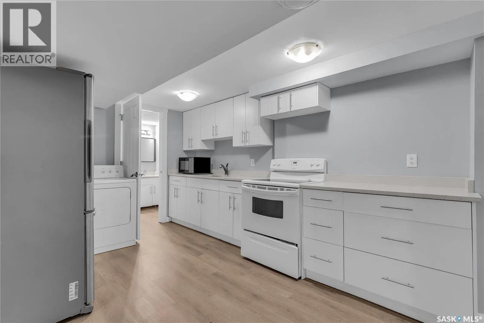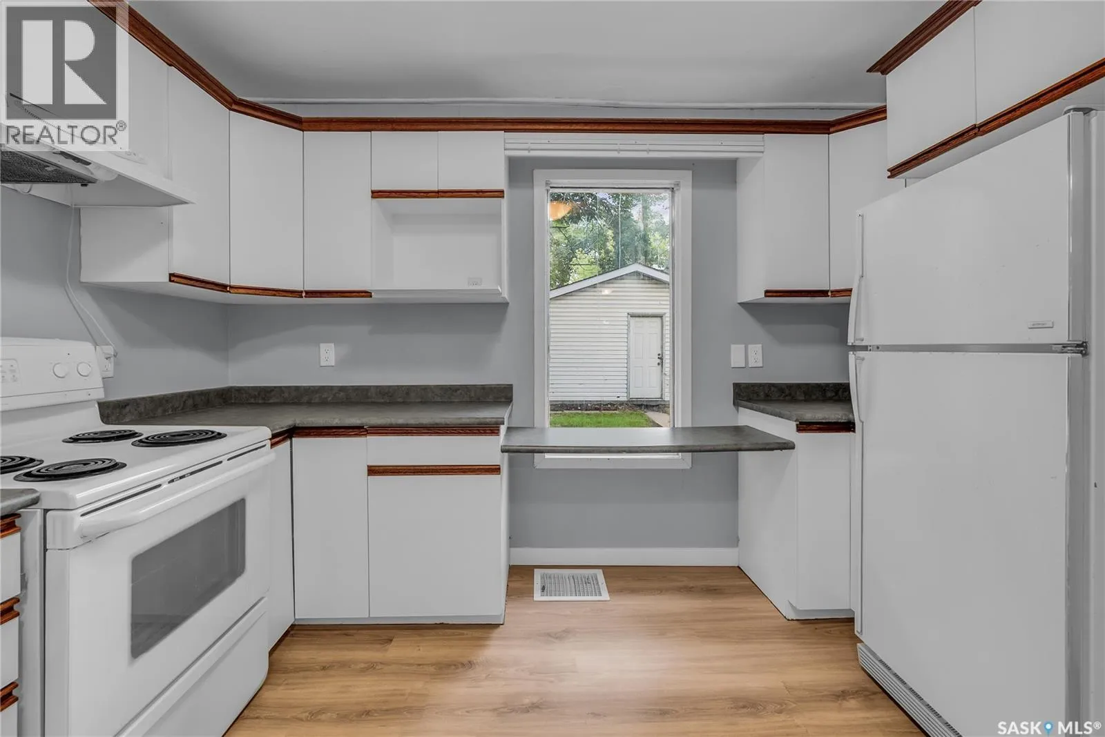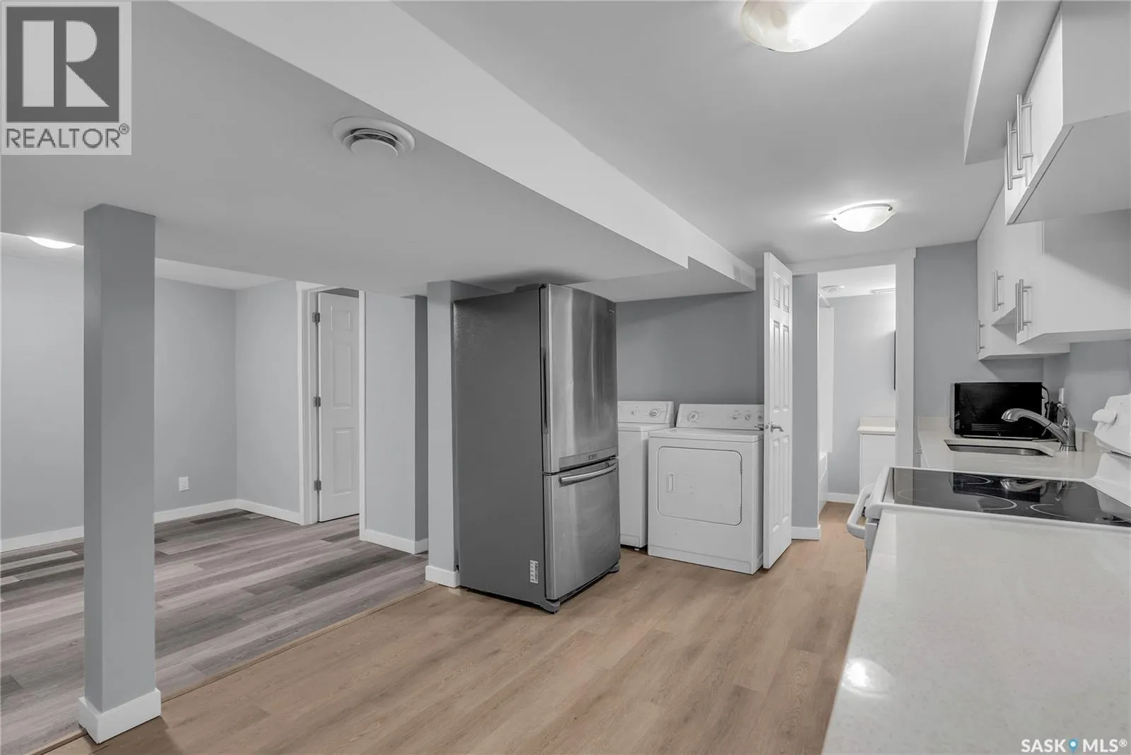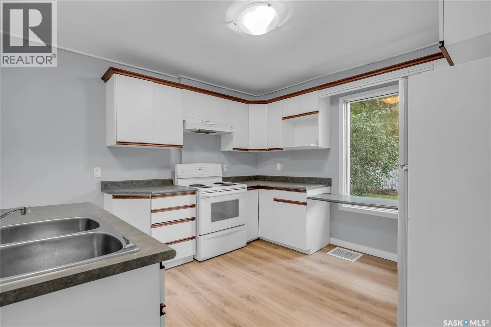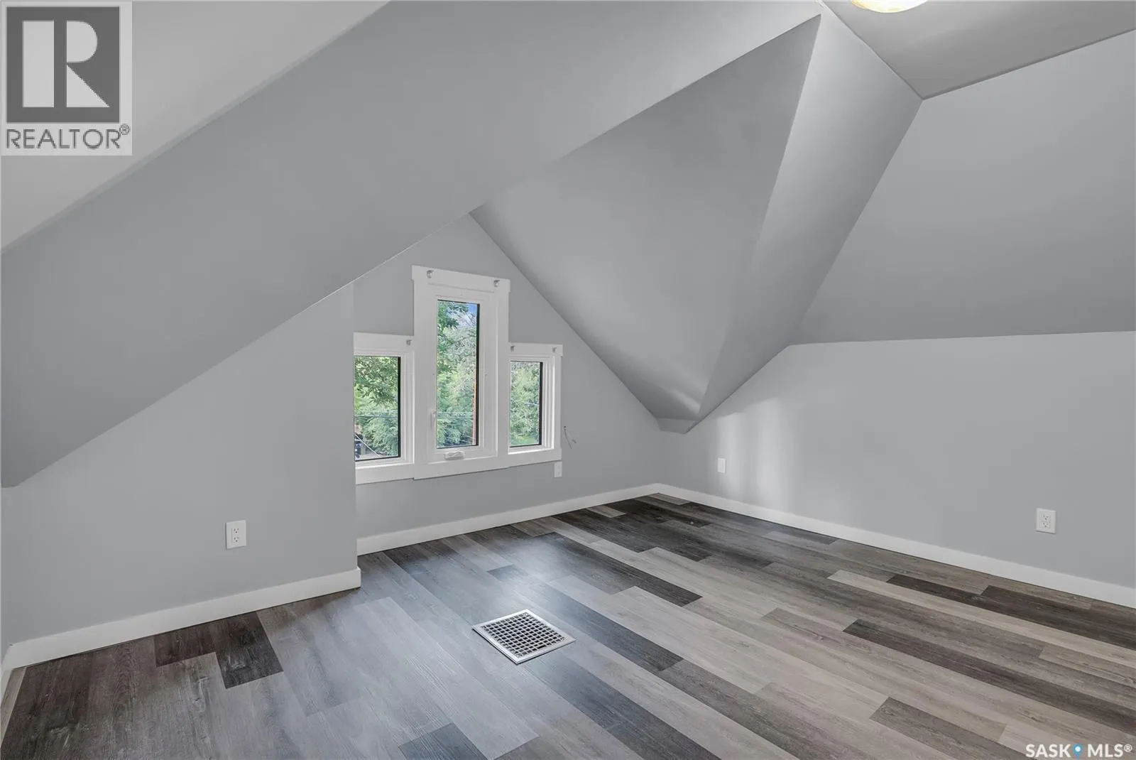 Welcome home to 112 27th Street West located in the beautiful community of Caswell Hill. This classic 2 & 1/2 storey home features exceptional value with 6 bedrooms and 3 bathrooms. The front door welcomes you into a generous mudroom that has south exposure for that beautiful sunlight. This main floor opens up into an expansive layout with tall ceilings. The living room connects well with the dining space and provides the perfect setting for hosting! The kitchen is located further to the back with a window over looking the yard and deck access. A full 4 piece bathroom is in the front hallway as well as main floor laundry. Step up to the 2nd floor to find 2 large bedrooms. There is potential to split the largest room into 2 with an impressive 21 x 12 dimension! A 4 piece bathroom is located here with dual vanity and shower/tub. On the 3rd floor you will find 2 large bedrooms with that half storey charm! The basement is accessed from a separate entrance and features a suite with 2 large bedrooms, a family room, 4 piece bathroom, and a galley kitchen with laundry adjacent. The yard is private and fenced with convenient access to a rear parking space and detached garage. Other notable options include high efficient furnace and water heater, a connection for adding central A/C (visible on the roof), new paint, and updated flooring throughout most of the home. Conveniently located with walking distance to downtown and Sask Polytechnic - whether you are looking for a home with a mortgage helper or an investment opportunity, this could be it! Call today to book your own showing (id:27476)