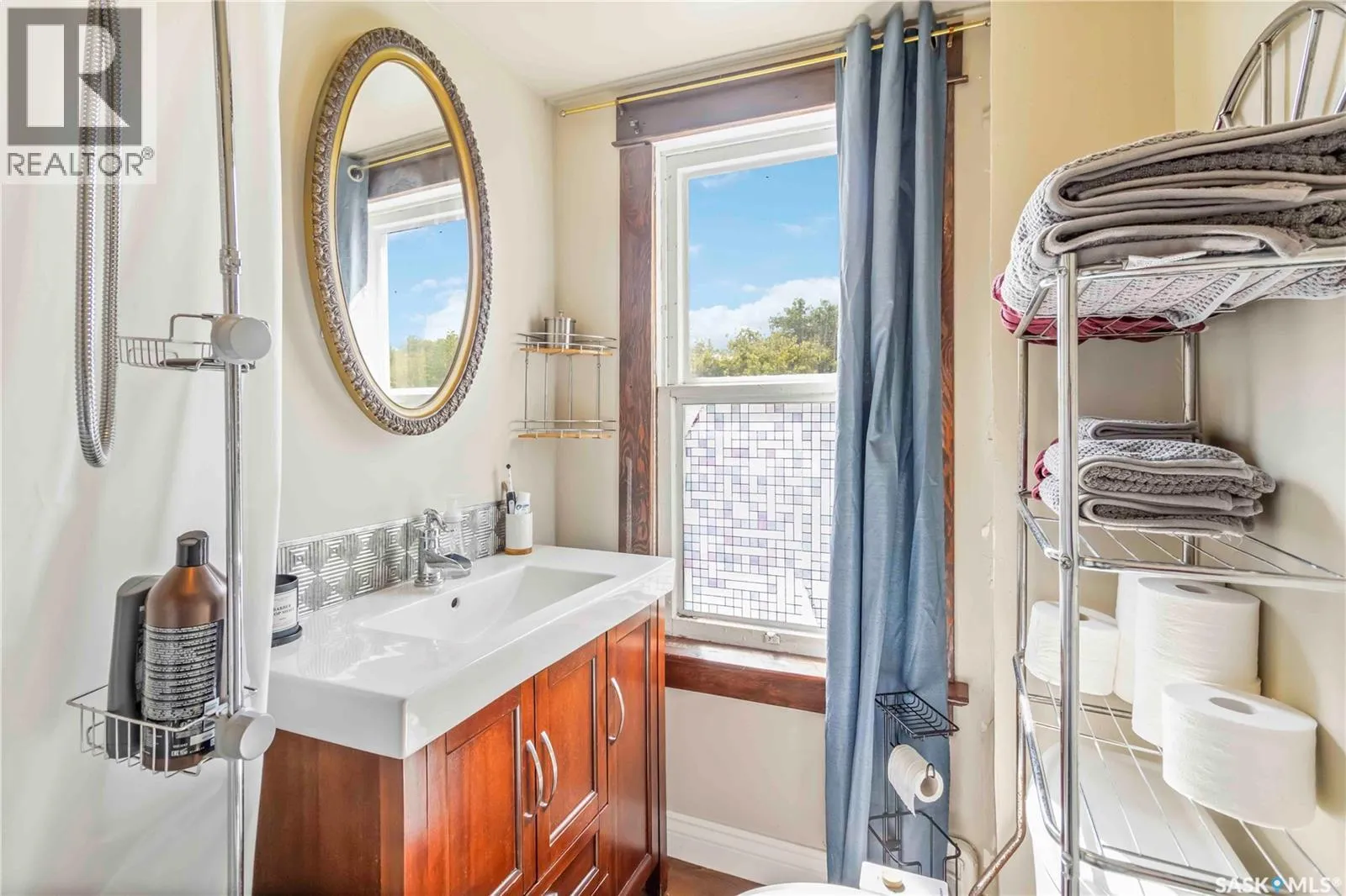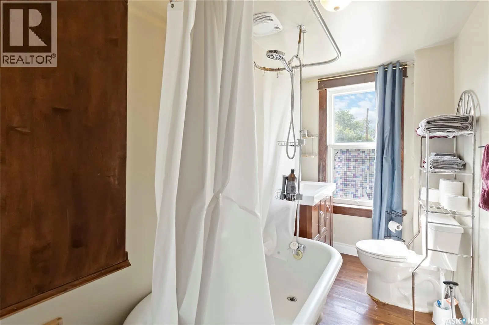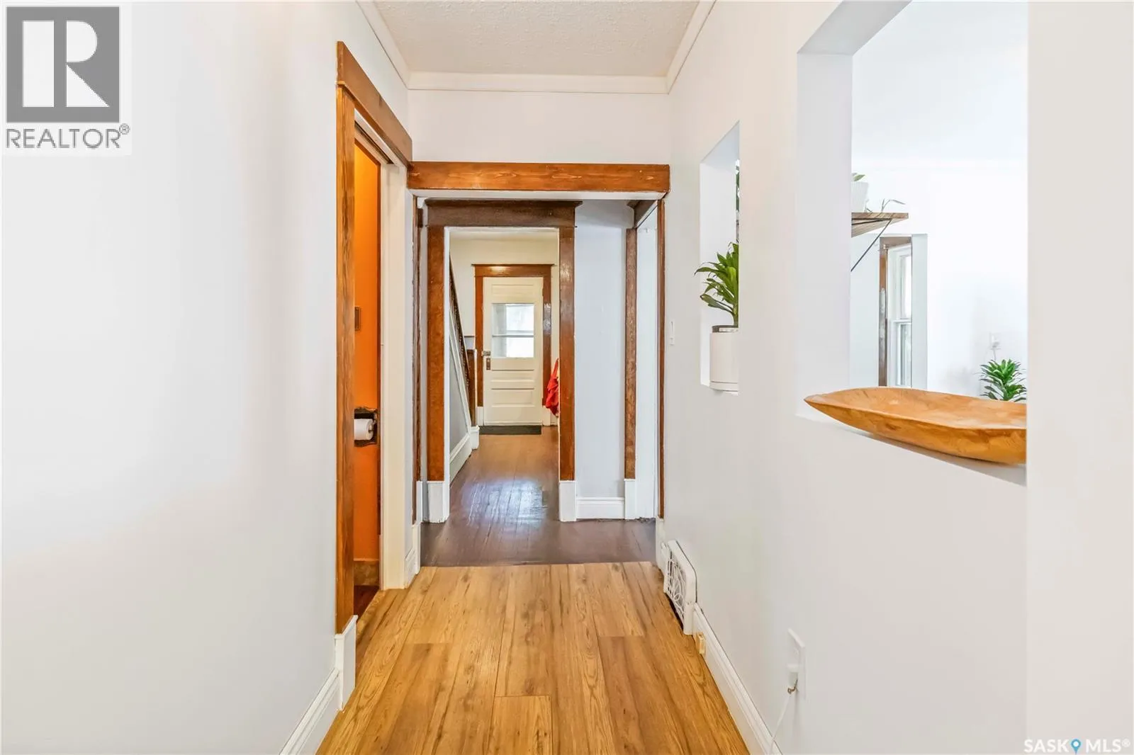 Charming Character Home Steps from Victoria Park and the River! Welcome to 615 Avenue G South, a 1,260 sq. ft. two-storey home full of warmth, character, and charmâideally located just steps from the scenic Victoria Park and the beautiful South Saskatchewan Riverbank. Step onto the spacious front veranda, perfect for relaxing on warm summer evenings, and enter a home that blends timeless character with everyday functionality. Inside, youâll find original wood floors, a classic staircase, and period wood railings that showcase the homeâs historic charm. The main floor offers a thoughtful layout with a large family room, a formal dining area, and a cozy sitting area, providing plenty of space for entertaining or quiet evenings at home. A convenient 3-piece bathroom and a well-appointed kitchen with ample cupboard and counter space, along with updated flooring, complete the main level. A rear mudroom-style porch leads into the lush backyard. Upstairs features four spacious bedroomsâa rare find in this style of homeâalong with a full 4-piece bathroom, ideal for growing families or guests. Step outside to enjoy a beautifully landscaped backyard, perfect for summer gatherings, and take advantage of the double detached garage for secure parking and extra storage. With its unbeatable location near the river, walking trails, and parks, this home is a must-see for anyone seeking the best of Saskatoon living. (id:27476)