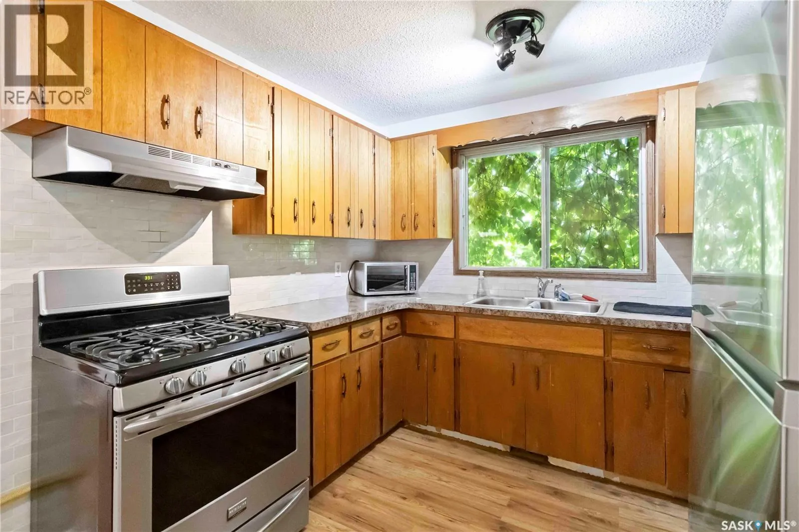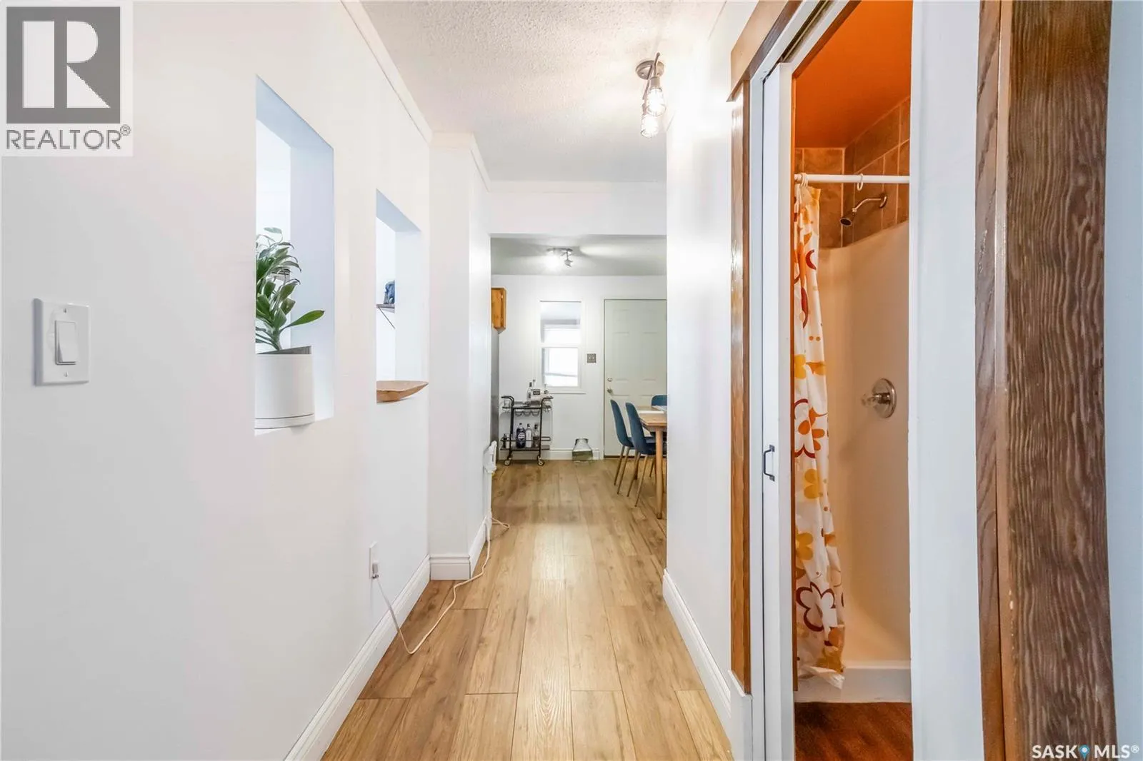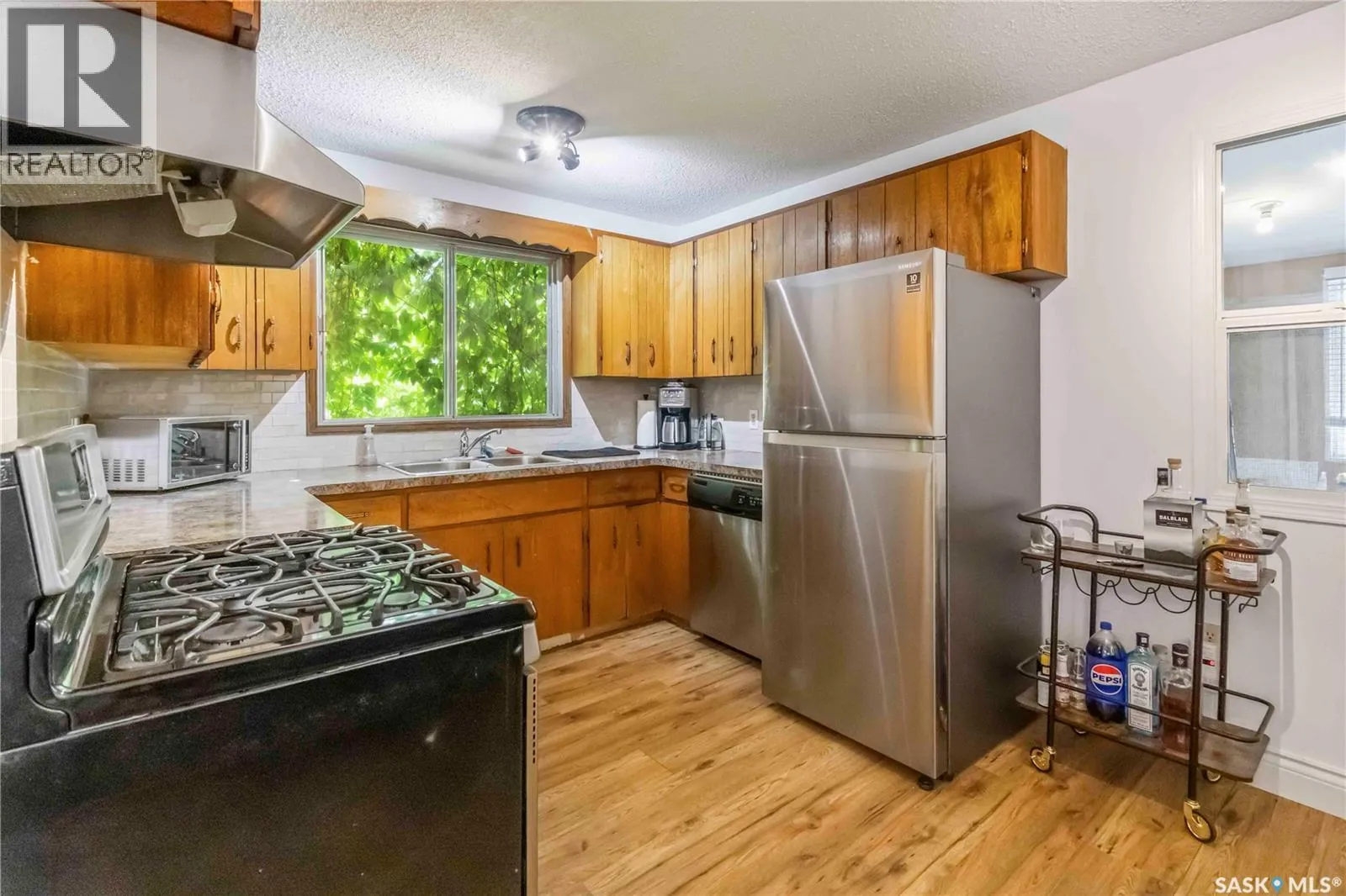 Charming Character Home Steps from Victoria Park and the River! Welcome to 615 Avenue G South, a 1,260 sq. ft. two-storey home full of warmth, character, and charmâideally located just steps from the scenic Victoria Park and the beautiful South Saskatchewan Riverbank. Step onto the spacious front veranda, perfect for relaxing on warm summer evenings, and enter a home that blends timeless character with everyday functionality. Inside, youâll find original wood floors, a classic staircase, and period wood railings that showcase the homeâs historic charm. The main floor offers a thoughtful layout with a large family room, a formal dining area, and a cozy sitting area, providing plenty of space for entertaining or quiet evenings at home. A convenient 3-piece bathroom and a well-appointed kitchen with ample cupboard and counter space, along with updated flooring, complete the main level. A rear mudroom-style porch leads into the lush backyard. Upstairs features four spacious bedroomsâa rare find in this style of homeâalong with a full 4-piece bathroom, ideal for growing families or guests. Step outside to enjoy a beautifully landscaped backyard, perfect for summer gatherings, and take advantage of the double detached garage for secure parking and extra storage. With its unbeatable location near the river, walking trails, and parks, this home is a must-see for anyone seeking the best of Saskatoon living. (id:27476)