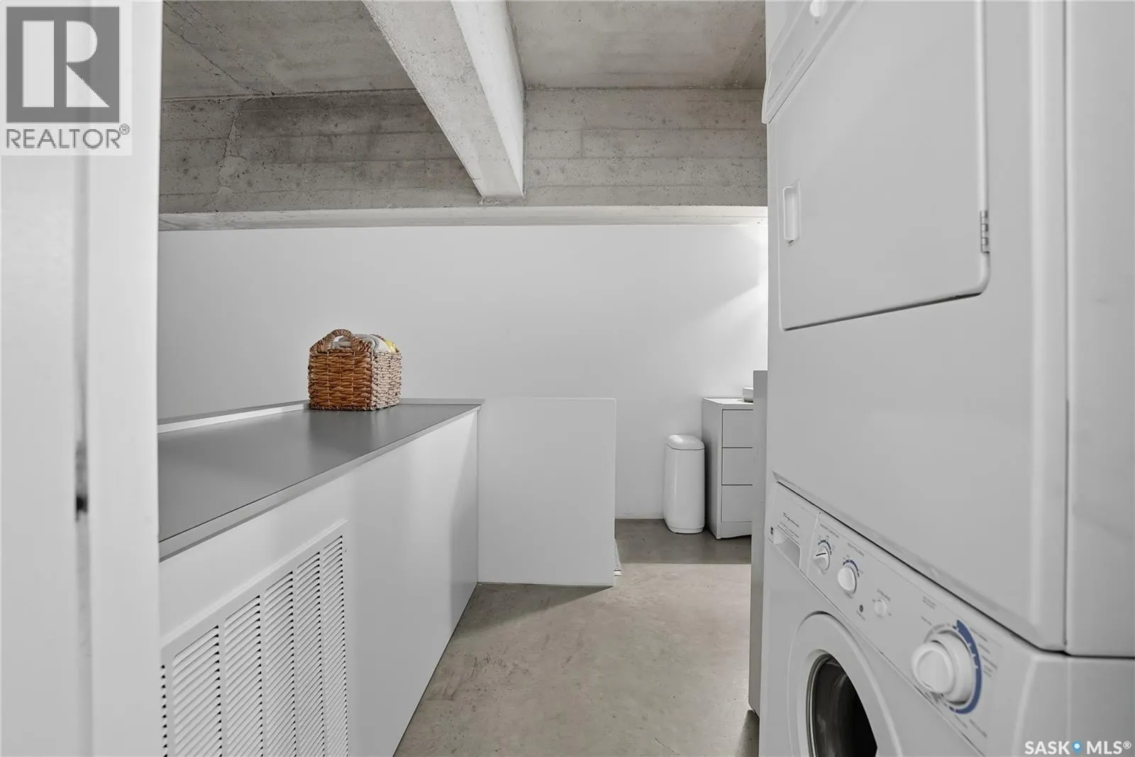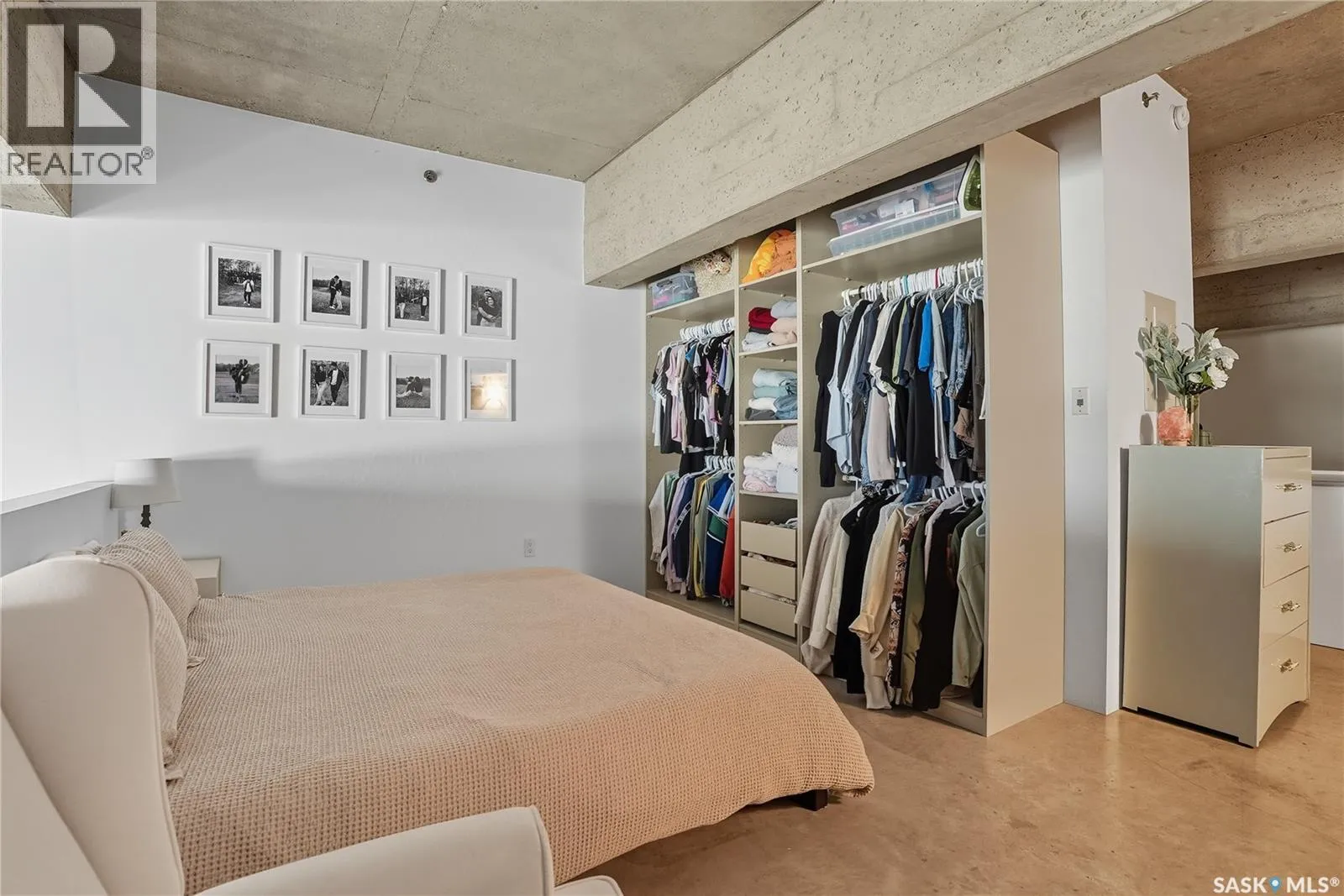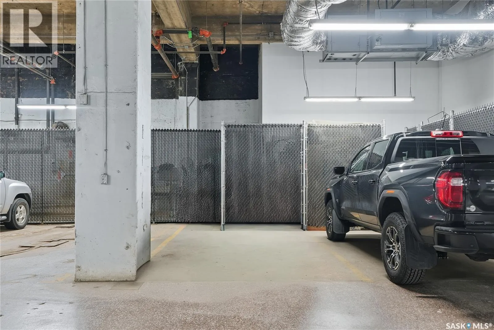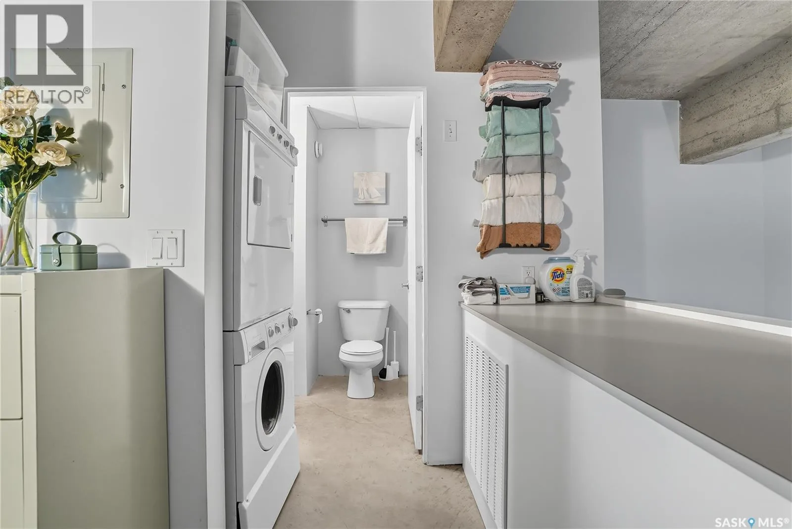 Welcome to this stunning East-facing loft located in the heart of Saskatoon's Central Business District. With 1,100 square feet of free-flowing living space, this 1-bedroom, 1.5-bath unit combines industrial charm with modern finishes, offering the perfect balance of comfort, style, and urban convenience. Soaring ceilings and a large window floods the space with natural light, enhancing the airy, open-concept layout. The kitchen has been beautifully upgraded with new quartz countertops and an oversized islandâideal for both entertaining and everyday living. The spacious living and dining areas flow effortlessly, creating a versatile space for relaxing or hosting. The large bedroom features a 4-piece ensuite, while a separate half-bath adds convenience for guests. Located directly across from the buildings fitness centre and rooftop terrace access, this unit offers unmatched access to some of the buildingâs best amenities. The building itself is a standout in downtown living, with a modern lobby, rooftop terrace complete with a pergola-covered BBQ area, fitness centre, elevator, and heated underground parking. Live just steps from some of Saskatoon's best restaurants, coffee shops, shopping, nightlife, and the riverbank. Whether you're a professional looking for a stylish downtown home or an investor seeking a high-demand location, this loft offers exceptional value and a lifestyle thatâs hard to beat. (id:27476)