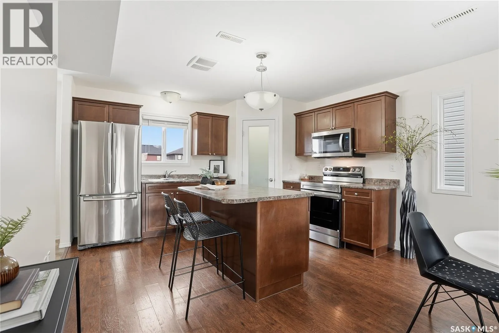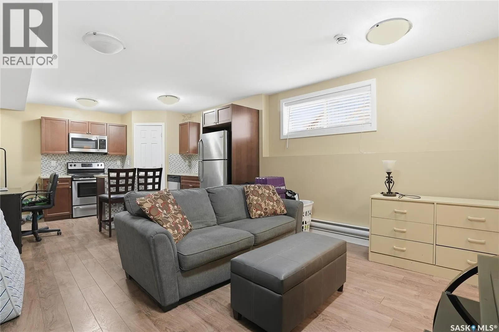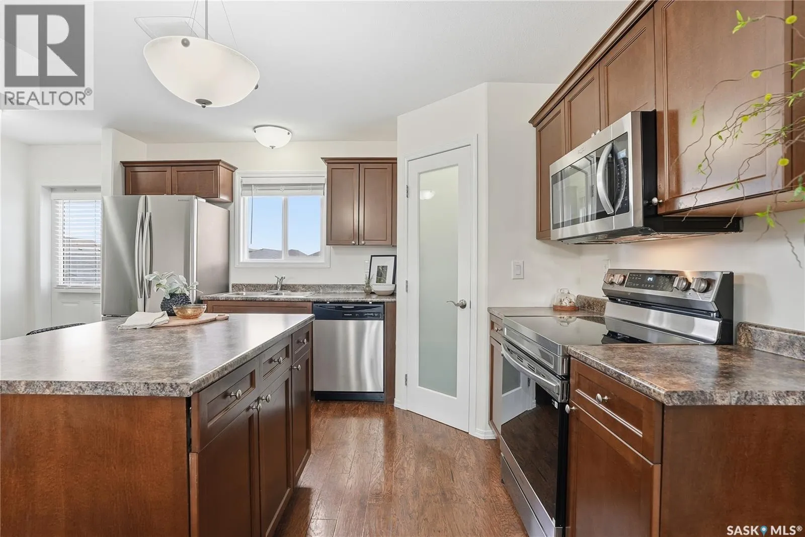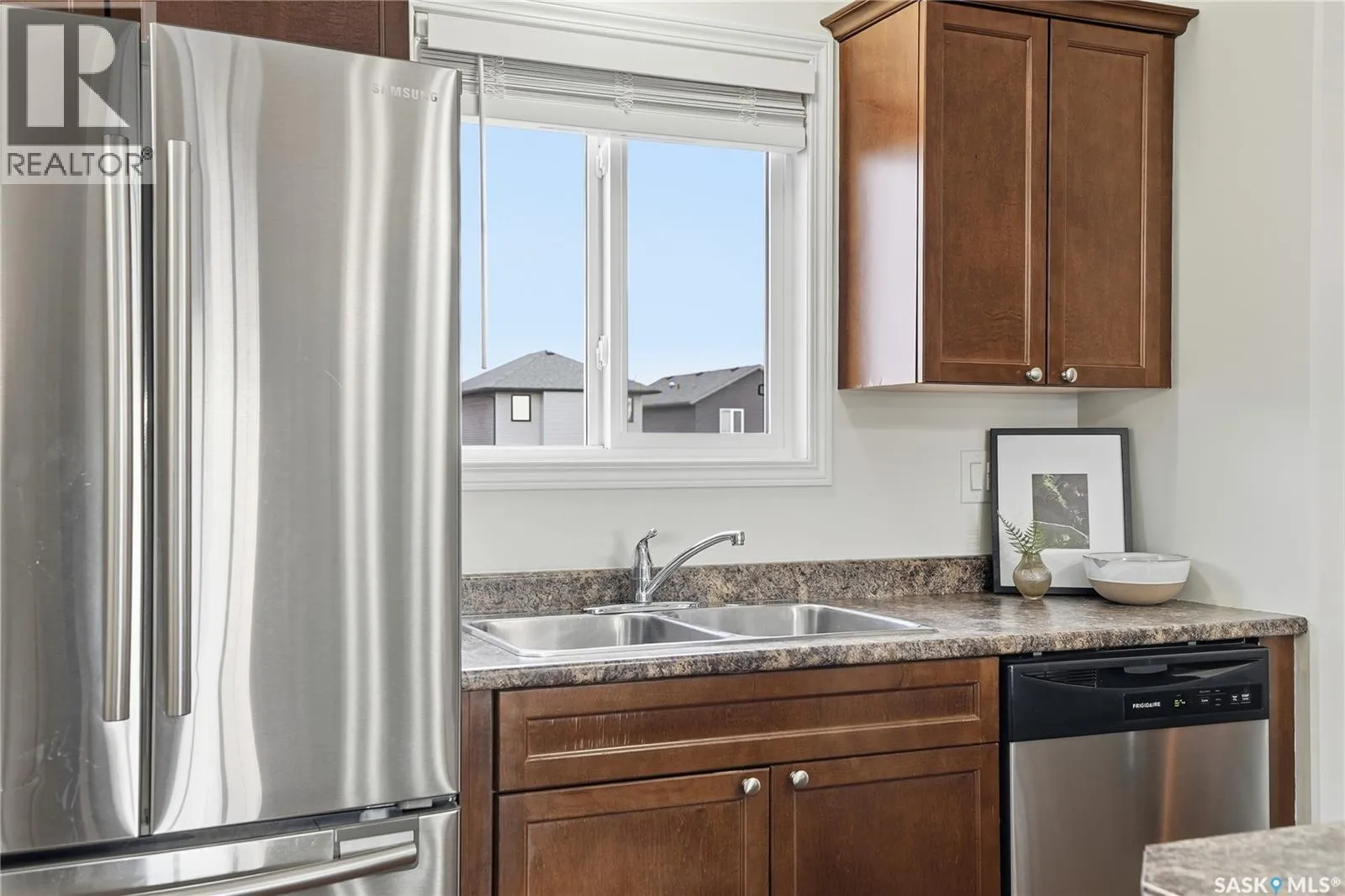 This beautifully maintained two-storey home offers an inviting blend of comfort, functionality, and charm. South-facing, it enjoys an abundance of natural light throughout the day. Ideally situated just one block from two elementary schools, the property features a welcoming front veranda overlooking the school fieldsâan ideal spot to enjoy your morning coffee while watching your children walk to school. The main floor showcases a bright, open-concept layout where the living room flows seamlessly into the dining area and spacious kitchen. The kitchen offers ample cabinetry, generous counter space, and a large pantry, making it perfect for family living and entertaining. A convenient half bath and utility room complete this level. Upstairs, the primary bedroom includes a four-piece ensuite and a walk-in closet. Two additional bedrooms, a second four-piece bathroom, and a laundry area provide excellent functionality for family needs. The basement features a spacious, legal one-bedroom suite with its own laundry, offering income potential or private accommodation for extended family. A good-sized two-car detached garage adds to the homeâs practicality. Located close to multiple parks, walking paths, and a variety of amenities, this property combines everyday convenience with a welcoming neighborhood atmosphere. Recent updates include a brand-new stove, microwave hood fan, and dishwasher within the past year, all-new carpeting on the second floor and stairs, and fresh paint throughout the main and upper levels. (id:27476)