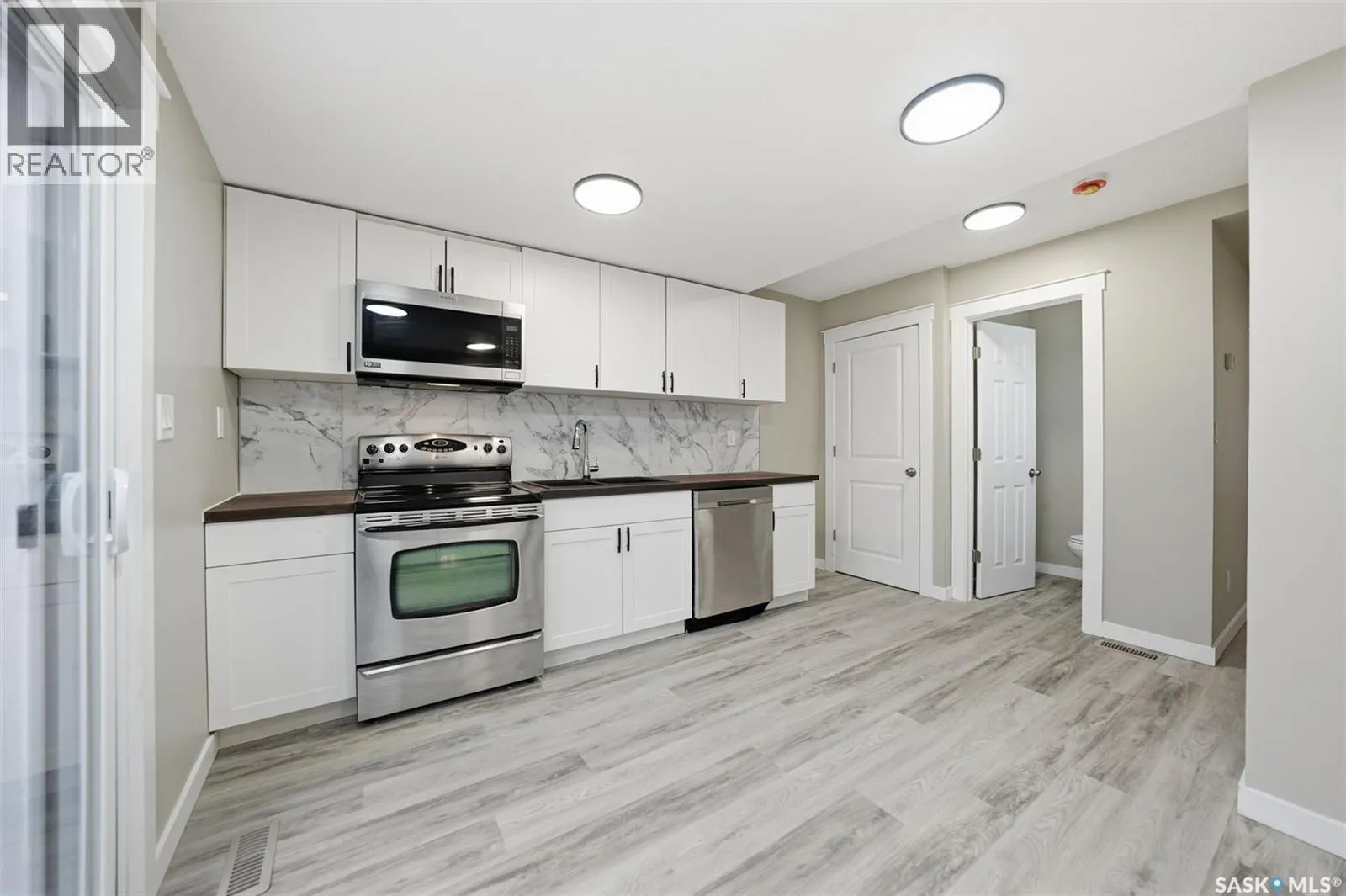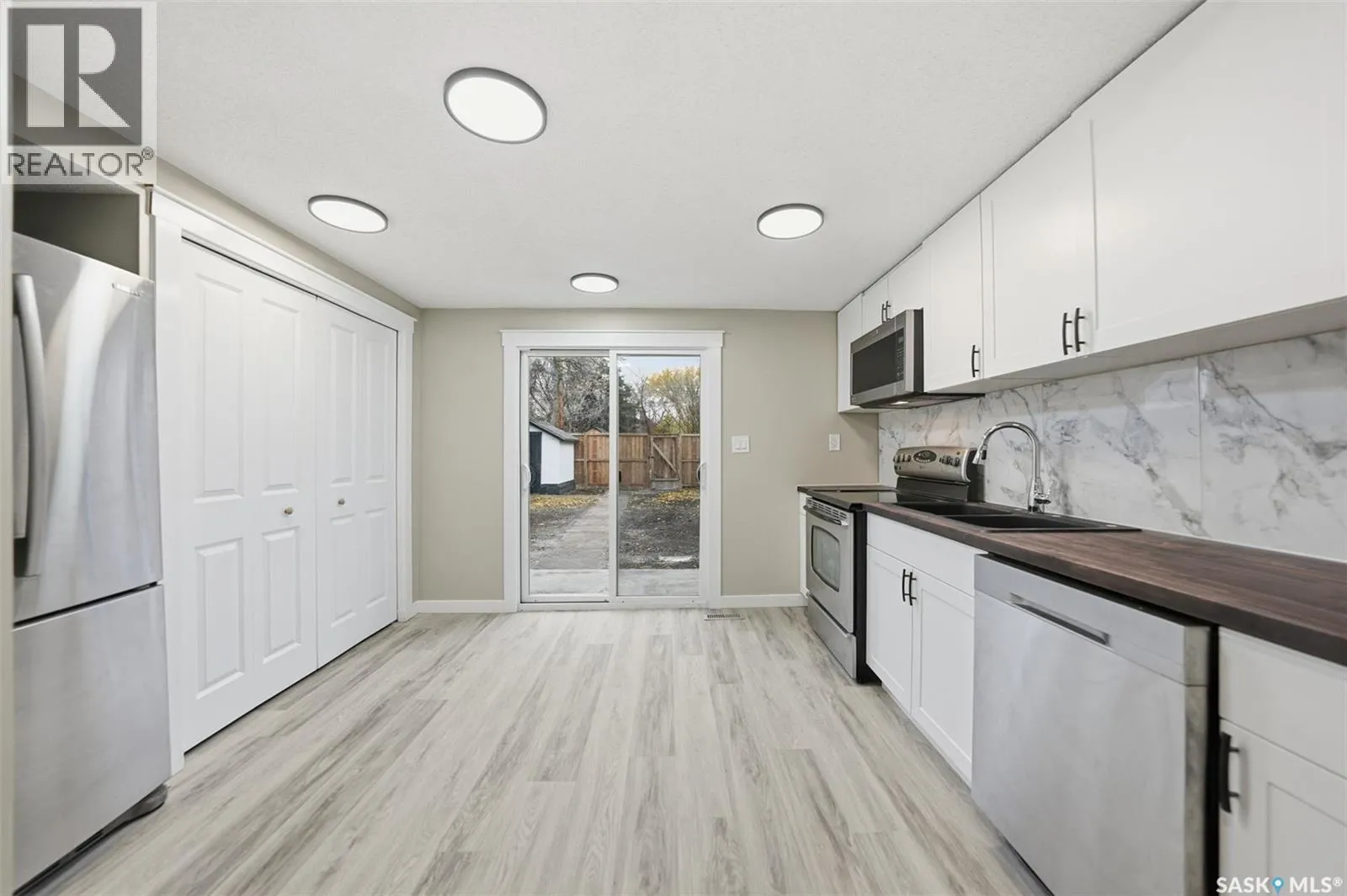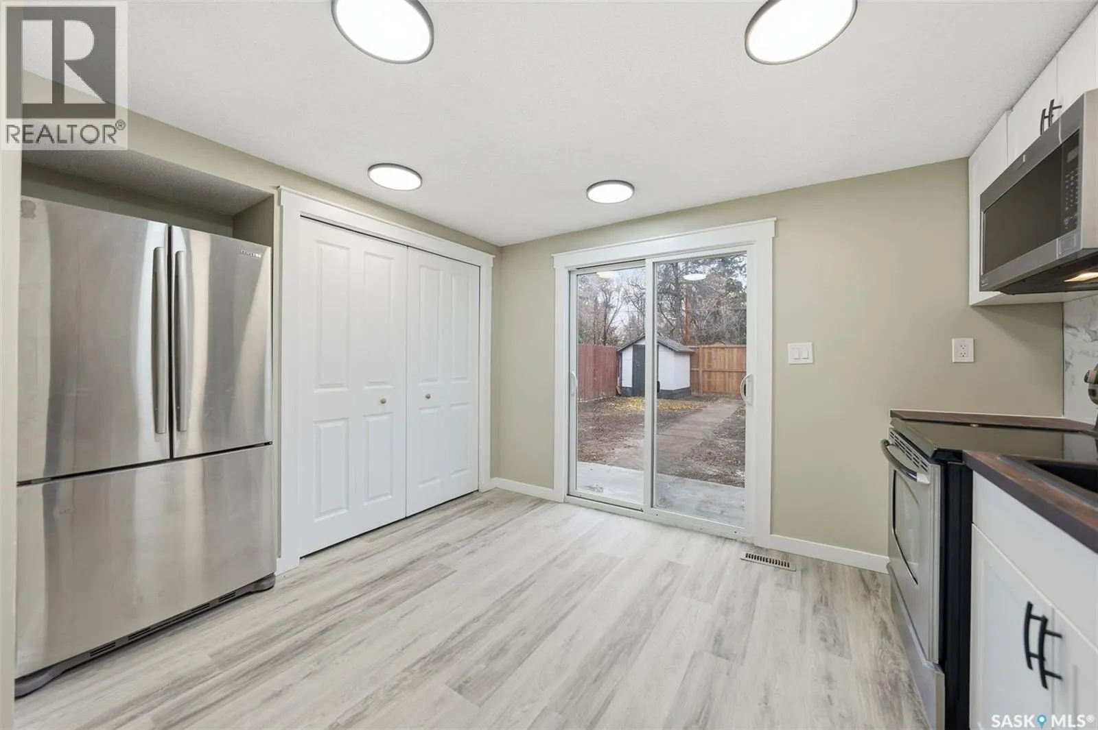 Fully renovated home in the heart of Saskatoon! This charming 2-storey detached house features a bright open-concept main floor with a modern kitchen and dining area, updated flooring, and fresh finishes throughout. The main floor offers a convenient bedroom and 2-piece bath, while the upper level features a spacious second bedroom and a beautifully updated 4-piece bathroom. The lower level includes laundry, utility area with a newer furnace and water heater, plus a versatile bonus/flex roomâperfect for a media nook, home gym, or hobby space. Outside, enjoy a 1-car concrete driveway in front and a large backyard with space to park up to three additional vehicles off-street. The rear parking area is currently unpaved, offering flexibility for gravel, concrete, or a future garage. Move-in ready and located close to schools, parks, and downtownâideal for first-time buyers or investors seeking a turnkey property! (id:27476)