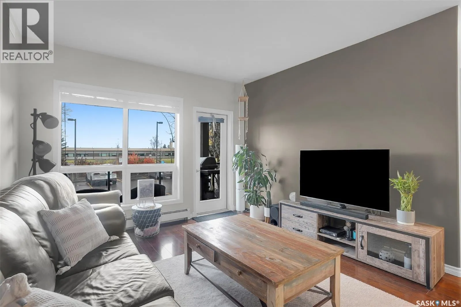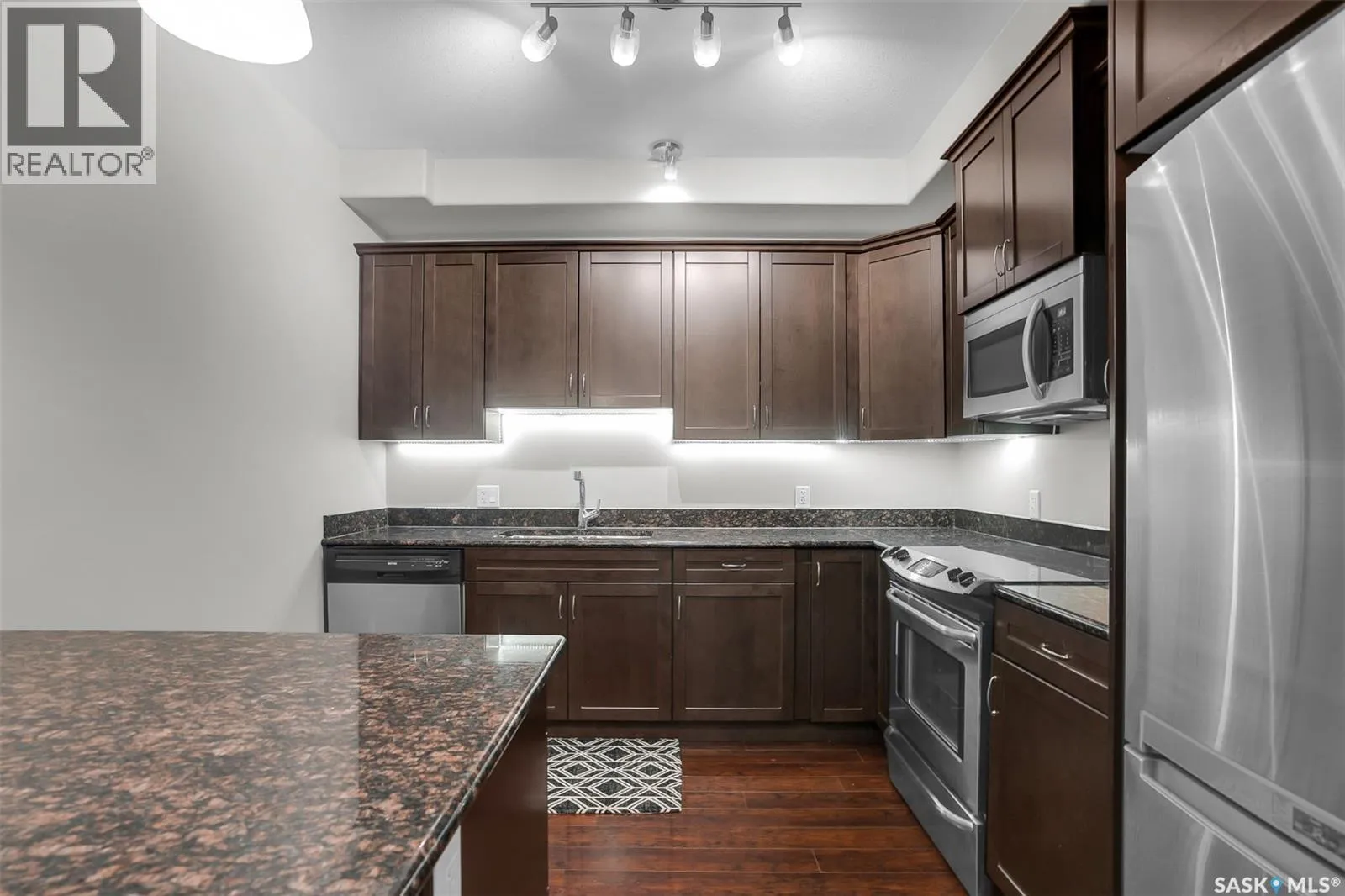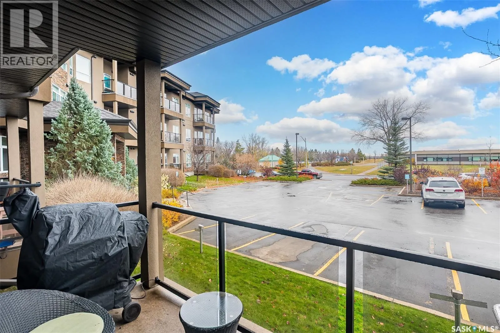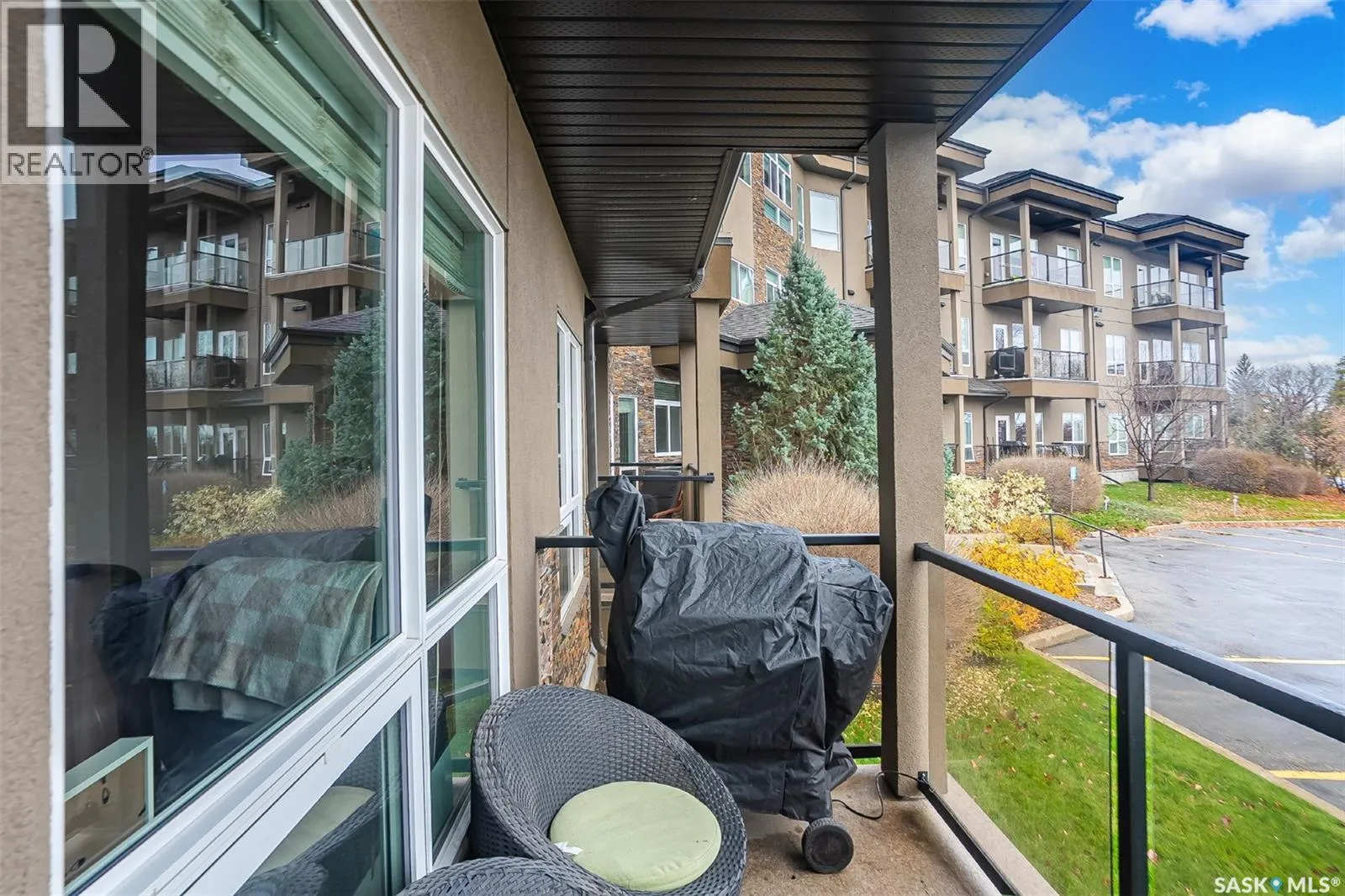 Experience comfortable, low-maintenance living in this beautifully cared-for 1,012 sqft, 2-bedroom, 2-bathroom condo located in the highly desirable Greystone Heights neighbourhood. Situated on the main floor, this home offers easy access and a welcoming open-concept layout filled with natural light. The spacious kitchen features dark maple cabinetry, granite countertops, stainless steel appliances (all included), and a large peninsula perfect for casual dining or entertaining. Rich flooring flows through the main living areas, leading to a bright living room and patio door that opens to your private outdoor space with a natural gas BBQ hookupâideal for year-round grilling and relaxation. The primary bedroom provides comfort and privacy with a walk-in closet and 3-piece ensuite, while the second bedroom and full bathroom offer excellent space for roommates, family or guest. Additional highlights include in-suite laundry, central air conditioning, and convenient parking arrangements with heated underground parking PLUS an extra surface stall, along with a secure storage locker. Enjoy the convenience of being just minutes from the University of Saskatchewan, Greystone Heights School & park, 8th Street amenities, restaurants, bus routes, and beautiful walking paths. (id:27476)