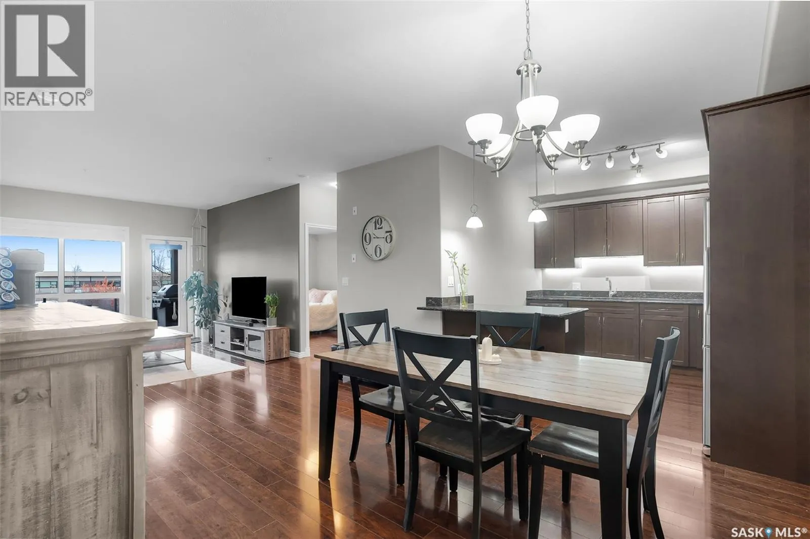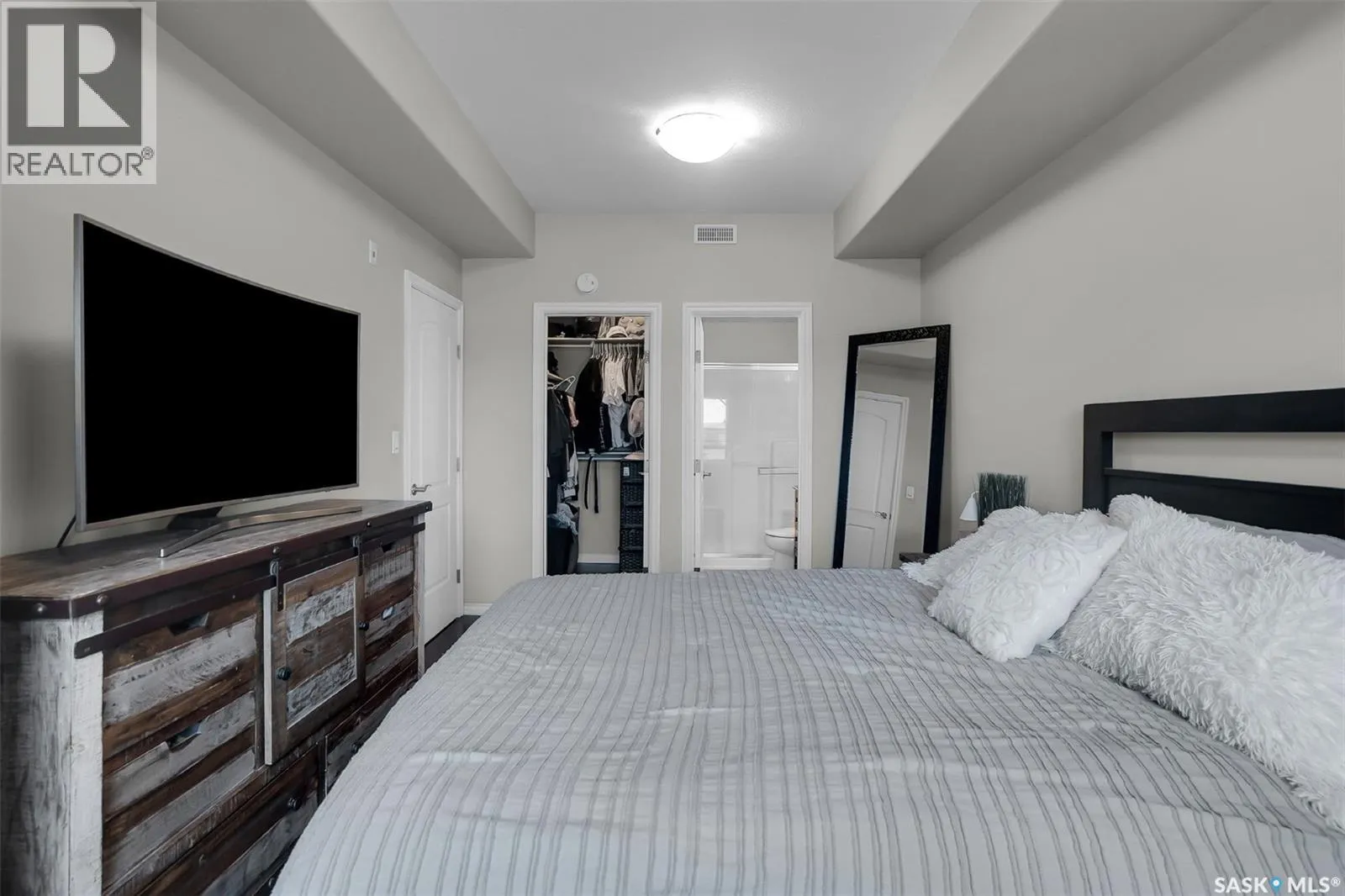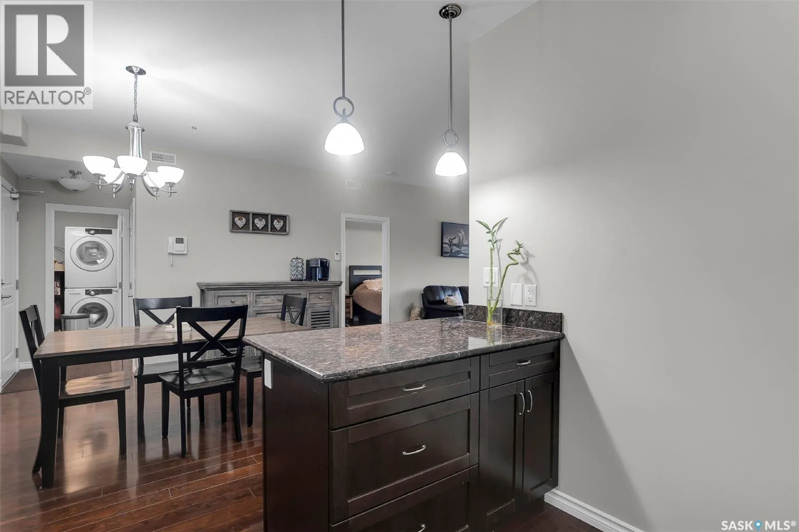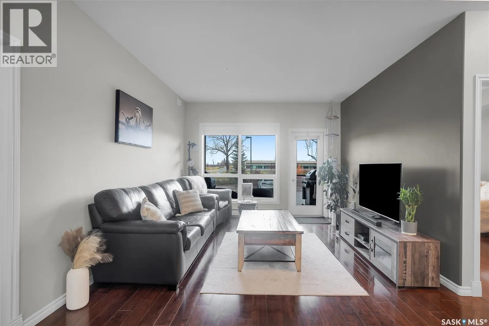 Experience comfortable, low-maintenance living in this beautifully cared-for 1,012 sqft, 2-bedroom, 2-bathroom condo located in the highly desirable Greystone Heights neighbourhood. Situated on the main floor, this home offers easy access and a welcoming open-concept layout filled with natural light. The spacious kitchen features dark maple cabinetry, granite countertops, stainless steel appliances (all included), and a large peninsula perfect for casual dining or entertaining. Rich flooring flows through the main living areas, leading to a bright living room and patio door that opens to your private outdoor space with a natural gas BBQ hookupâideal for year-round grilling and relaxation. The primary bedroom provides comfort and privacy with a walk-in closet and 3-piece ensuite, while the second bedroom and full bathroom offer excellent space for roommates, family or guest. Additional highlights include in-suite laundry, central air conditioning, and convenient parking arrangements with heated underground parking PLUS an extra surface stall, along with a secure storage locker. Enjoy the convenience of being just minutes from the University of Saskatchewan, Greystone Heights School & park, 8th Street amenities, restaurants, bus routes, and beautiful walking paths. (id:27476)