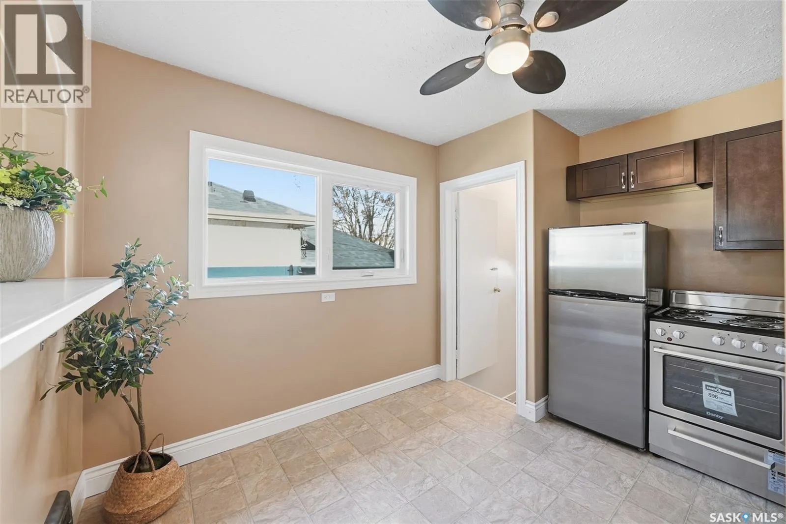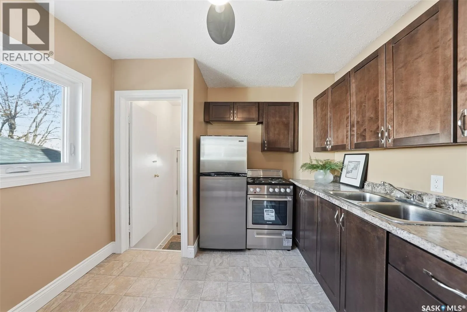 Attention investors and first-time buyers! This beautifully updated 680 sq. ft. bungalow in the vibrant Caswell Hill neighbourhood is move-in ready and offers excellent potential with R2 zoning. The main floor features 2 bedrooms and 1 bathroom, while the basement offers a separate entry suite ideal for rental income or extended family living. Recent renovations include new PVC windows on both levels, fresh paint, modern baseboards, refreshed kitchen cupboards and countertops, and brand new appliances on the upper level. Both bathrooms have been completely redone with a clean, contemporary finish. Outside youâll find an oversized double detached garage with newer siding, dual doors, and partial insulation. The large lot provides ample parking and outdoor space, adding to the homeâs functionality and appeal. Conveniently located just blocks from downtown, with easy access to shops, restaurants, and amenities. Quick possession available, an excellent opportunity to invest or settle into a beautifully refreshed home. (id:27476)
