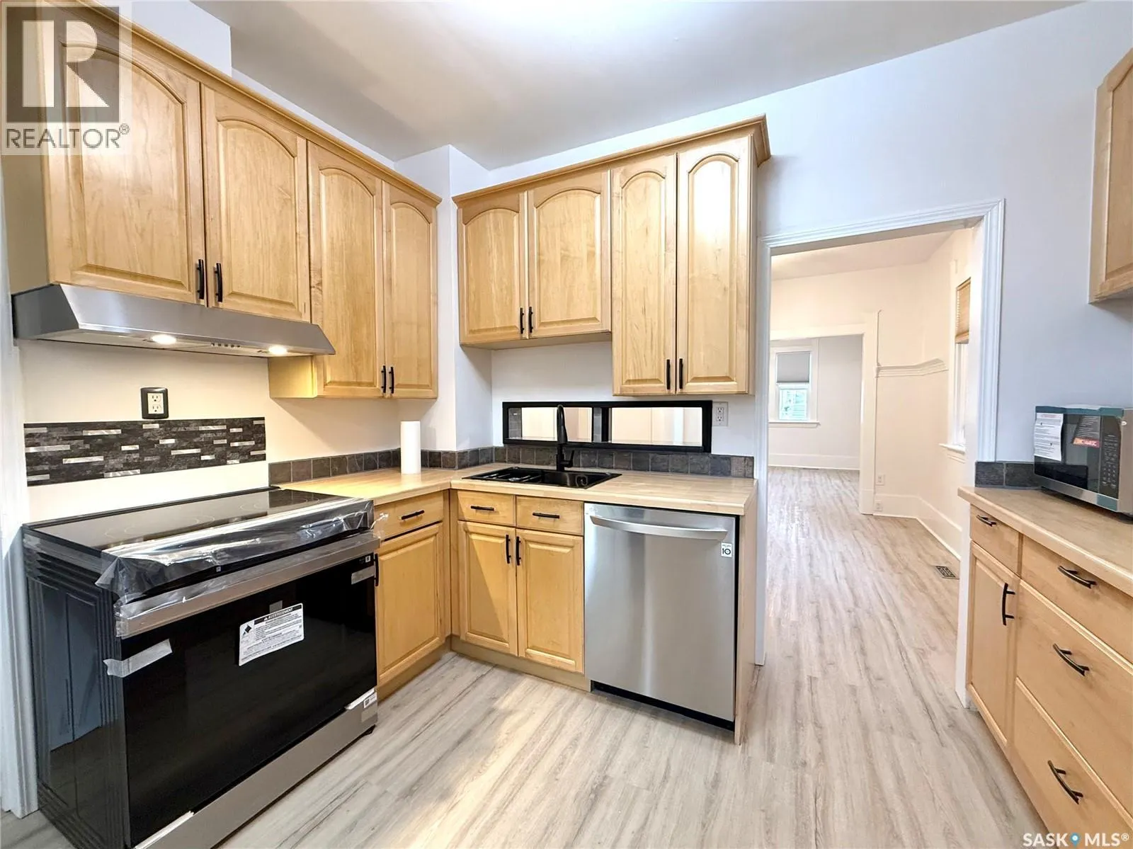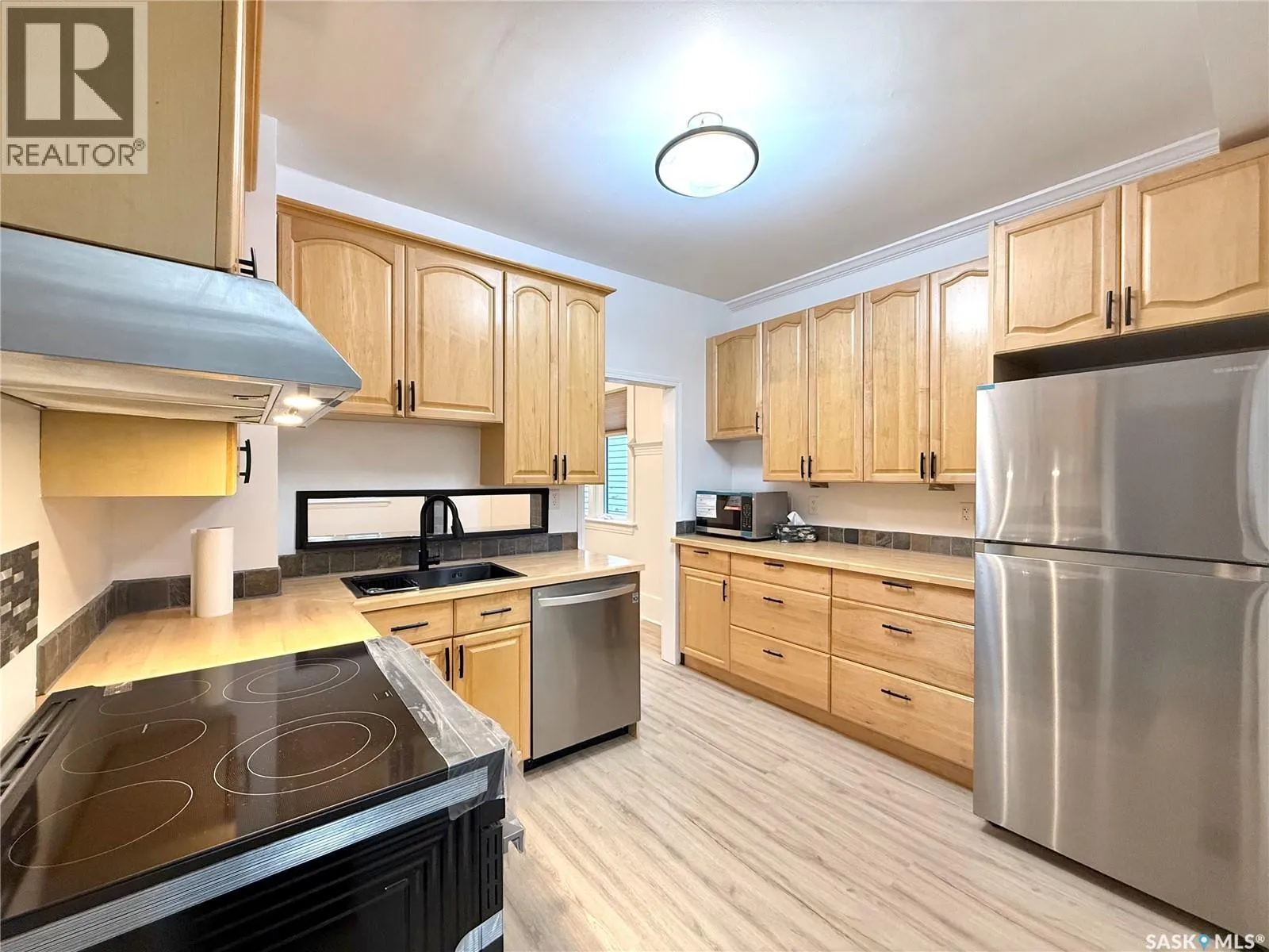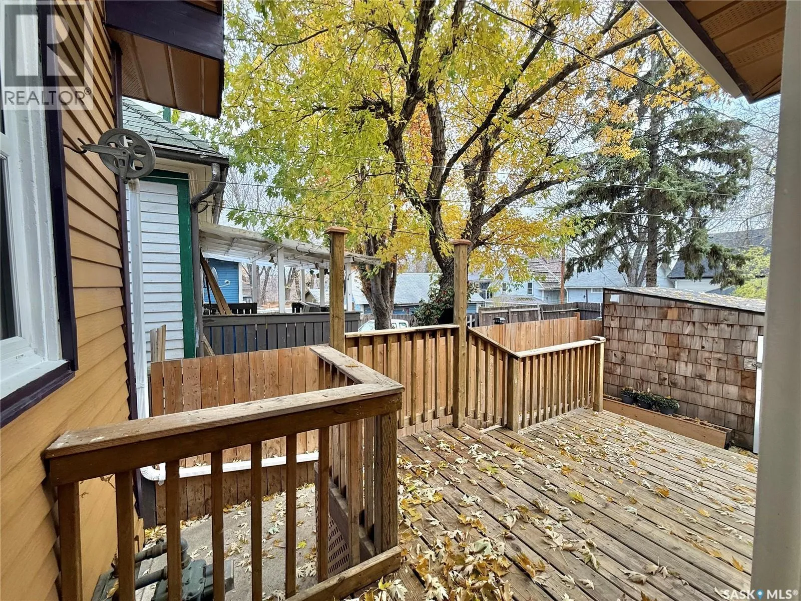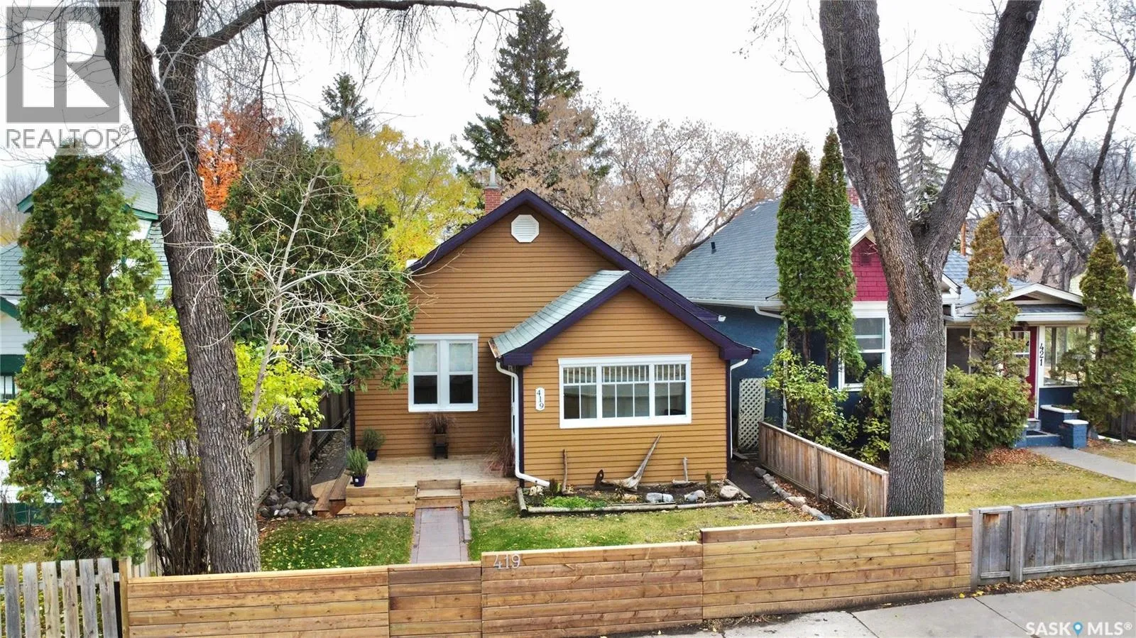 Welcome to 419 26th St W, a fully renovated character home located in Saskatoonâs core. Surrounded by mature trees, this home packs a punch with all new finishes. Featuring all new flooring throughout, freshly painted walls, refurbished and new doors, all new appliances, and more! Featuring two bedrooms upstairs sunroom and a large bedroom in the basement, this home is equipped with 3 bedrooms and 2 full bathrooms boasting 980 sqft. Featuring a skylight in the living room, with large windows, this home basks in sunlight featuring brightness throughout the day. The main entrance of this home features a bright and airy sunroom, perfect for those sunny days or plant lovers! The kitchen features tons of cabinet space and brand new appliances with a cute retro breakfast shelf. The basement has been fully completed and renovated with one full bathroom featuring stand up shower, a great sized living area, large bedroom, and laundry room with a newer washer and dryer. The exterior of this home was completely refurbished along with new landscaping, an enlarged and refurbished deck on the both front and back side of the property. With landscaping freshly finished and a refurbished shed, this home is ready to be enjoyed for years to come! Call today to book a viewing of this newly styled home located in a cozy, mature, neighbourhood. (id:27476)