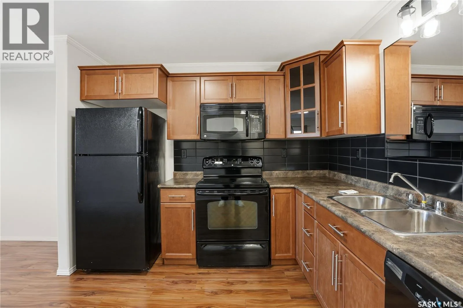Welcome to 507-110 Shillington Crescent â a bright and inviting walk-up townhouse in the heart of Blairmore. Situated directly across from a green space, walking trails, baseball diamonds and steps from Tommy Douglas Collegiate and Bethlehem Catholic High School, this location offers a perfect blend of convenience and community. Inside, youâll find a well-designed 2-bedroom, 1-bathroom layout featuring fresh paint, updated lighting, and a stylish matte tile backsplash in the kitchen. The open concept living space is filled with natural light, and both bedrooms offer comfortable proportions and good closet space. An electrified parking stall is included, and the unit has its own furnace and water heaterâgiving you control over your utilities and comfort. With shopping, parks, schools, and transit all just steps away, this townhouse is move-in ready and an ideal fit for first-time buyers, students, or anyone looking for low-maintenance living in a great neighborhood. (id:27476)