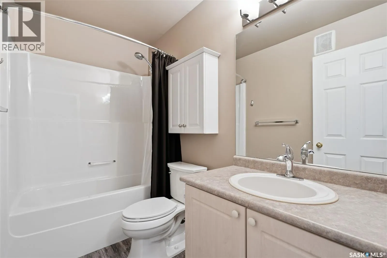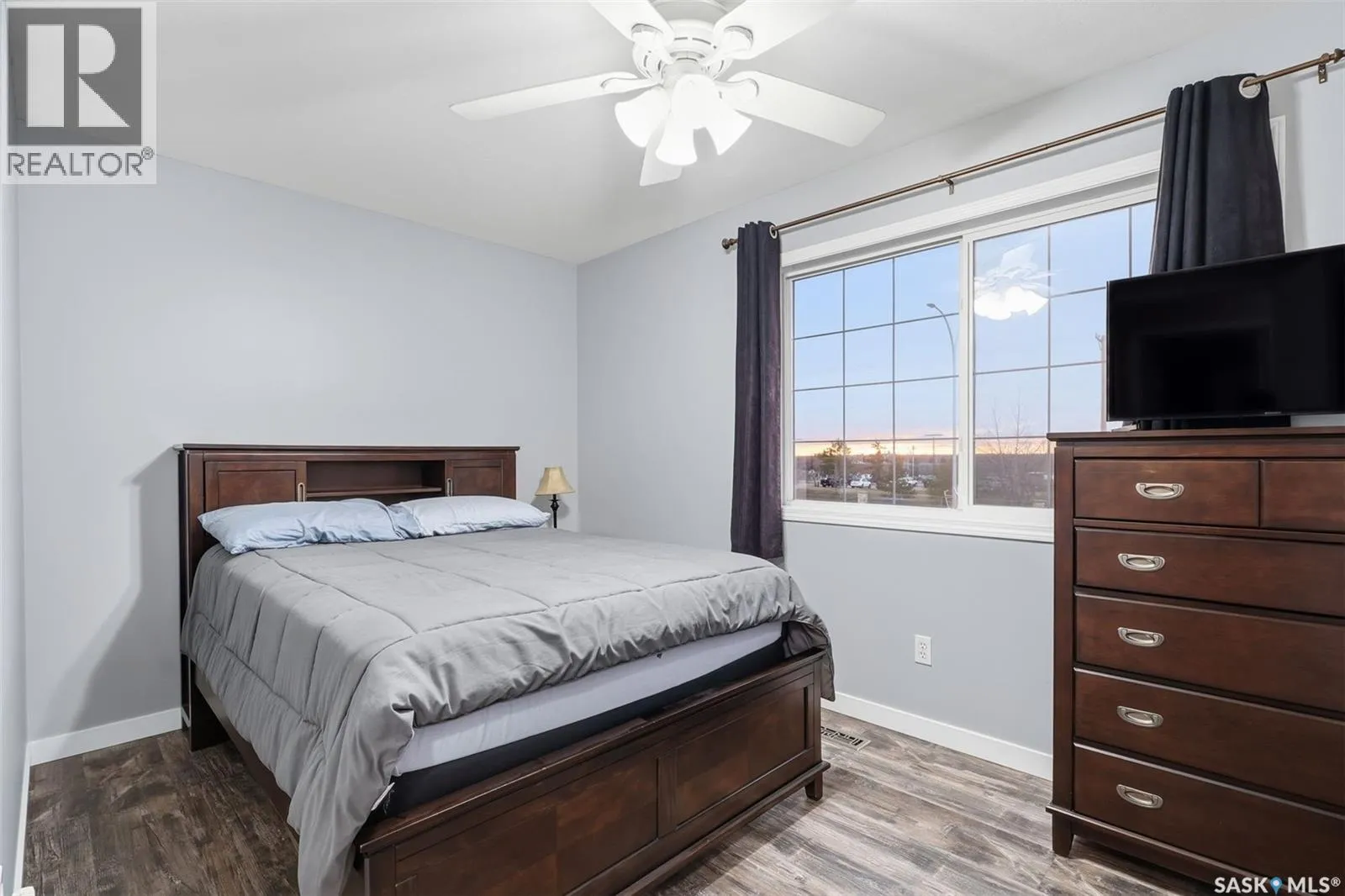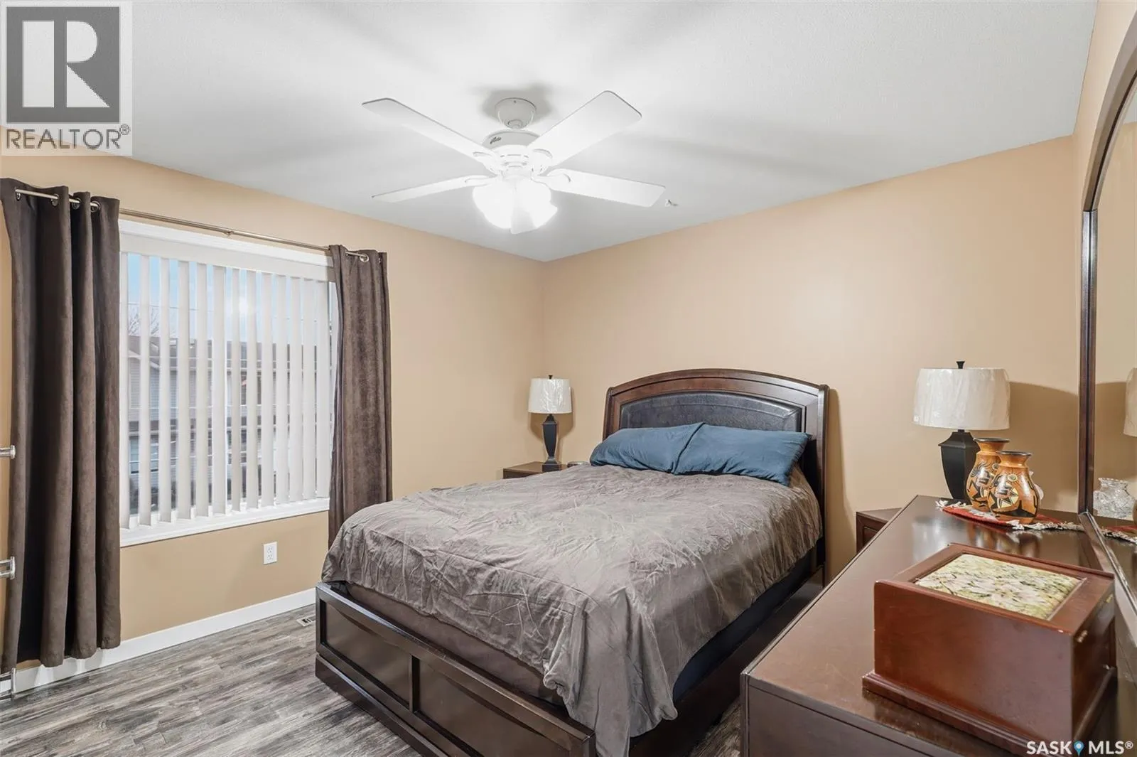 Welcome to this charming 2-storey townhouse in desirable Silverspringâoffering 944 sqft. of comfortable living space in a prime location near the river, trails, environmental parks, Forestry Farm, and excellent schools. This home features 2 spacious bedrooms with oversized closets, a 4-piece bathroom upstairs, and a 2-piece bath on the main floor. The professionally developed basement provides additional living space with a cozy family room or office area, den, storage, and a laundry room. Enjoy durable laminate flooring throughout the main and second floors, central air conditioning and the included window treatments. The private, partially fenced yard backs onto Central Avenue, offering both privacy and no backing neighbours. Located just minutes away from all amenities and within biking distance to the University of Saskatchewan, and this home includes parking right at your front door!! Don't miss your chance to view this home, set up your own private showing today! (id:27476)