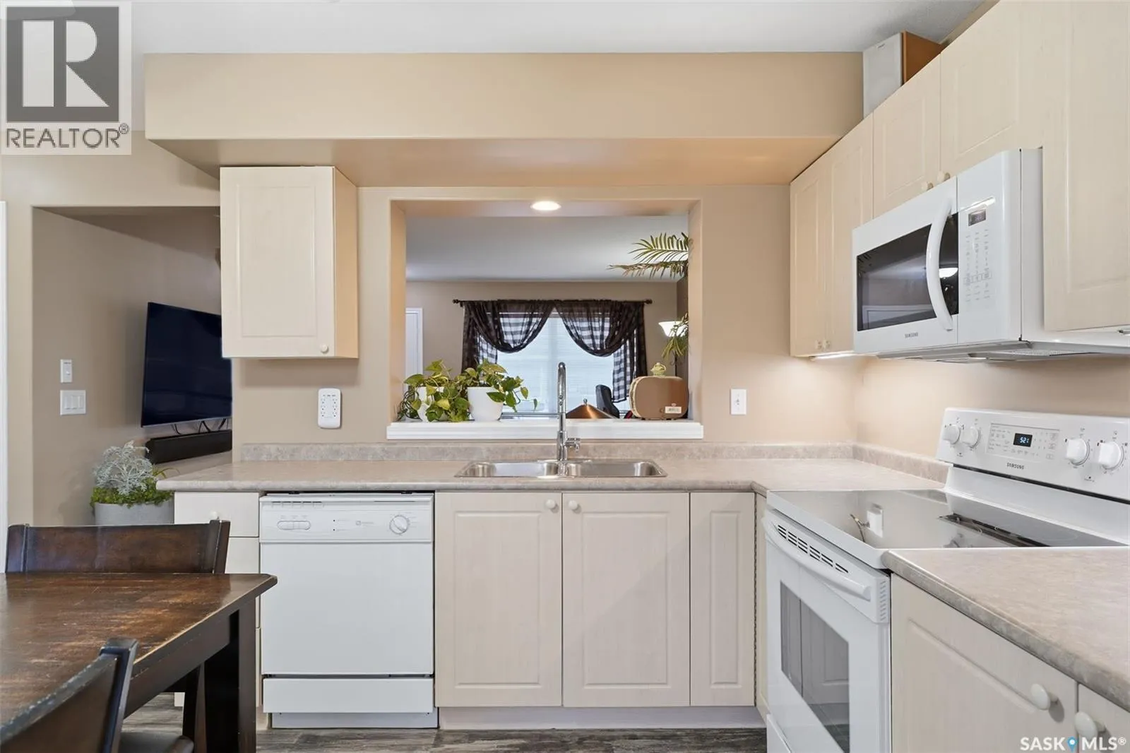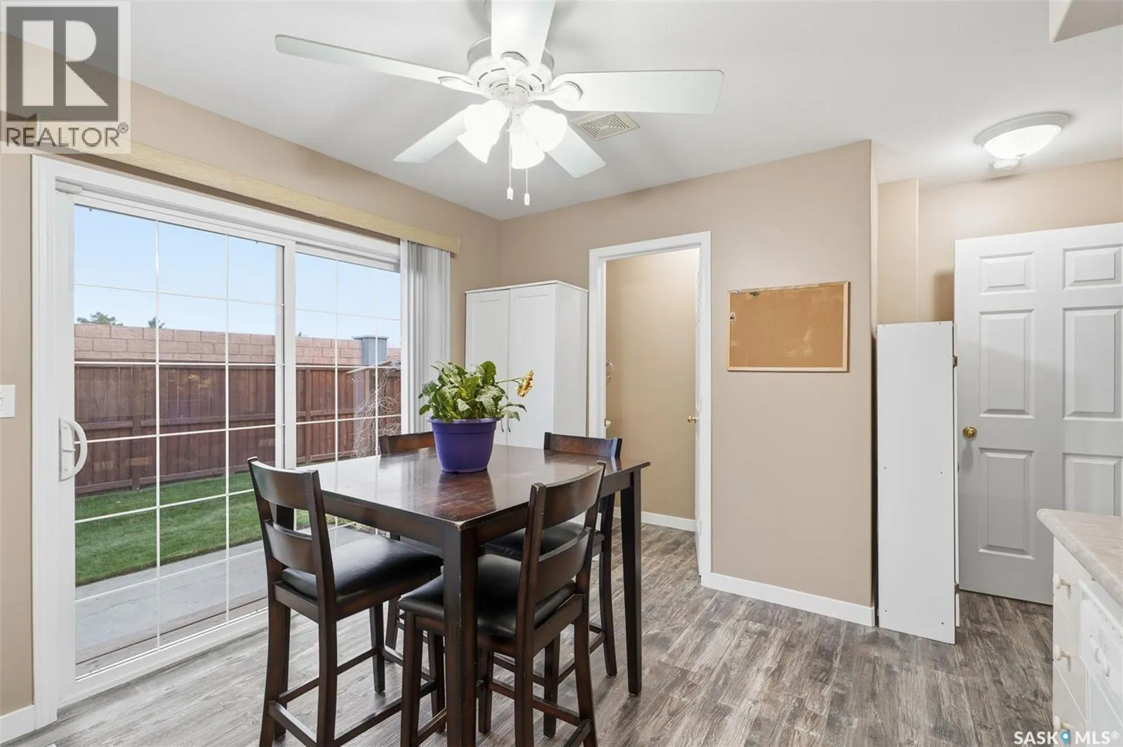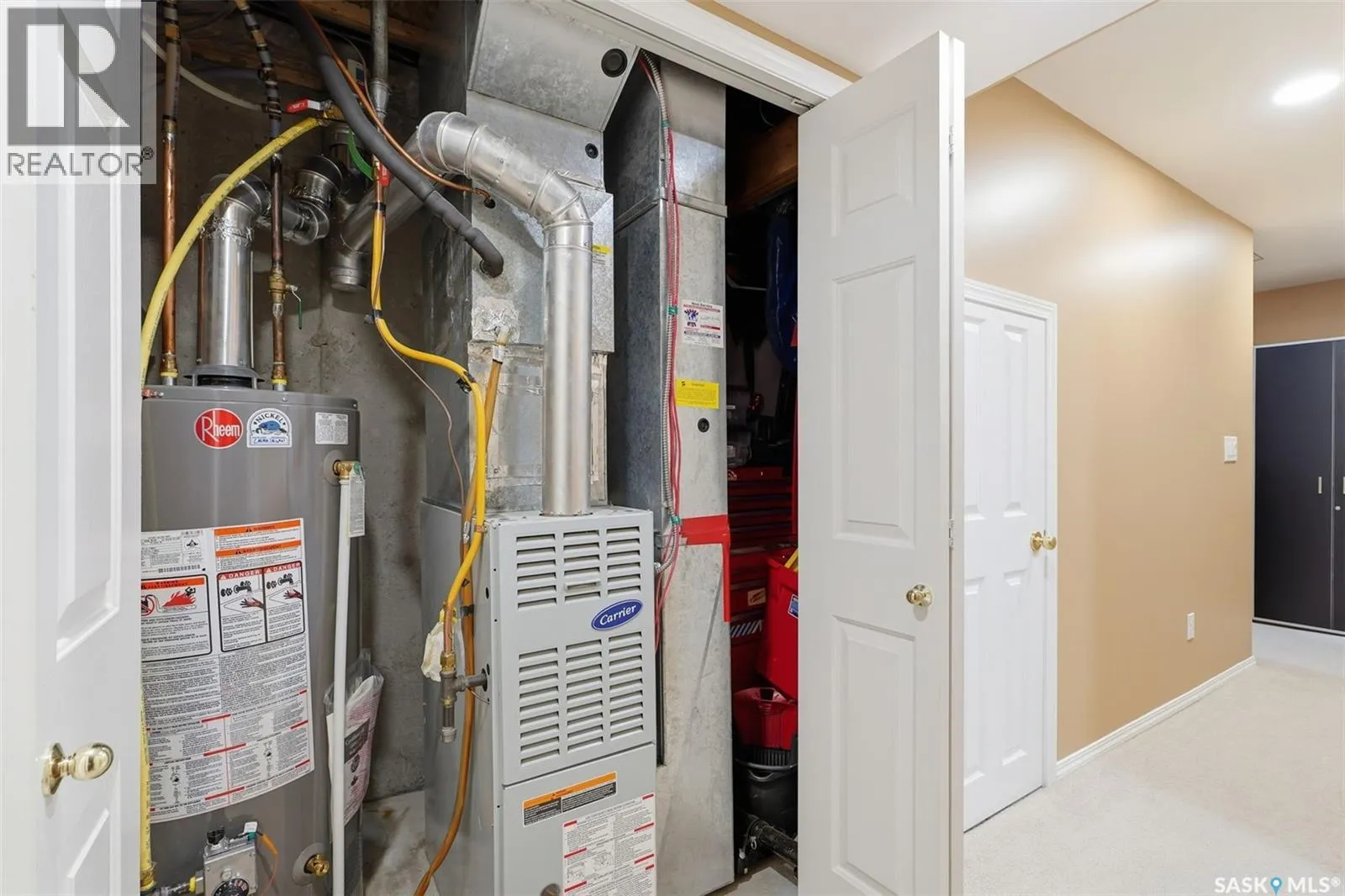 Welcome to this charming 2-storey townhouse in desirable Silverspringâoffering 944 sqft. of comfortable living space in a prime location near the river, trails, environmental parks, Forestry Farm, and excellent schools. This home features 2 spacious bedrooms with oversized closets, a 4-piece bathroom upstairs, and a 2-piece bath on the main floor. The professionally developed basement provides additional living space with a cozy family room or office area, den, storage, and a laundry room. Enjoy durable laminate flooring throughout the main and second floors, central air conditioning and the included window treatments. The private, partially fenced yard backs onto Central Avenue, offering both privacy and no backing neighbours. Located just minutes away from all amenities and within biking distance to the University of Saskatchewan, and this home includes parking right at your front door!! Don't miss your chance to view this home, set up your own private showing today! (id:27476)