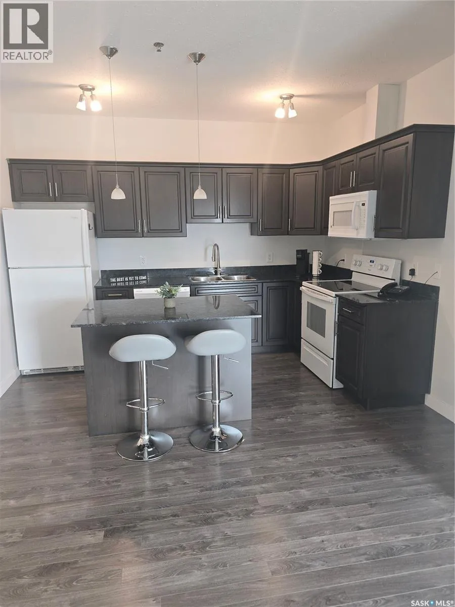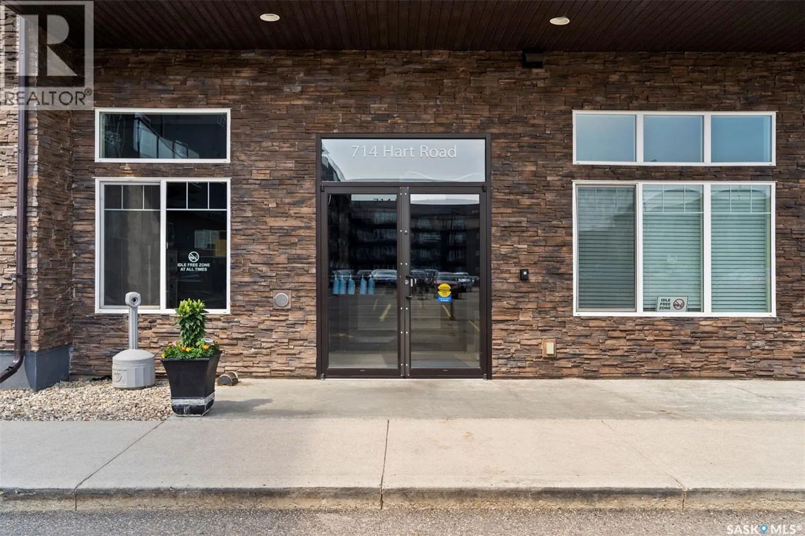 Welcome to #310 â 714 Hart Road. Awesome 3rd floor CORNER unit which has 2 bedrooms, 1 bathroom. The open concept area includes the kitchen, the dining room, & the gorgeous living room with its huge corner windows make this plan an obvious winner! Other key features include in suite laundry with stackable washer/dryer, central air conditioner (Wall unit), a spacious east facing balcony & gas BBQ plus 1 dedicated parking stall for the owner and possibly the opportunity to rent a 2nd stall from the condo association. This unit has been meticulously kept by its present owners & is a pleasure to view, you wonât be disappointed! (id:27476)