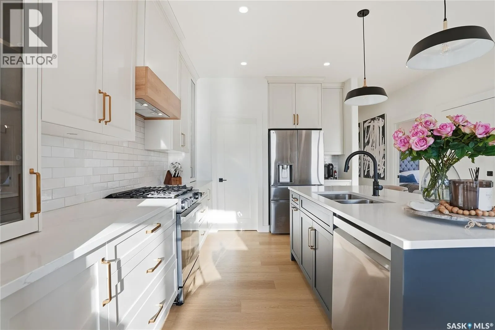 Luxury Custom Build with 2-Bedroom Legal Suite â Backing Green Space! An exceptional Pure Homes custom build, this luxury residence offers nearly 2,300 sq. ft. on two levels plus a fully dev 2 bedroom basement suite, featuring a total of 6 bedrooms, 4 baths, and a bonus room. Backing walking paths and green space, this home presents refined design throughout. Step inside to a large, private foyer accented by a panelled feature wall, setting the tone for the high-end finishes found throughout. The open-concept great room is a showstopperâanchored by a stunning chefâs kitchen with off-white cabinetry, an indigo island, light oak-lined glass display cabinets, crown detail, quartz countertops, tile backsplash, coffee bar, a walk-through spacious pantry and professional-grade stainless appliances. The adjoining dining area sits under a statement light fixture and opens to the lrg composite deck, offering views of the park. A feature brick-faced fireplace, expansive window, and custom linen draperies complete the inviting great room. Main also features a guest BEDROOM (or office), a FULL 4 piece bath, and boot room with garage access to a heated, drywalled garage. Upstairs, find a vaulted ceiling spacious bonus room with an exposed oak beam, a lux primary suite with vaulted ceiling and beam detail, a dedicated laundry room, and two additional bedrooms plus a full family bath. The fully developed basement hosts a beautiful 2-bedroom LEGAL SUITE, complete with vinyl plank flooring, stainless appliances, and bright, modern finishesâideal for extended family or rental income. Additional highlights include: Designer drapery throughout, Central air conditioning, Dual air exchangers and Hot water tanks, Panelled feature walls, High-end flooring throughout, Composite deck, Front landscaping and Driveway completed, Iron perimeter back fence. A truly impressive home where no upgrade was overlookedâcrafted for modern family living, with revenue potential! (id:27476)