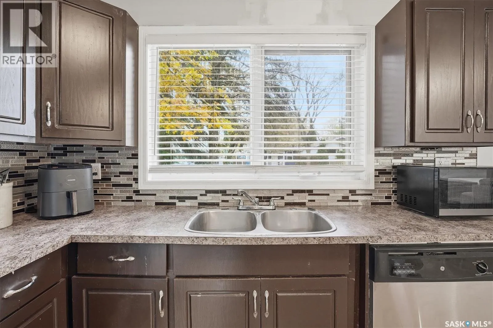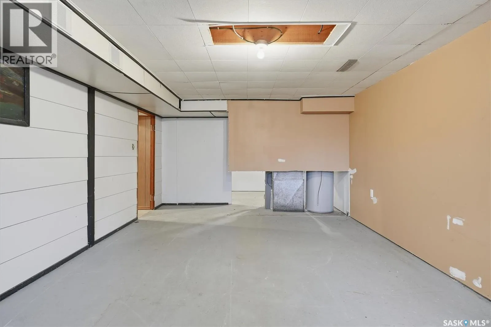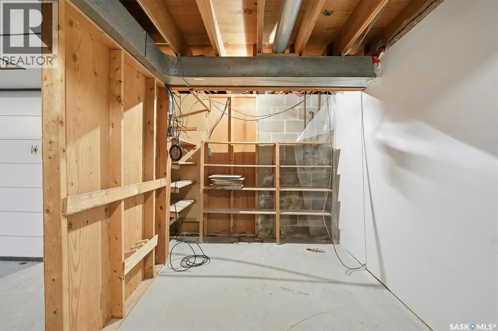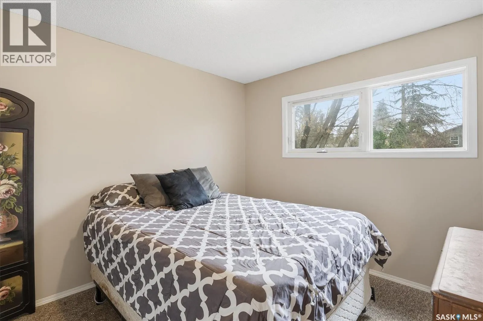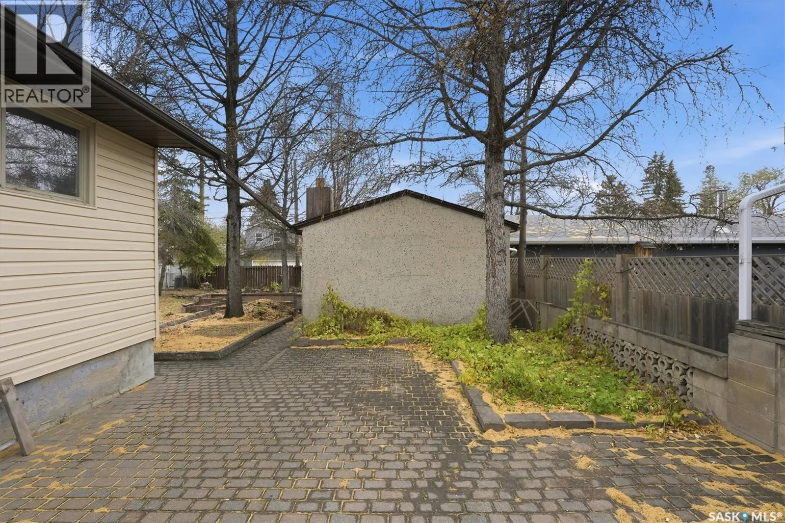 Welcome to this charming 3 +1 bedroom bungalow located in the desirable Exhibition area of Saskatoon. Situated on a spacious 50 by 120 foot lot, this home offers a great mix of character and comfort. The inviting living room features a stunning Tyndall stone natural gas fireplace, perfect for cozy evenings. The functional kitchen has ample cabinet space and is just steps away from the dining area. The lower level has large area which would be great for a family room, an additional bedroom, 3 pc bathroom and plenty of storage. You are sure to enjoy the yard with mature trees and plenty of room to create your backyard oasis. There is a single car garage with access from the alley but has been used mostly for storage for many years. This is a wonderful opportunity to own a home in a well-established neighborhood with easy access to the river and circle drive. (id:27476)