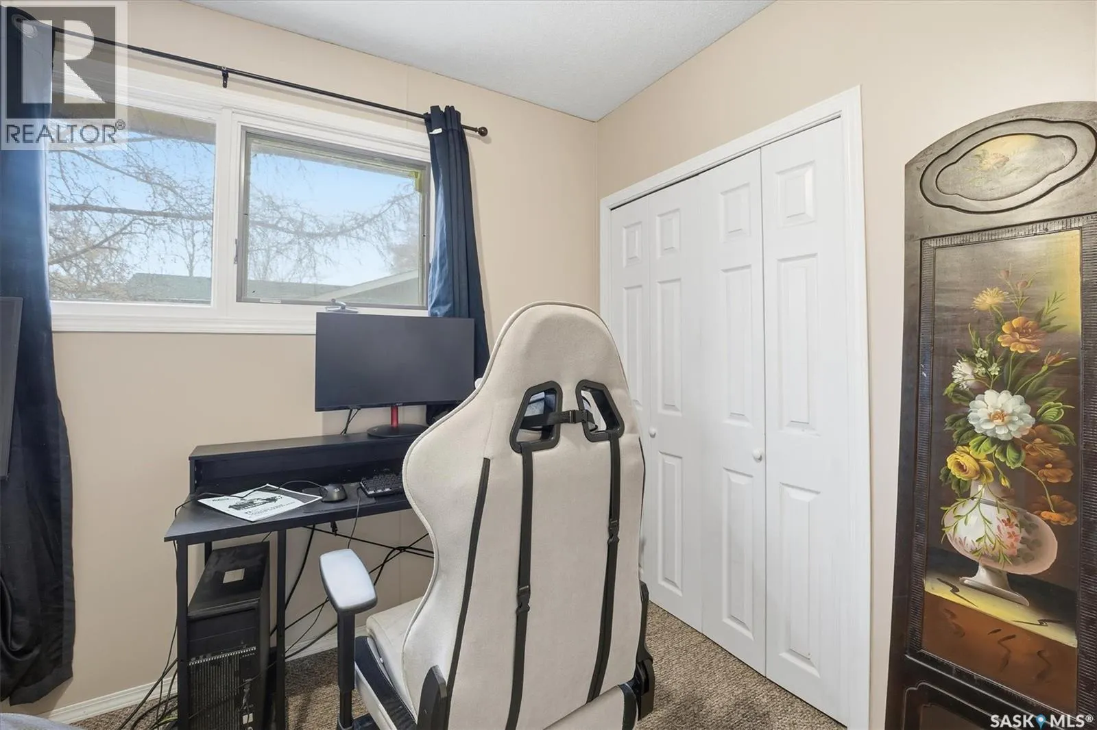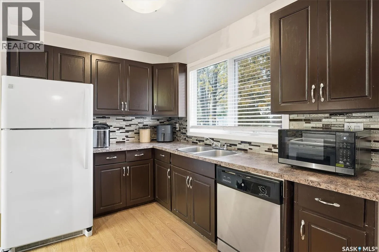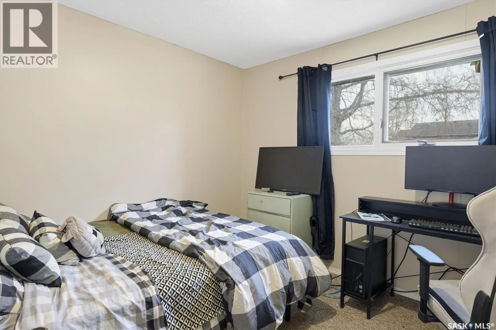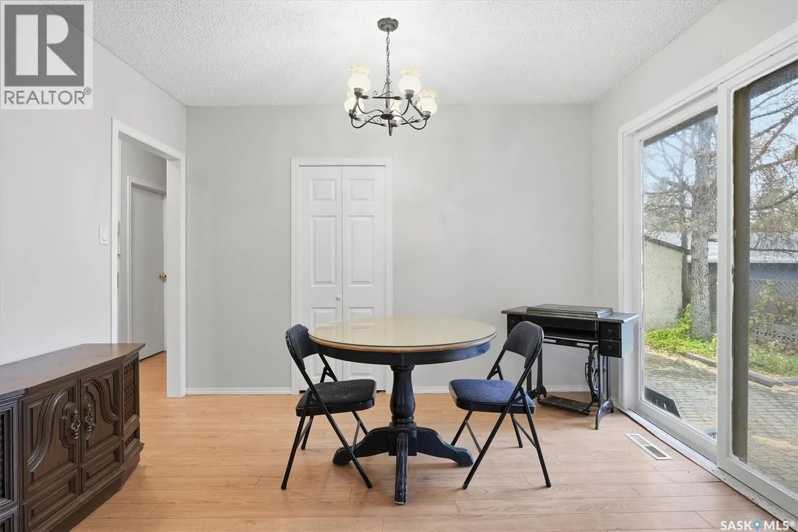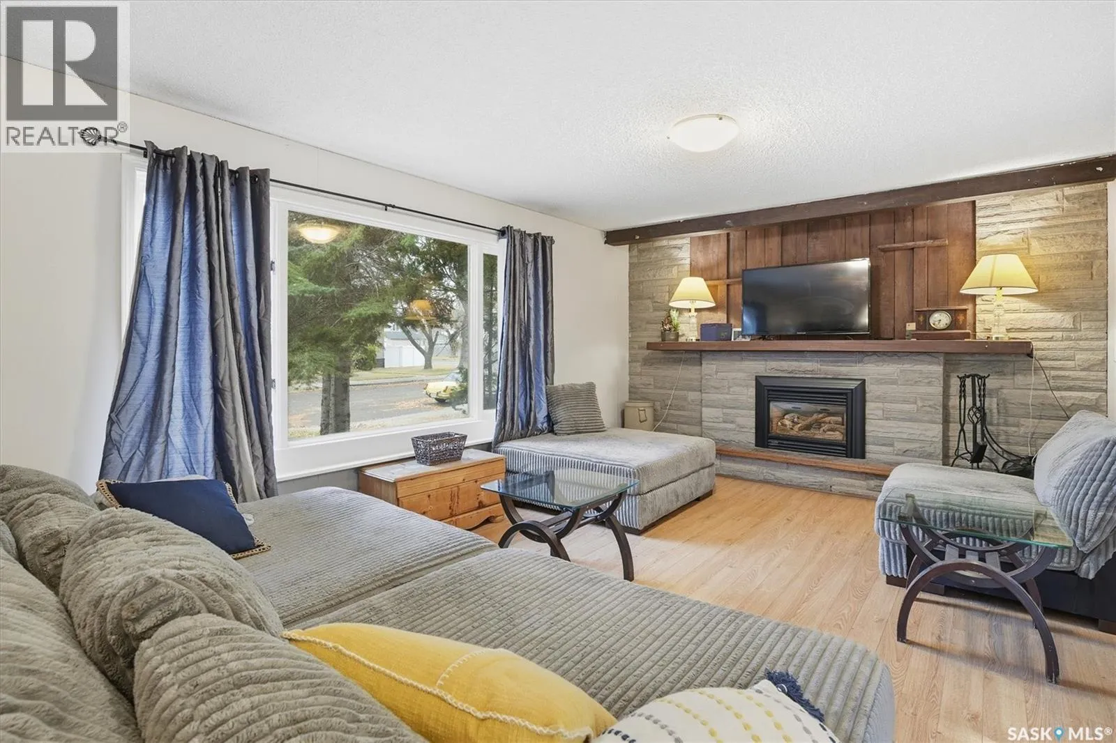 Welcome to this charming 3 +1 bedroom bungalow located in the desirable Exhibition area of Saskatoon. Situated on a spacious 50 by 120 foot lot, this home offers a great mix of character and comfort. The inviting living room features a stunning Tyndall stone natural gas fireplace, perfect for cozy evenings. The functional kitchen has ample cabinet space and is just steps away from the dining area. The lower level has large area which would be great for a family room, an additional bedroom, 3 pc bathroom and plenty of storage. You are sure to enjoy the yard with mature trees and plenty of room to create your backyard oasis. There is a single car garage with access from the alley but has been used mostly for storage for many years. This is a wonderful opportunity to own a home in a well-established neighborhood with easy access to the river and circle drive. (id:27476)