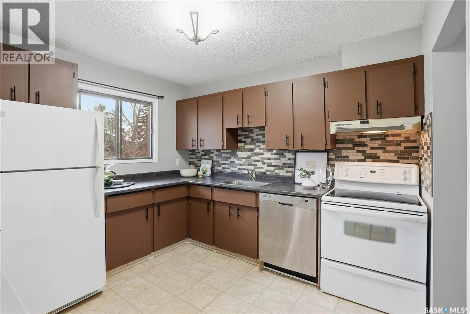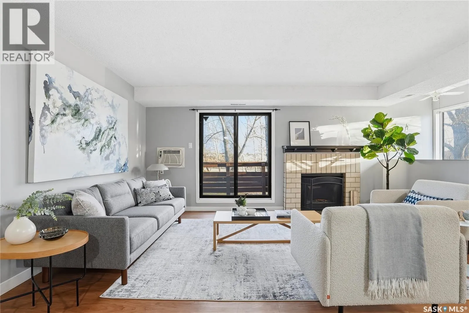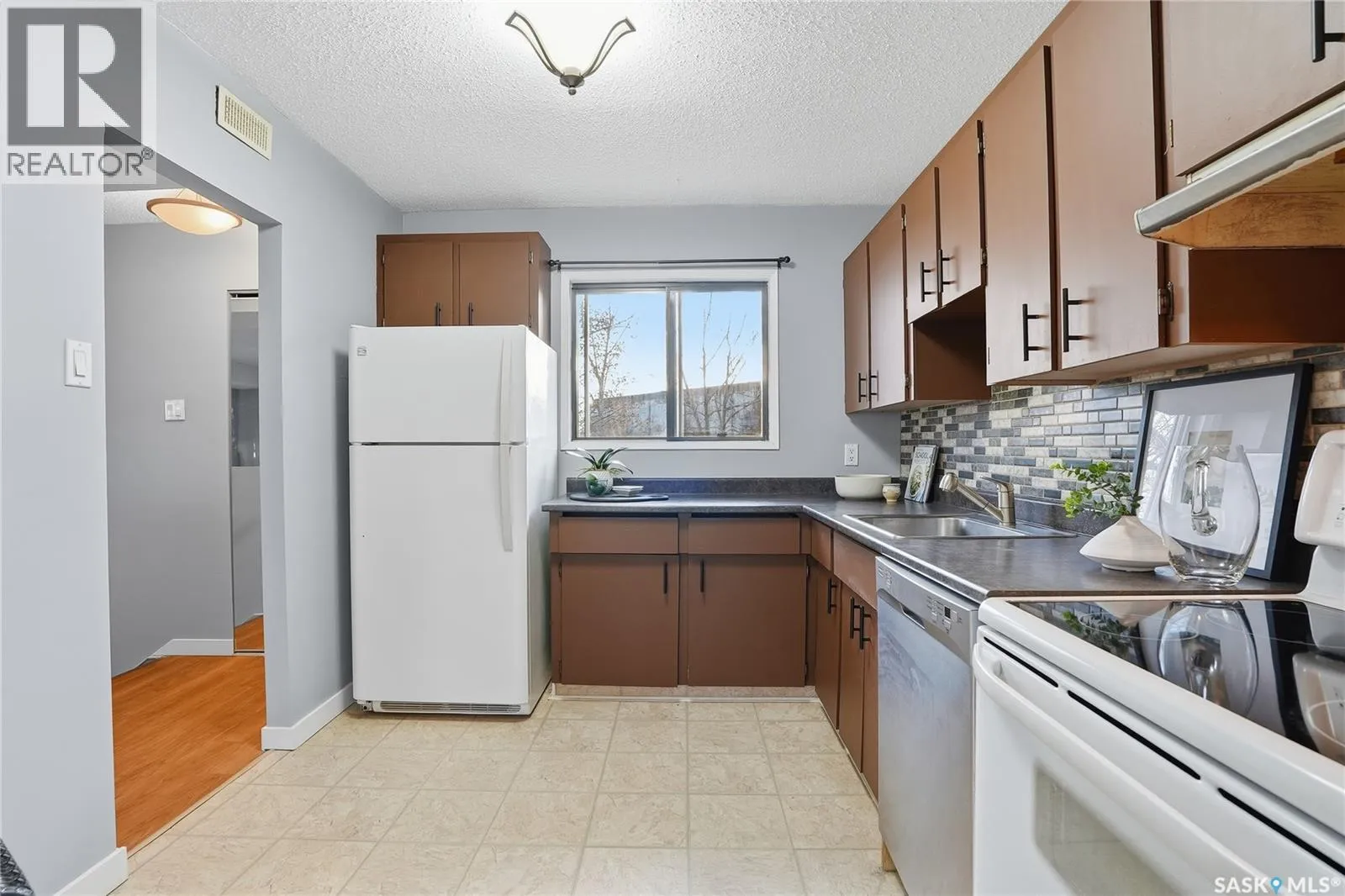 Welcome to Prairie Ridge. Discover the perfect blend of comfort and value in this bright upper level townhouse, quietly tucked away at the rear of the complex for added privacy. This hidden gem is south facing and flooded with natural light; complimented with a private balcony overlooking mature trees and green space. Step inside to discover an open and spacious layout with fresh paint tones and durable vinyl flooring. The inviting living room features a comforting wood burning fireplace, creating the perfect atmosphere for cozy nights in. The functional kitchen offers ample counter and cabinet space, a tiled backsplash, and plenty of room to cook and entertain. The spacious primary bedroom includes a convenient "get ready nook" and walk-in closet. The 2nd bedroom is ideal for kids, guests, a home office or creative space. The 4-Pc bath includes a soaker tub for relaxing after a hard day. Comes complete with Fridge, Stove, Dishwasher and stacking Washer Dryer. Enjoy the benefits of owning - build equity, personalize your space, and say goodbye to rising rents - this charming townhouse is a smart step into home ownership and offers the ideal balance of affordability, comfort, and everyday convenience. Book your private showing today! (id:27476)