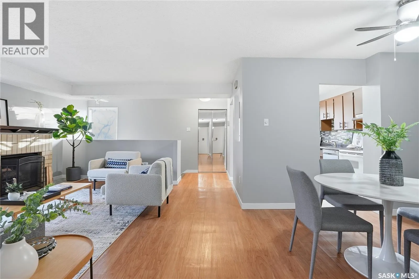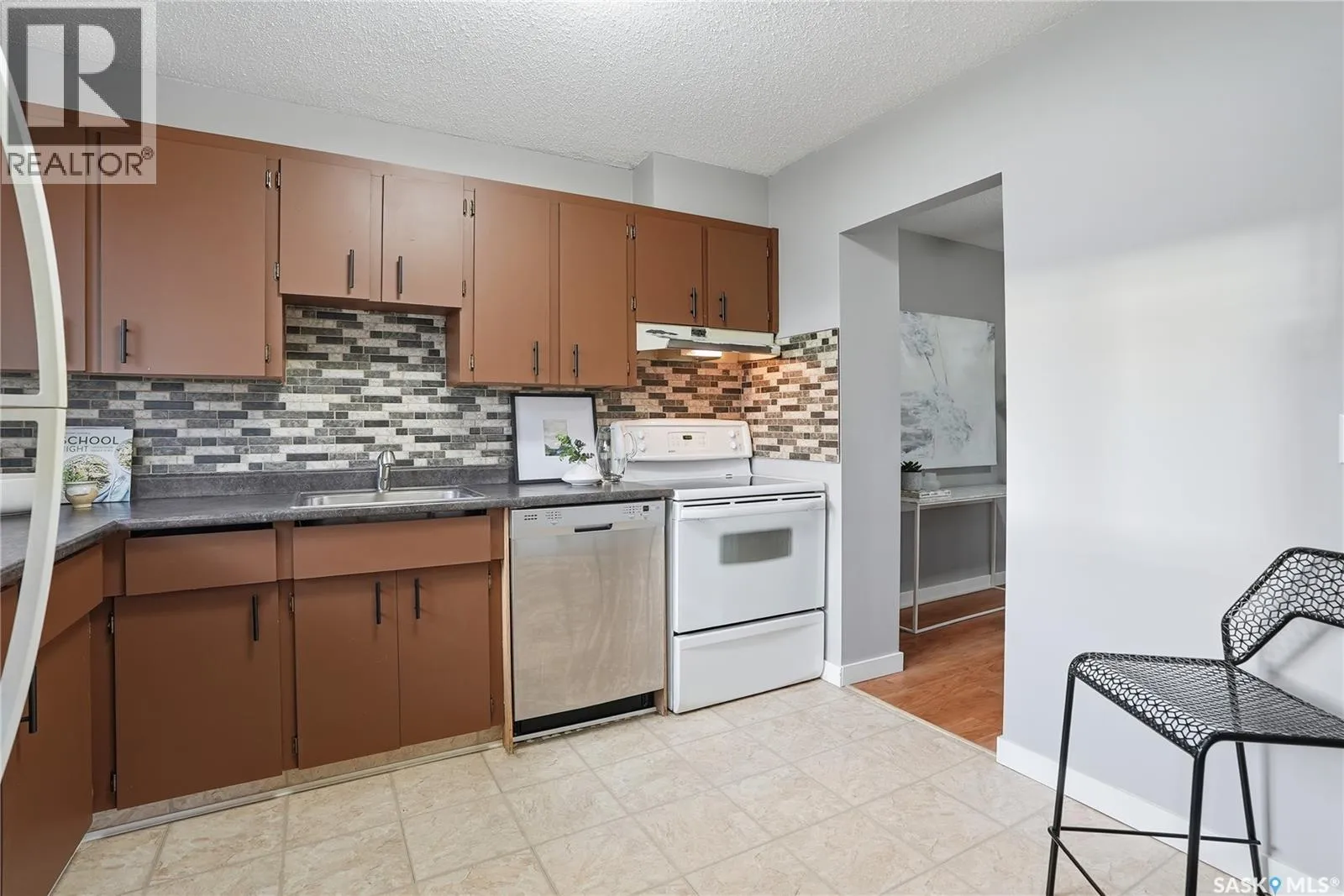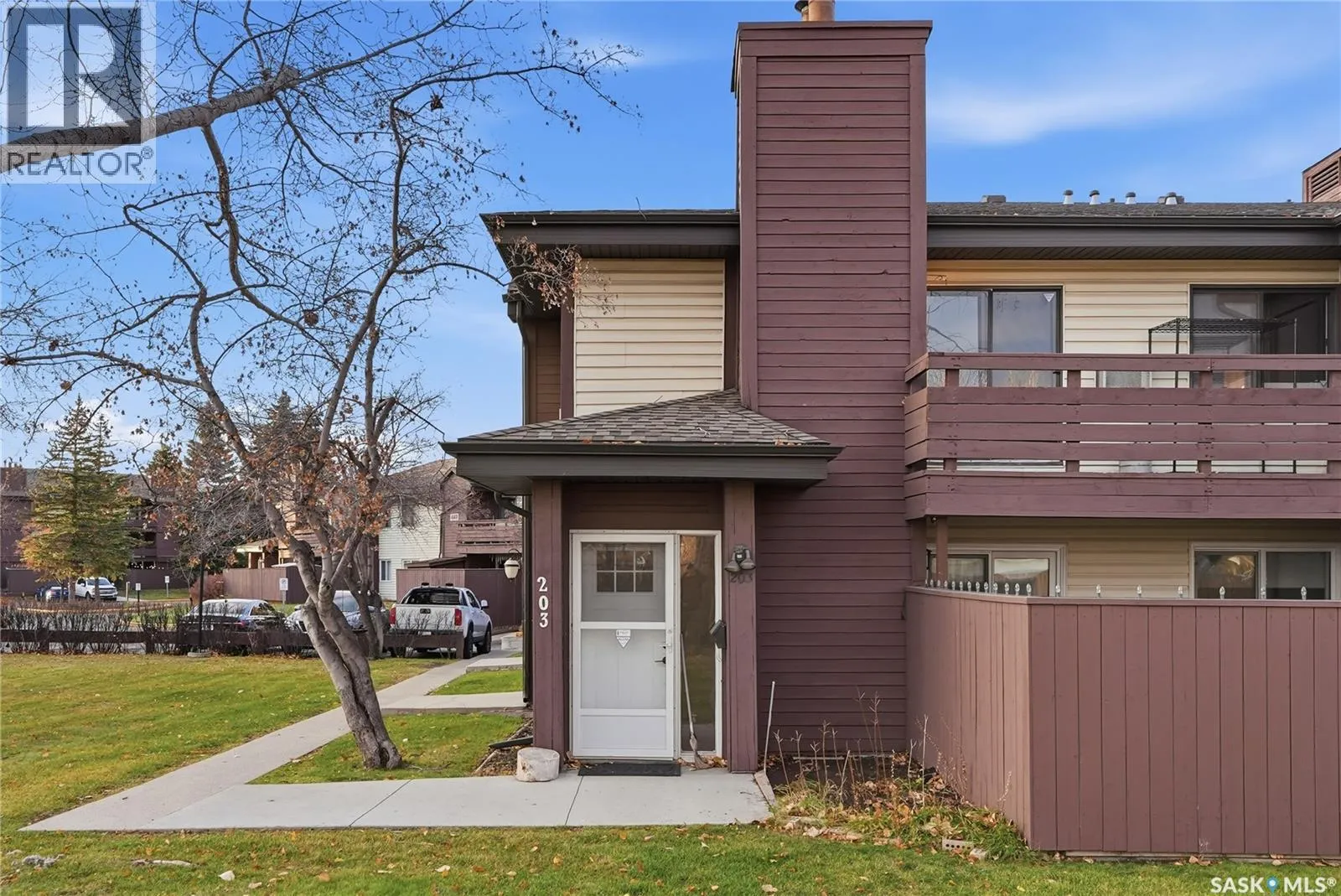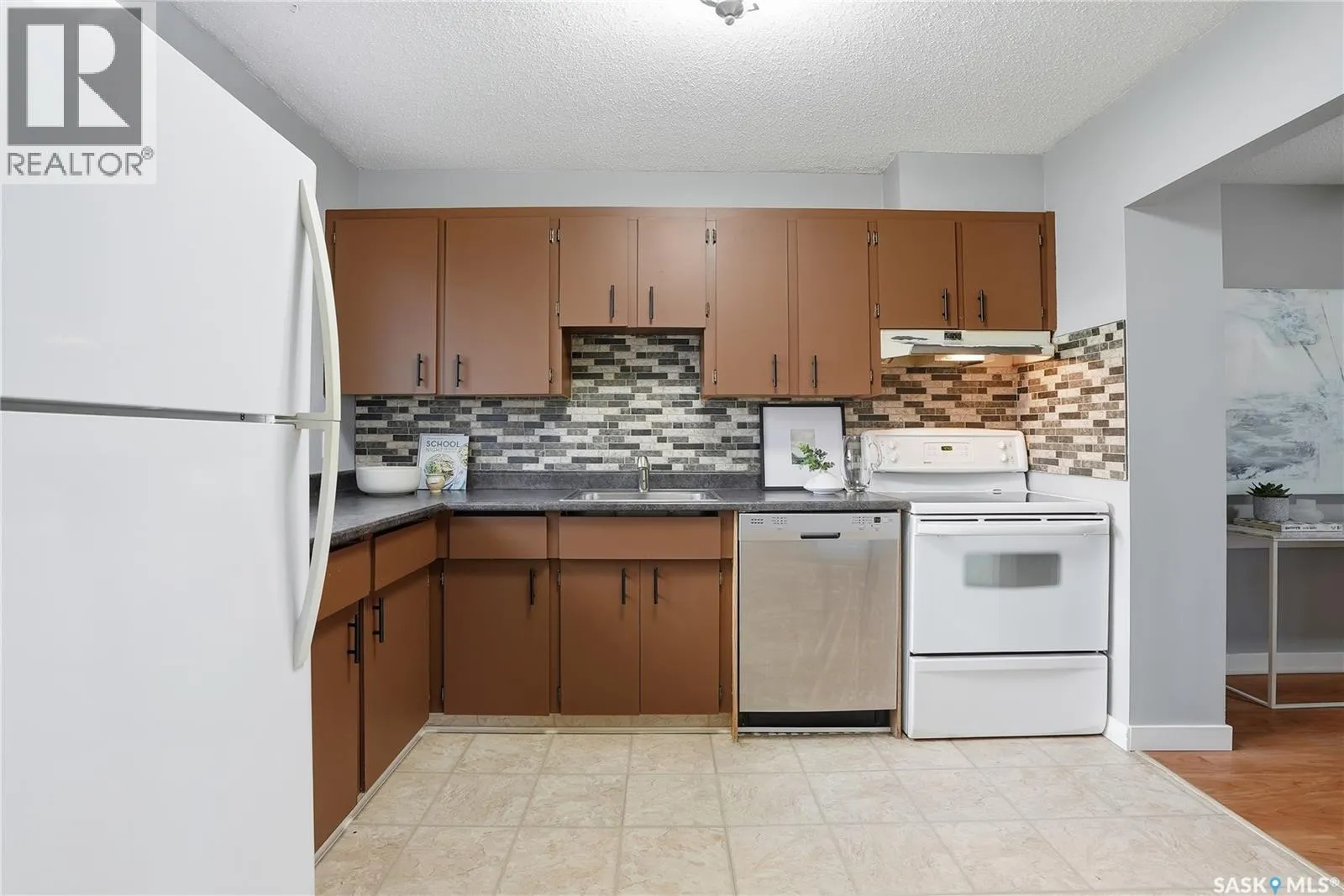 Welcome to Prairie Ridge. Discover the perfect blend of comfort and value in this bright upper level townhouse, quietly tucked away at the rear of the complex for added privacy. This hidden gem is south facing and flooded with natural light; complimented with a private balcony overlooking mature trees and green space. Step inside to discover an open and spacious layout with fresh paint tones and durable vinyl flooring. The inviting living room features a comforting wood burning fireplace, creating the perfect atmosphere for cozy nights in. The functional kitchen offers ample counter and cabinet space, a tiled backsplash, and plenty of room to cook and entertain. The spacious primary bedroom includes a convenient "get ready nook" and walk-in closet. The 2nd bedroom is ideal for kids, guests, a home office or creative space. The 4-Pc bath includes a soaker tub for relaxing after a hard day. Comes complete with Fridge, Stove, Dishwasher and stacking Washer Dryer. Enjoy the benefits of owning - build equity, personalize your space, and say goodbye to rising rents - this charming townhouse is a smart step into home ownership and offers the ideal balance of affordability, comfort, and everyday convenience. Book your private showing today! (id:27476)
