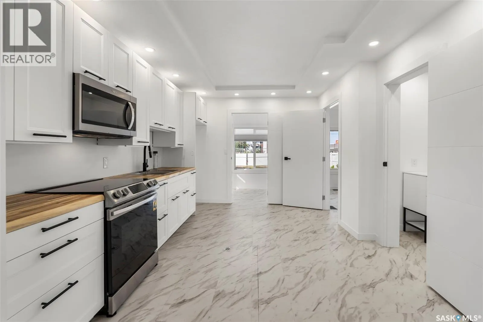 Fully Renovated 3-Bedroom Bungalow on a Large 50x140 Lot. This home has been completely updated from top to bottom. It features high ceilings and a brand-new kitchen with soft-close cabinets. The bathroom is completely new, and so are the triple-pane windows that help keep the home quiet and energy efficient. Thereâs a newer high-efficiency furnace, a new water tank, better insulation, new plumbing, and safe copper wiring with a 100-amp electrical panel. The roof has new trusses, rafters, and shingles. Inside, youâll find solid doors, quality blinds, bright pot lights, a wireless thermostat, and remote-control lighting in the bathroom. The home also includes a large new washer and dryer, a new stove, and an updated exterior. Outside, thereâs a parking pad with an electrical post - perfect for plugging in your car or tools. This home is move-in ready and built to last, with all the major updates already done. As per the Sellerâs direction, all offers will be presented on 11/20/2025 6:00PM. (id:27476)