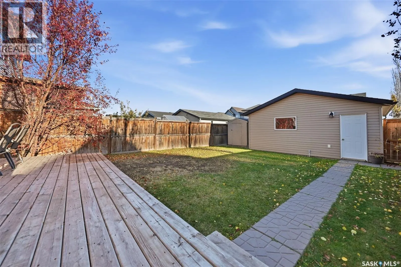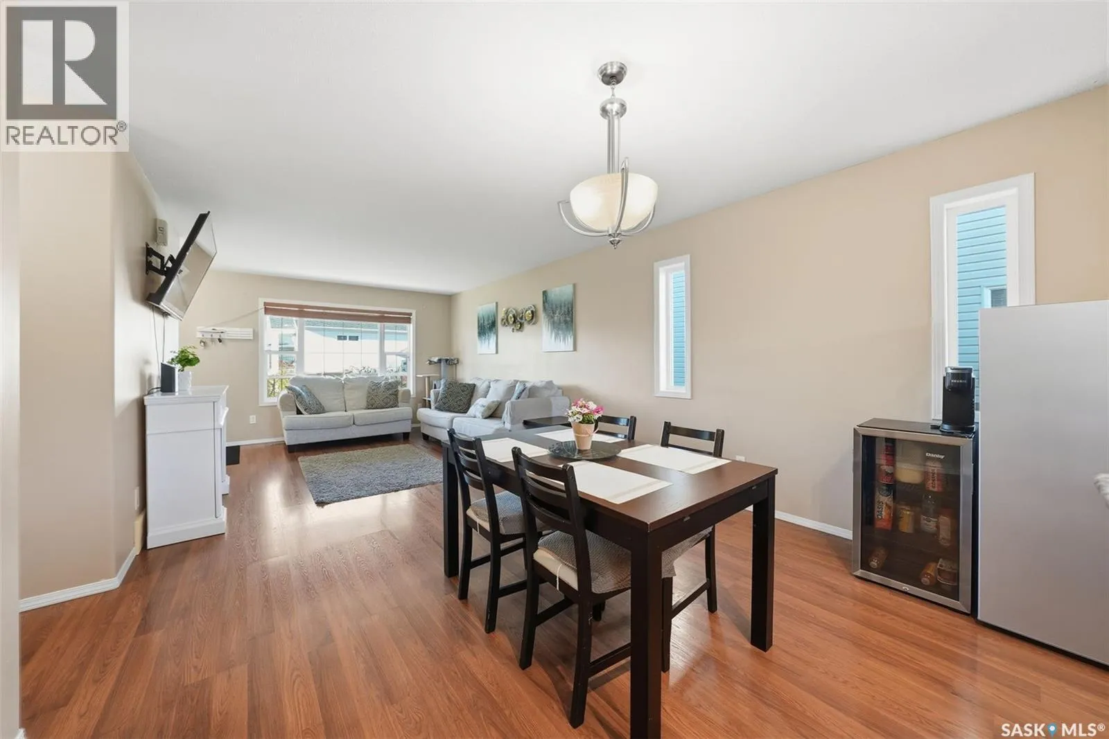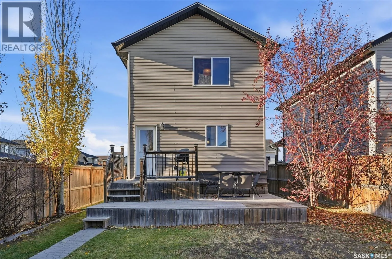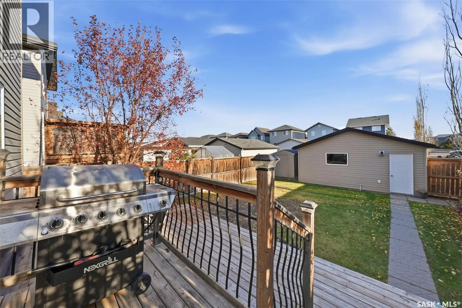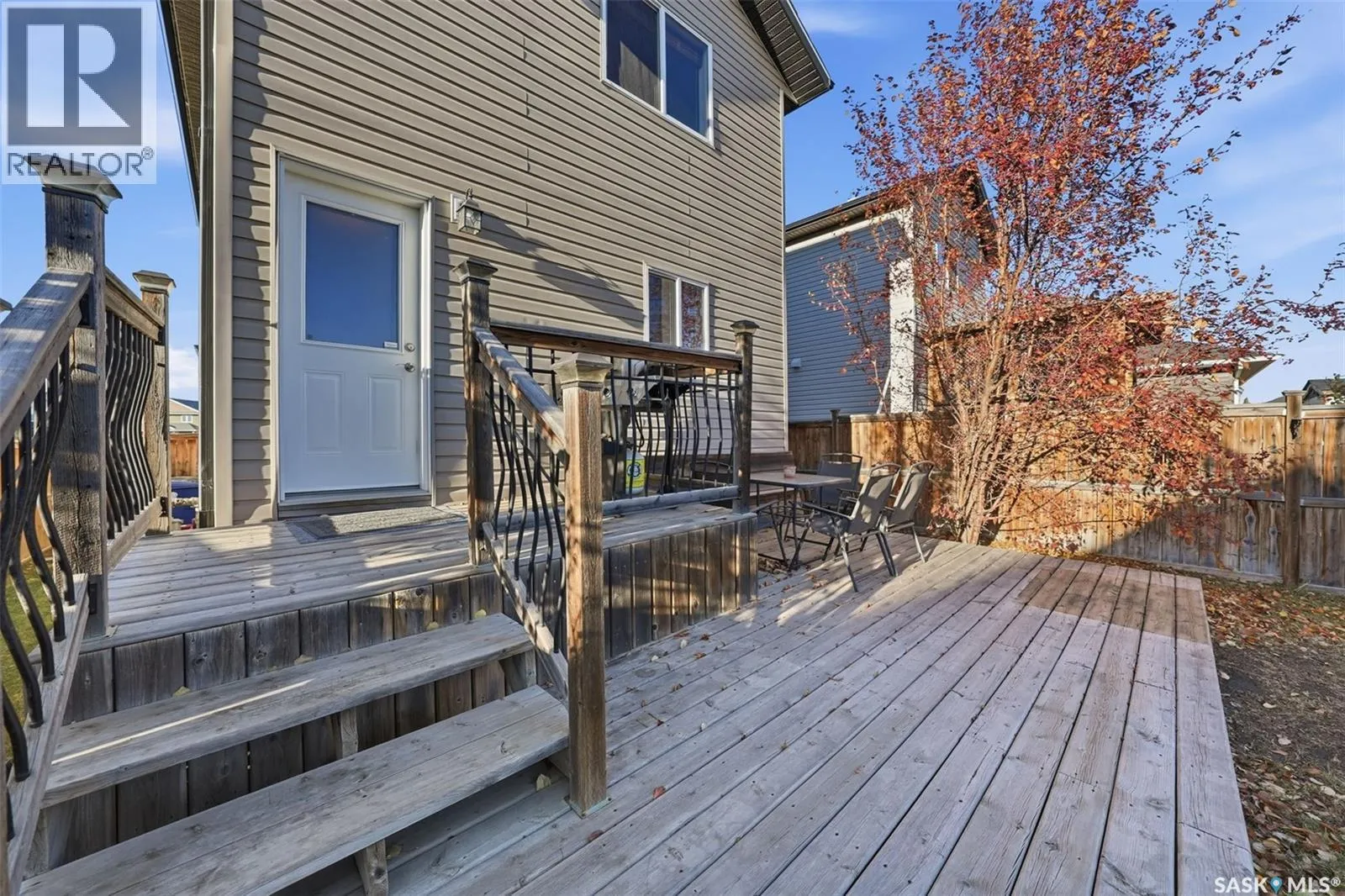Located in the heart of Willowgrove, this well kept two storey offers a functional layout designed for comfortable family living. The main floor features an open concept kitchen, dining, and living area with great natural light and an easy flow for everyday life. A convenient two piece bathroom completes this level. Upstairs are three spacious bedrooms, including a primary suite with a good size walk-in closet. The basement is fully finished, offering a cozy family room, a fourth bedroom, a four piece bathroom, and laundry, complete with a new washer and dryer. Situated on a corner lot, the property provides excellent street parking, a generous yard, and a double detached garage with additional parking beside it. The backyard features a well-built two tier deck, ideal for outdoor dining and summer gatherings. Just a short walk to schools, parks, and nearby amenities, this home offers a strong blend of comfort, practicality, and location in one of Saskatoonâs most desirable neighbourhoods. (id:27476)