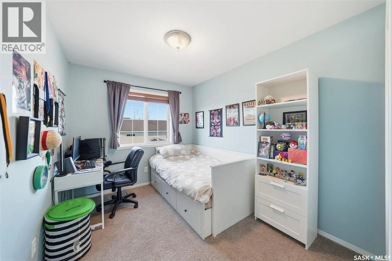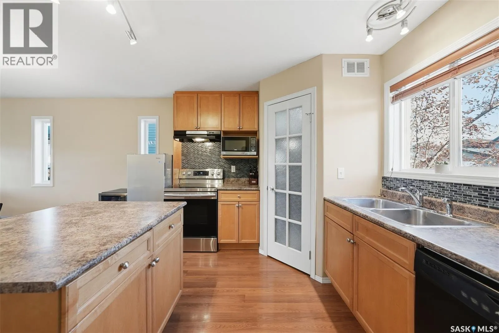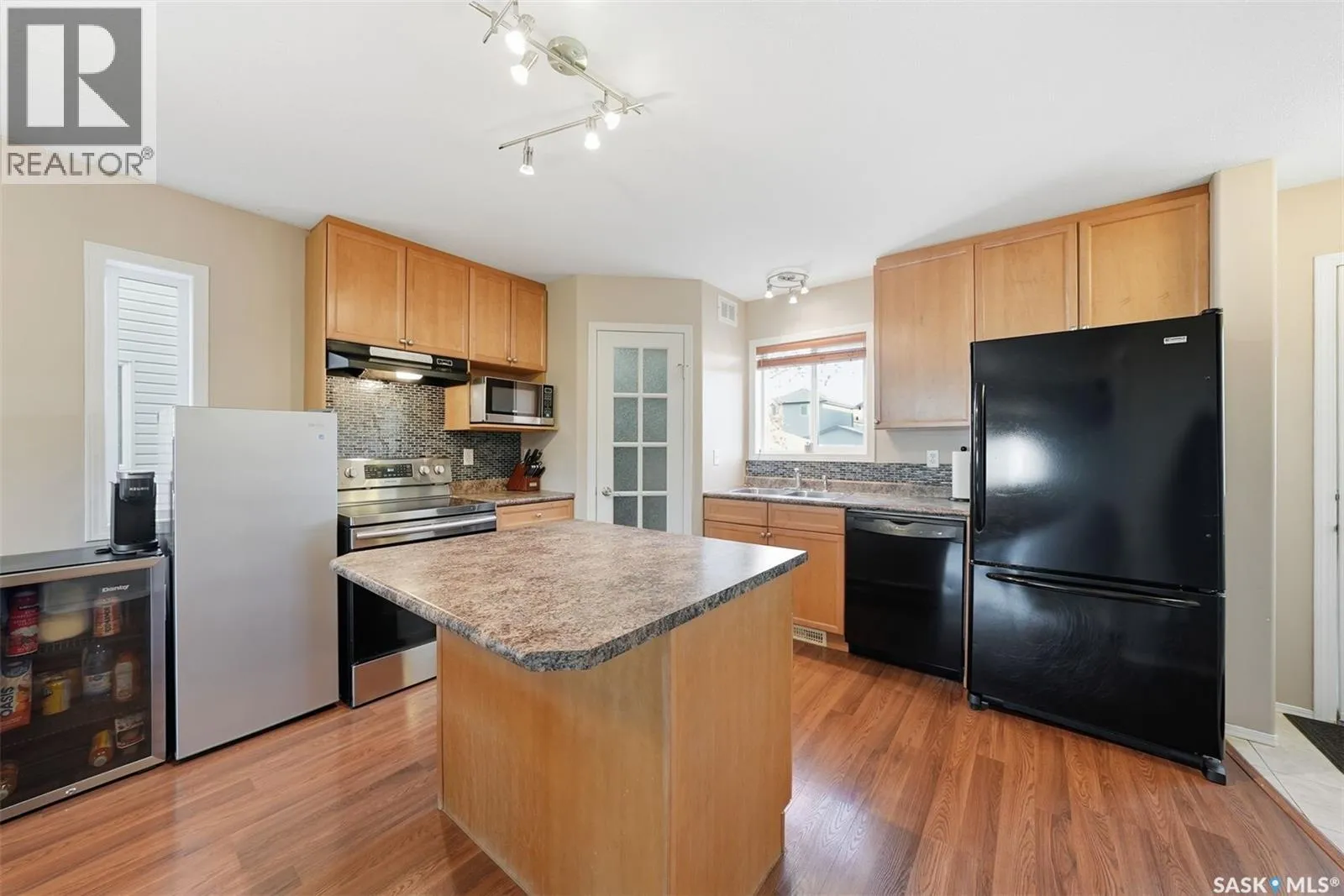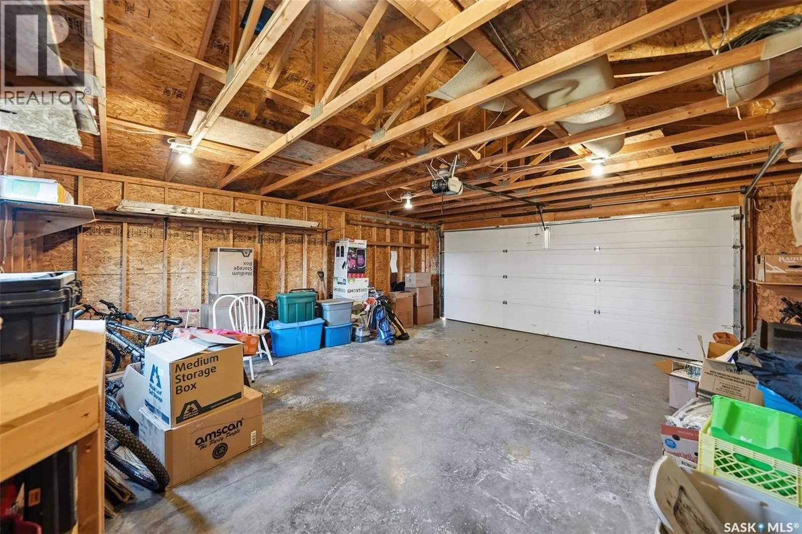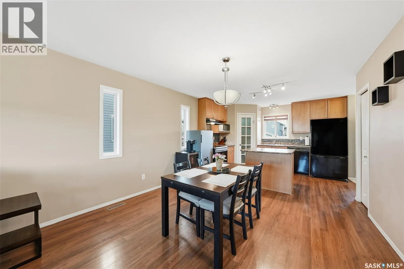Located in the heart of Willowgrove, this well kept two storey offers a functional layout designed for comfortable family living. The main floor features an open concept kitchen, dining, and living area with great natural light and an easy flow for everyday life. A convenient two piece bathroom completes this level. Upstairs are three spacious bedrooms, including a primary suite with a good size walk-in closet. The basement is fully finished, offering a cozy family room, a fourth bedroom, a four piece bathroom, and laundry, complete with a new washer and dryer. Situated on a corner lot, the property provides excellent street parking, a generous yard, and a double detached garage with additional parking beside it. The backyard features a well-built two tier deck, ideal for outdoor dining and summer gatherings. Just a short walk to schools, parks, and nearby amenities, this home offers a strong blend of comfort, practicality, and location in one of Saskatoonâs most desirable neighbourhoods. (id:27476)